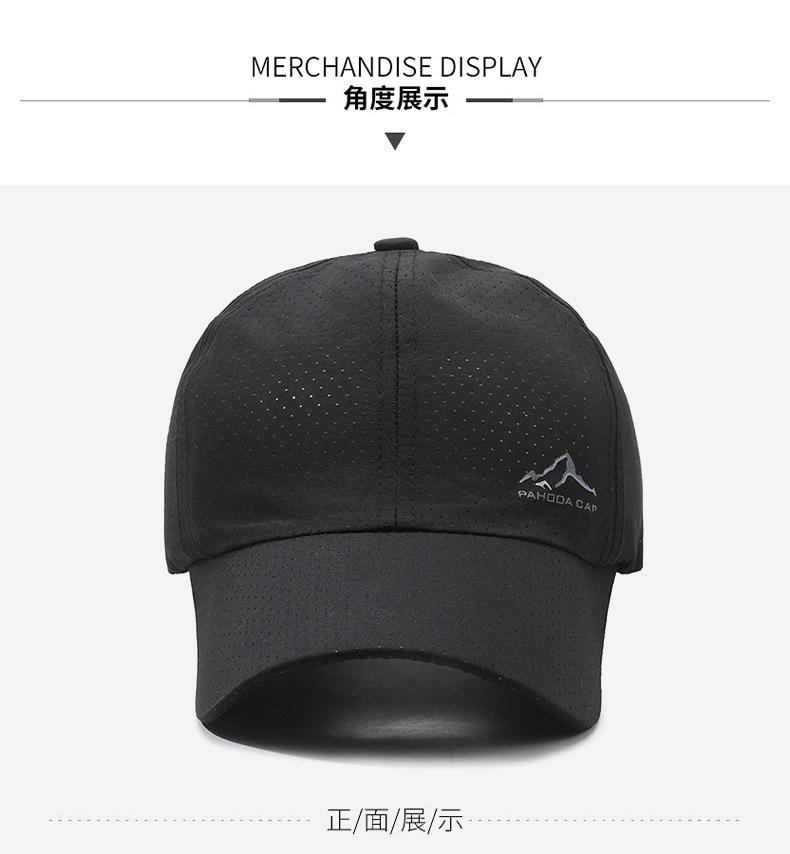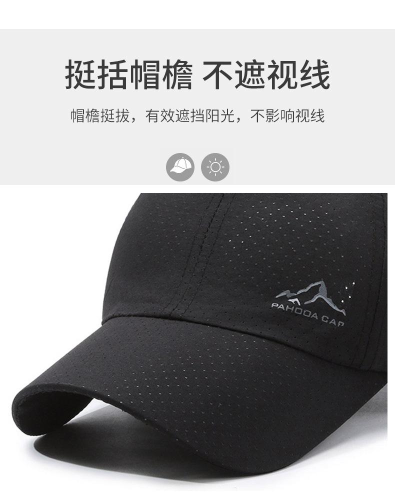Este modelo está hecho de tela de secado rápido, el largo del ala es de 8 cm, la circunferencia es ajustable de 56 a 58 cm, y el peso es de unos 58 gramos