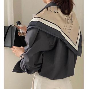 Bufanda de seda a rayas sincrónicas coreanas, pañuelo decorativo de moda retro, bufanda de seda estampada, bufanda de seda de imitación de otoño e invierno, bufanda de seda femenina |