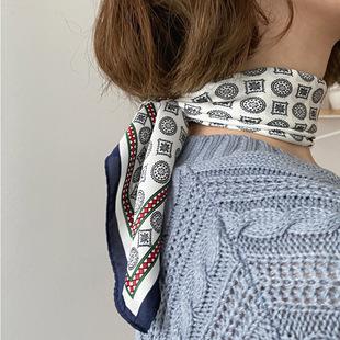 Pañuelo de seda pequeño Dongdaemun de Corea del Sur, versión coreana, pañuelo de seda de 70 cm, estampado geométrico de imitación de seda, pañuelo de seda cuadrado profesional para mujer |