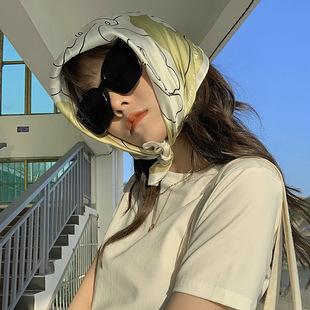 Bufanda Baotou de viaje de verano de imitación de seda literaria para jóvenes, bufanda cuadrada estampada de satén de 70 cm, bufanda, corbata y bolso |