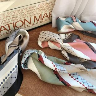 Pañuelo de seda con estampado de satén de seda con simulación geométrica simple coreana, pañuelo para el cabello multifuncional retro francés de 70 cm, pañuelo para el cuello |