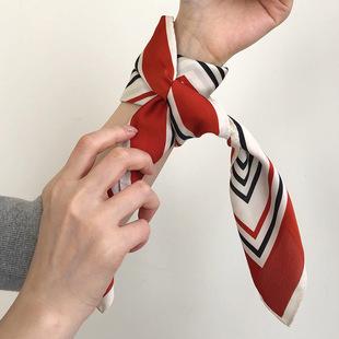 Bufanda de seda de imitación de comercio exterior coreano, bufanda cuadrada decorativa de moda, bufanda a rayas, bufanda francesa retro simple |