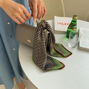 Bufanda de seda de imitación simple de 70 cm, versión coreana, con cuadros geométricos, decorativa, cuadrada mediana, venta al por mayor, nueva primavera de 2023 |