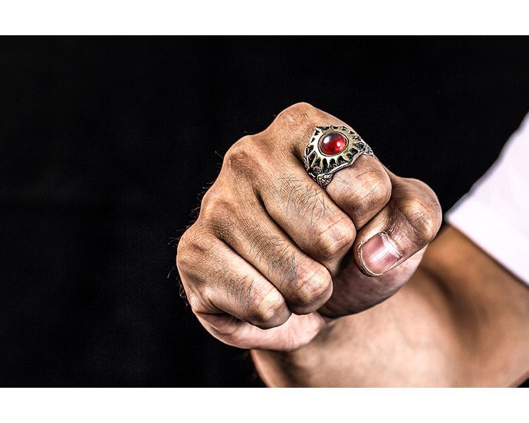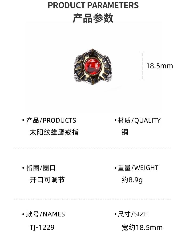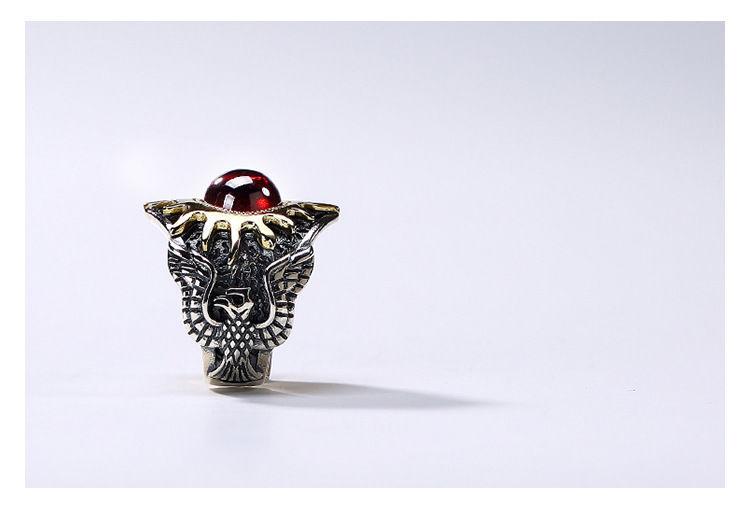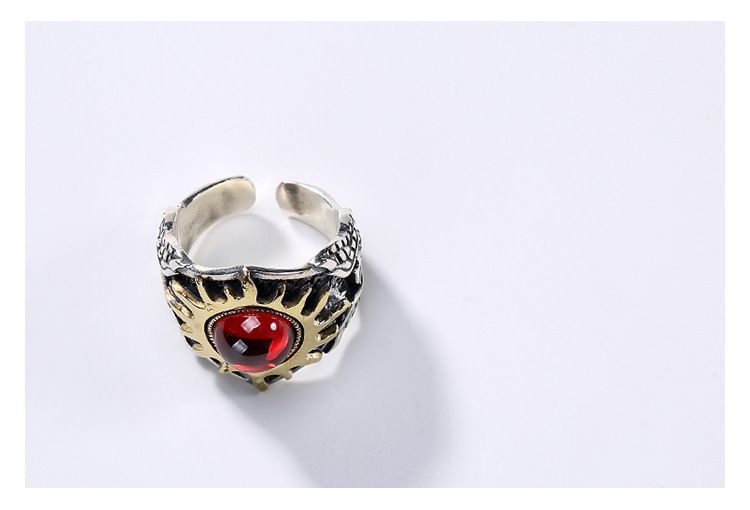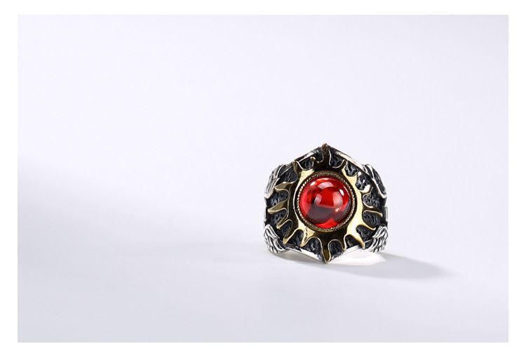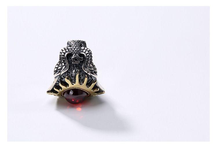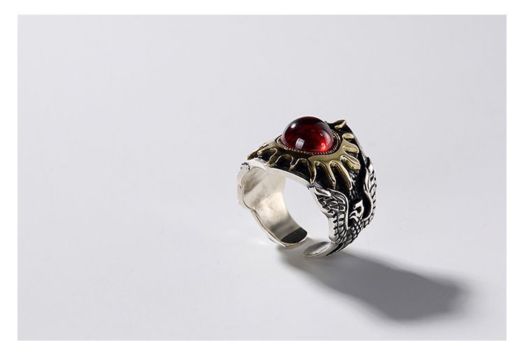 Qianye Plata Tailandesa Dios Sol retro anillo individual personalidad moderno hip hop dominante para hombre Anillo Águila Abierta