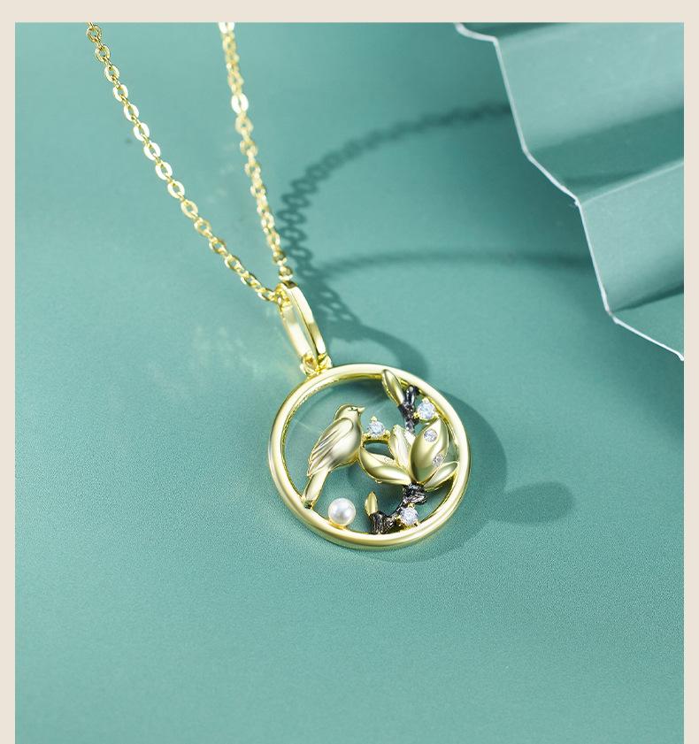Exquisito Collar de Plata Esterlina S925 Temperamento de Niña Colgante de Flor y Pájaro Regalo Avanzado para Novia Cadena de Clavícula Nicho Venta al por Mayor