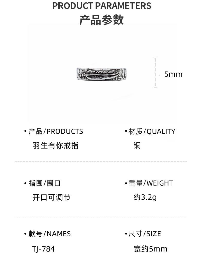 Chiba diseño original pluma vida tienes anillo pluma retro hombres y mujeres pareja par anillo personalidad dominante regalo marea