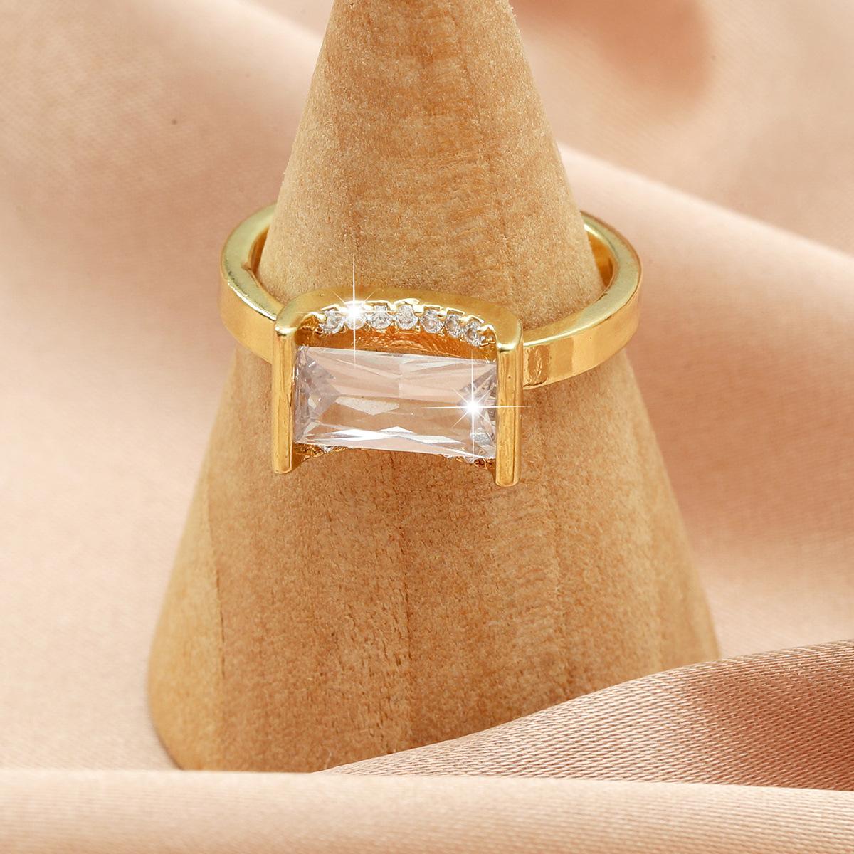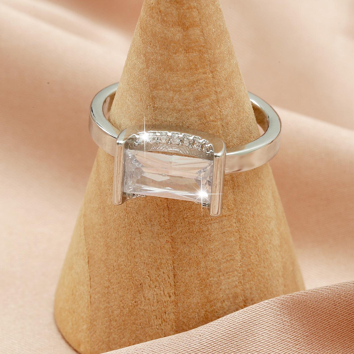 Anillo de cobre y circonita de metal coreano, personalidad de moda, anillo geométrico cuadrado con incrustaciones de diamantes, anillo rojo de red de viento frío.