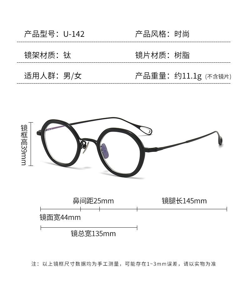 Montura de gafas de titanio puro estilo japonés con diseño de nicho y polígono exterior de montaña, estilo retro, montura de gafas para miopía con altura de nicho moderna