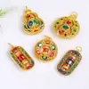 Collar auspicioso con colgante de calabaza de esmalte de aceite de gota de color dorado antiguo, joyería Fu Lu, aleación de cobre, joyería Yiwu al por mayor