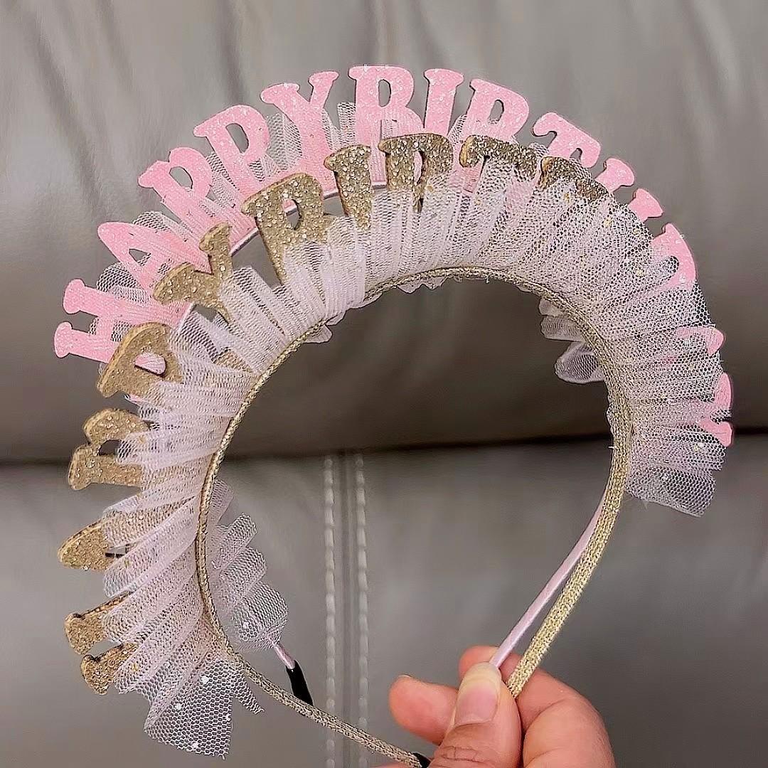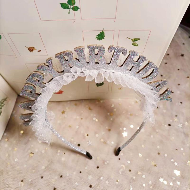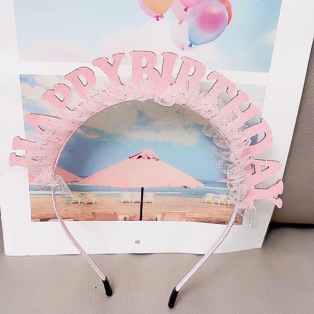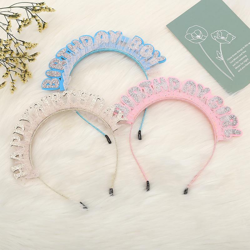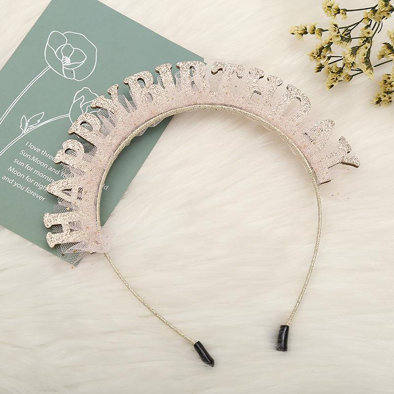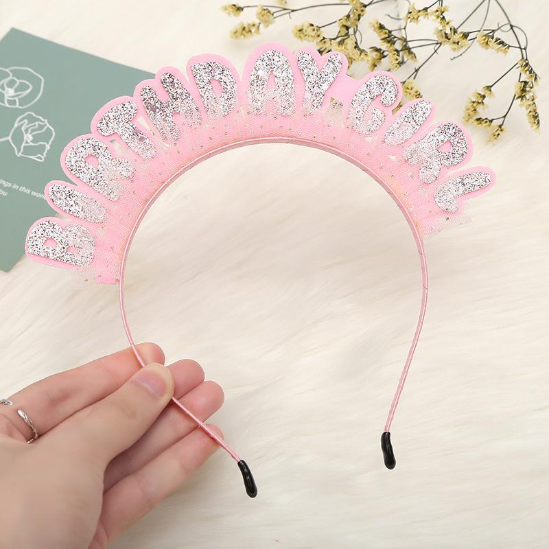 Diadema de plástico con lentejuelas de moda coreana para niña, bonita diadema para fiesta de cumpleaños con letras de feliz cumpleaños y foto.