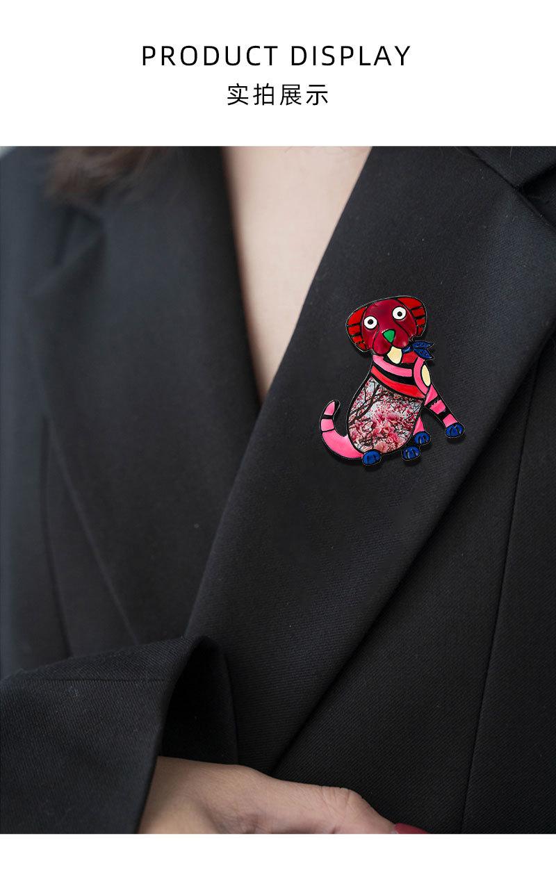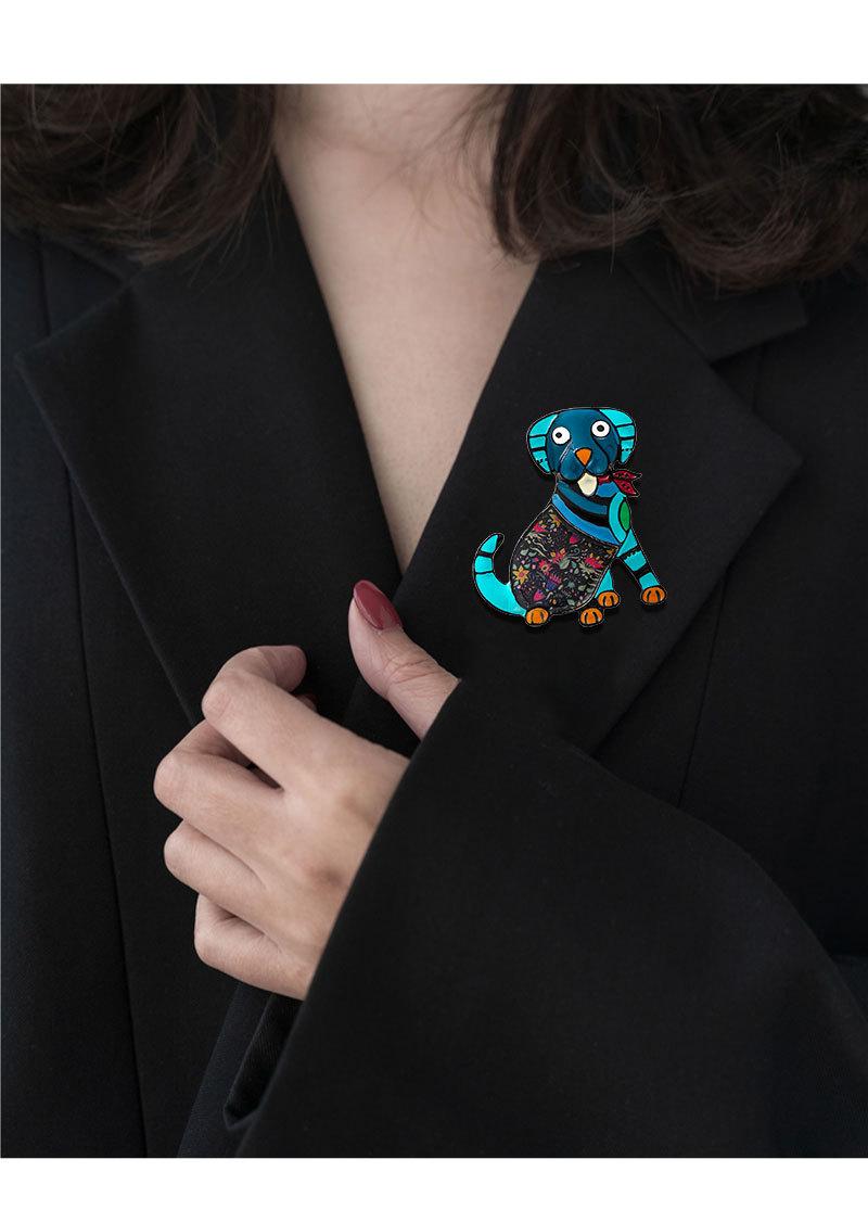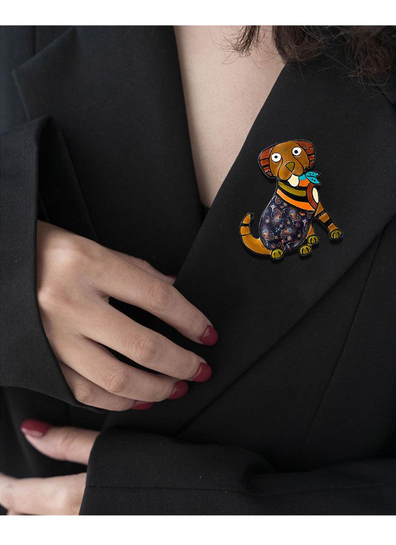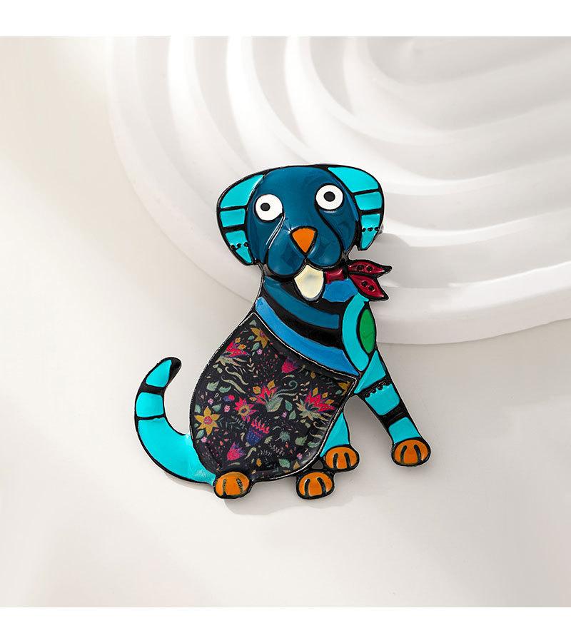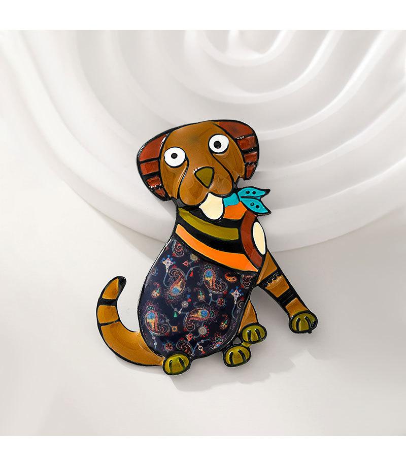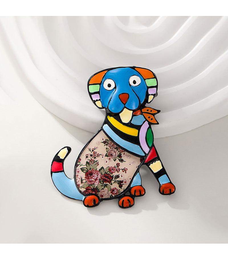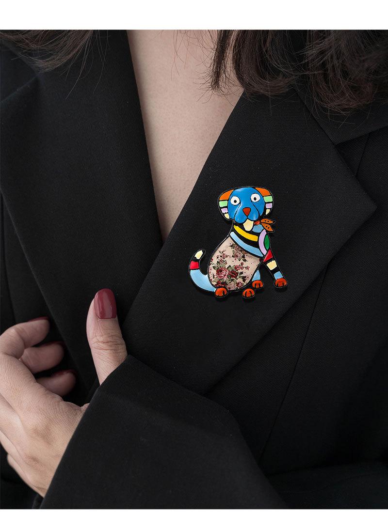 Broche de perro de pintura al óleo europea y americana Esmalte de color Ramillete Atmosférico Pin para traje de abrigo de mujer Broche para prenda