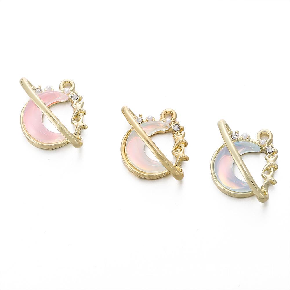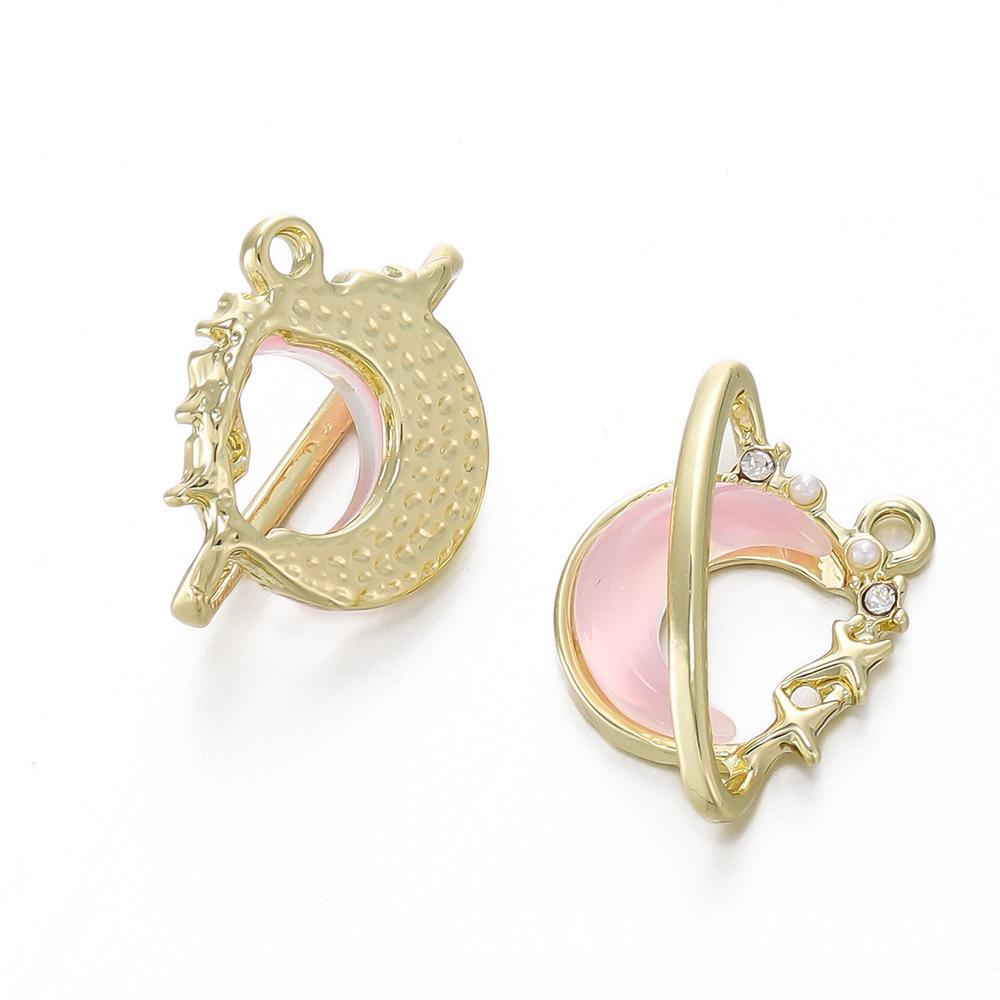 Alloy point drill moon pendant-golden pink diamond (about 16*17.5mm)1