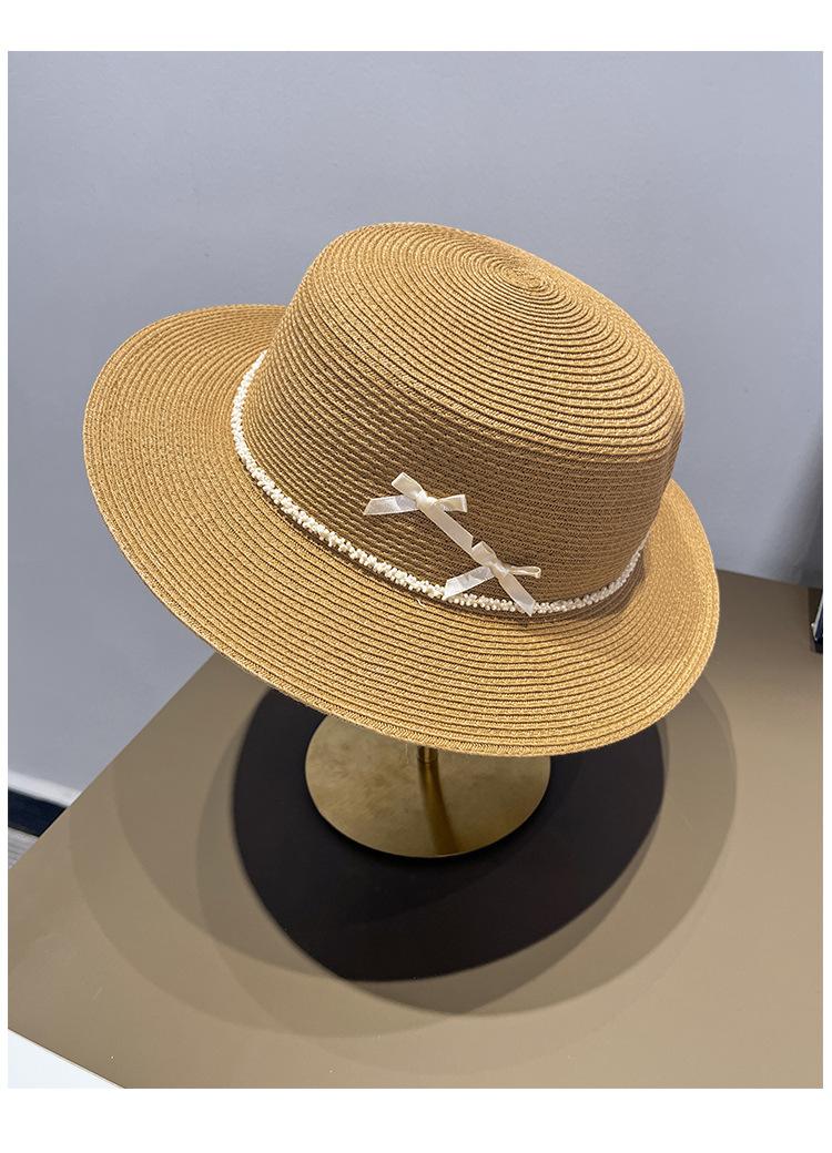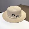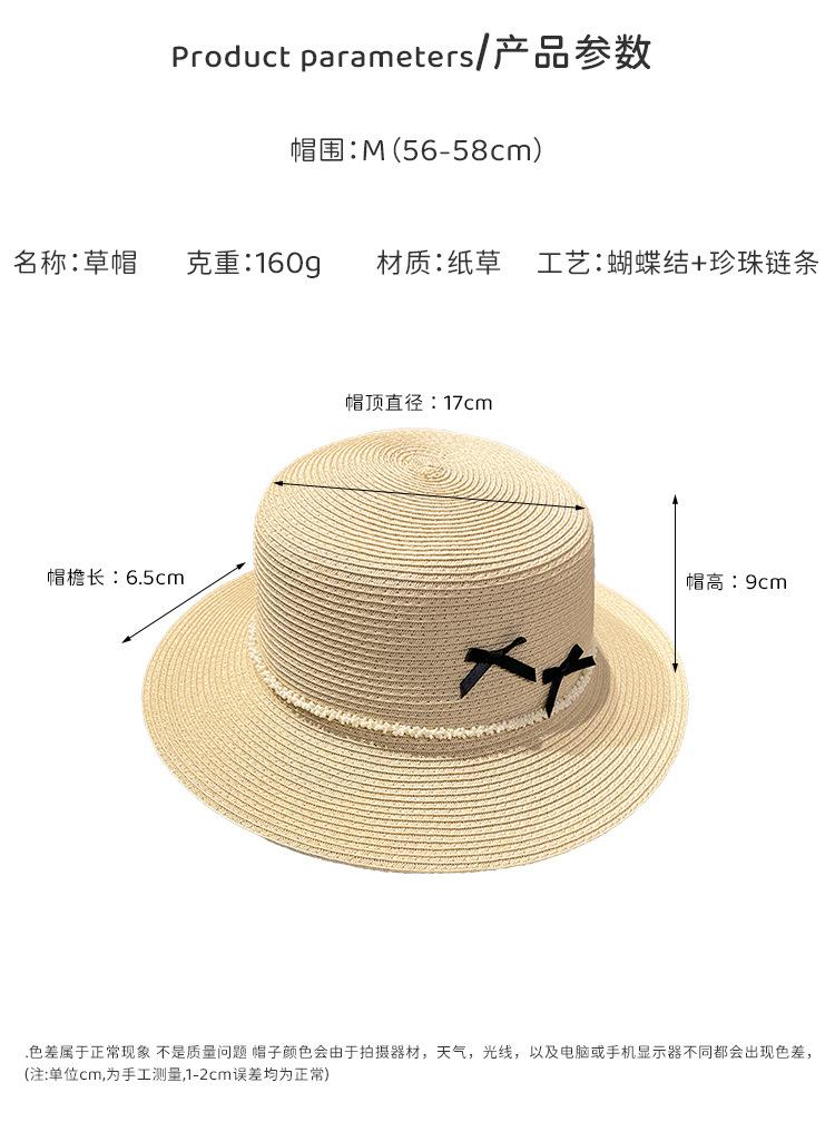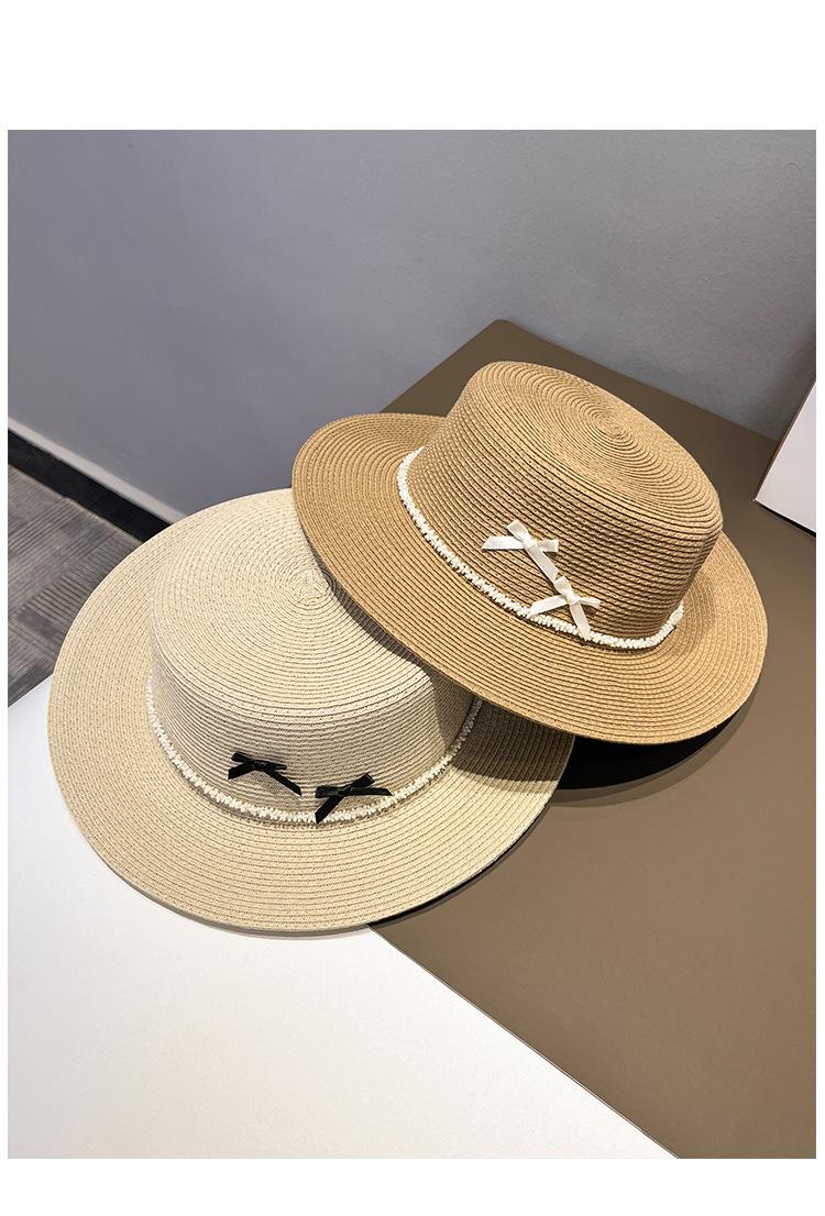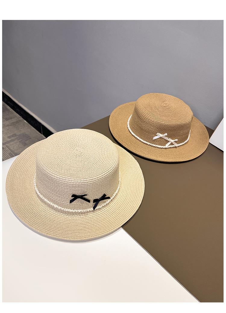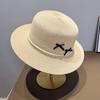 Sombrero de paja con ala plana y lazo, diseño de nicho, para vacaciones en la playa, protección solar, estilo retro británico, regalo.
