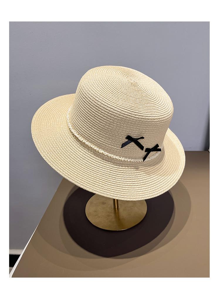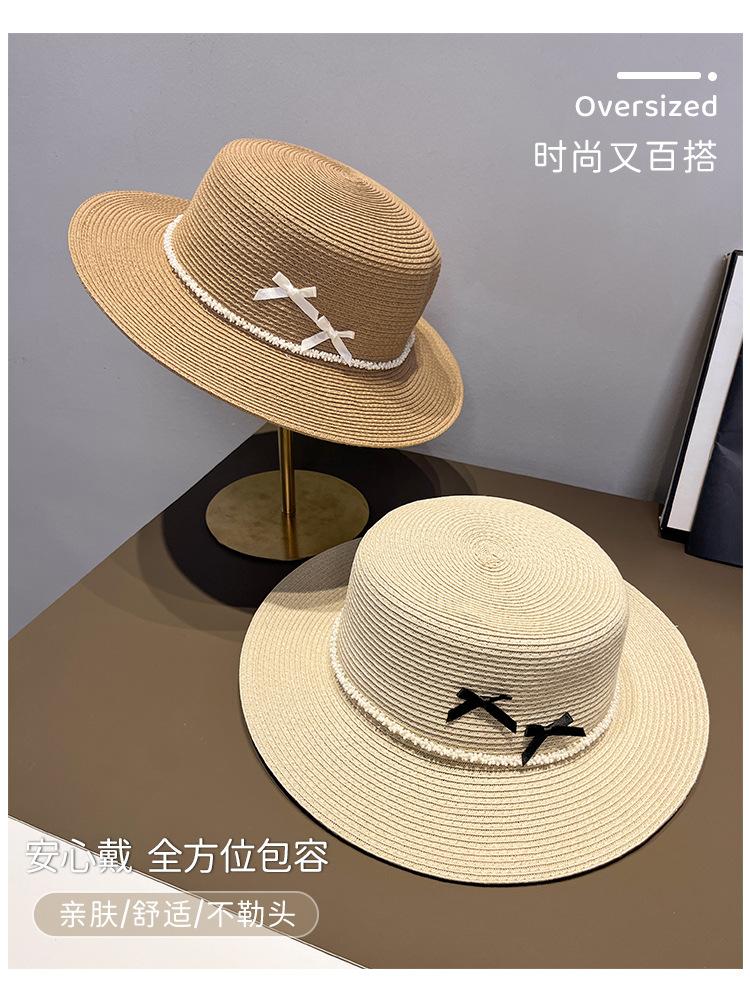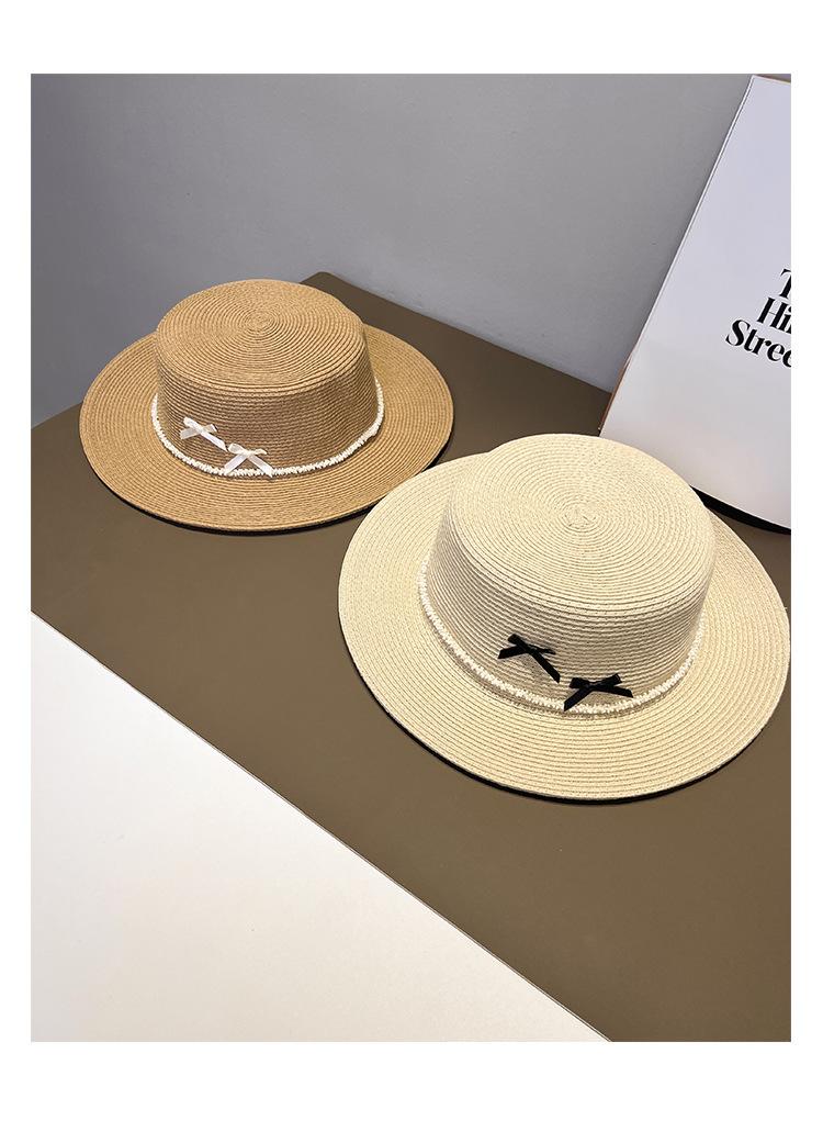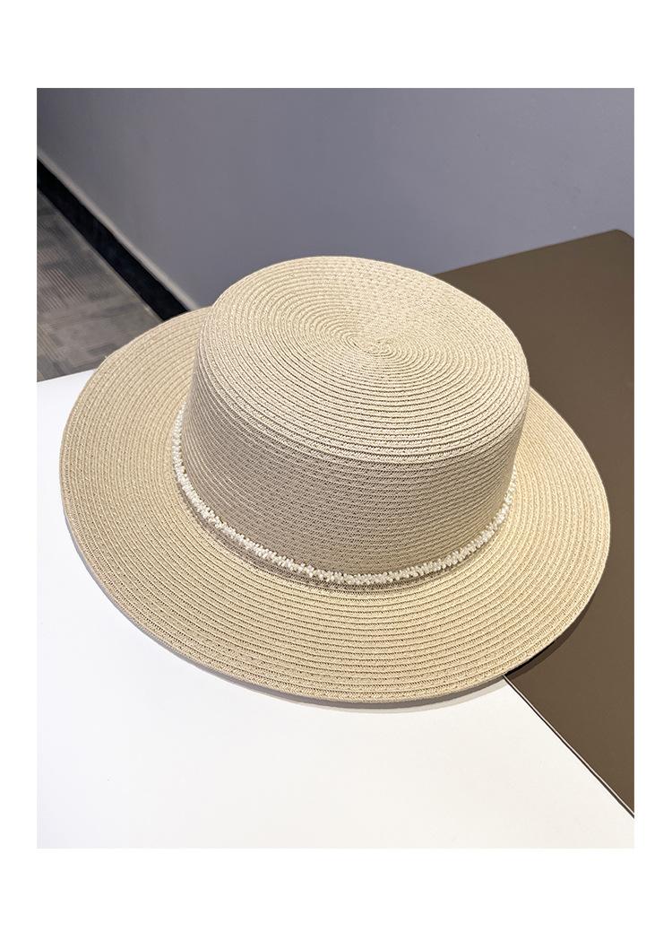 Sombrero de paja con ala plana y lazo, diseño de nicho, para vacaciones en la playa, protección solar, estilo retro británico, regalo.