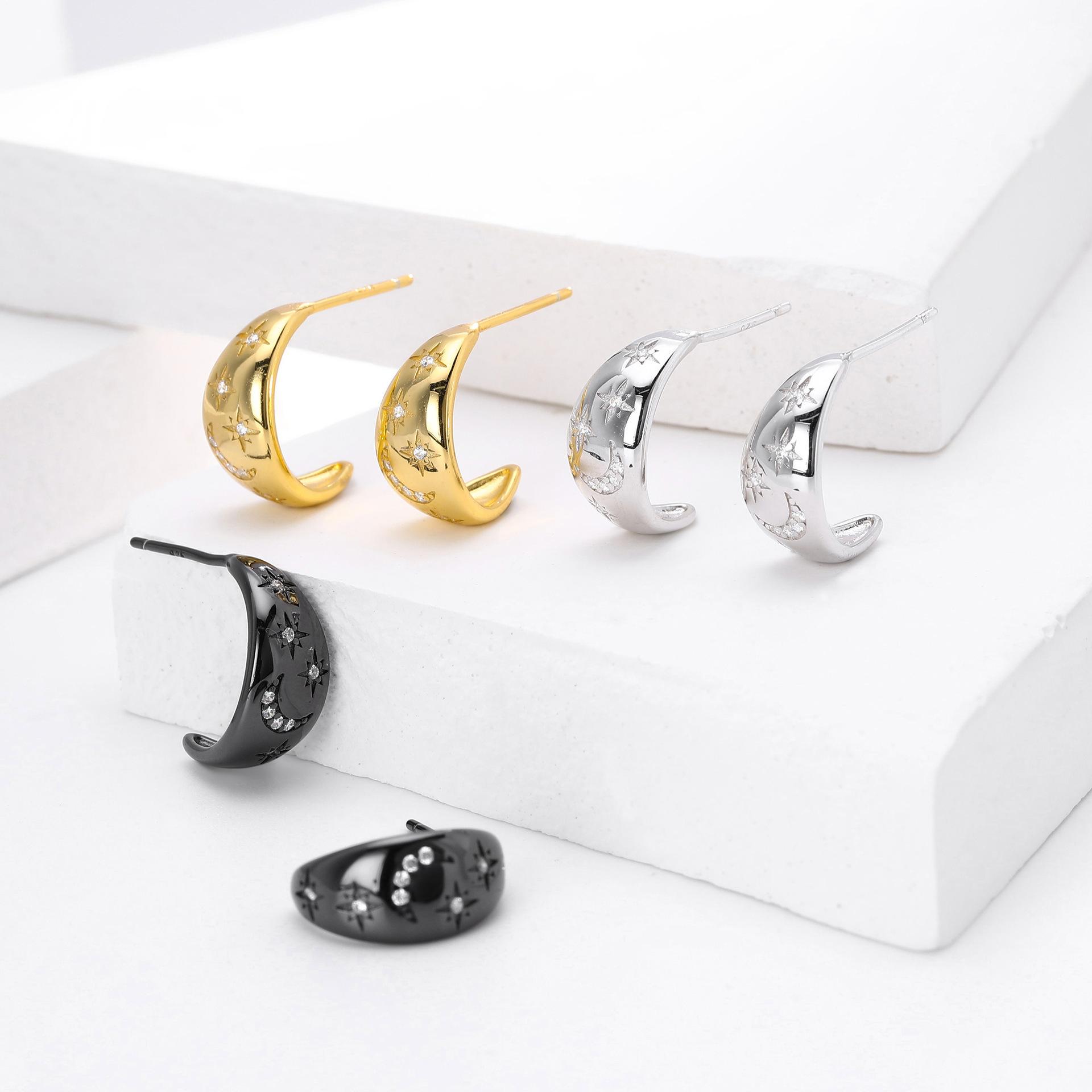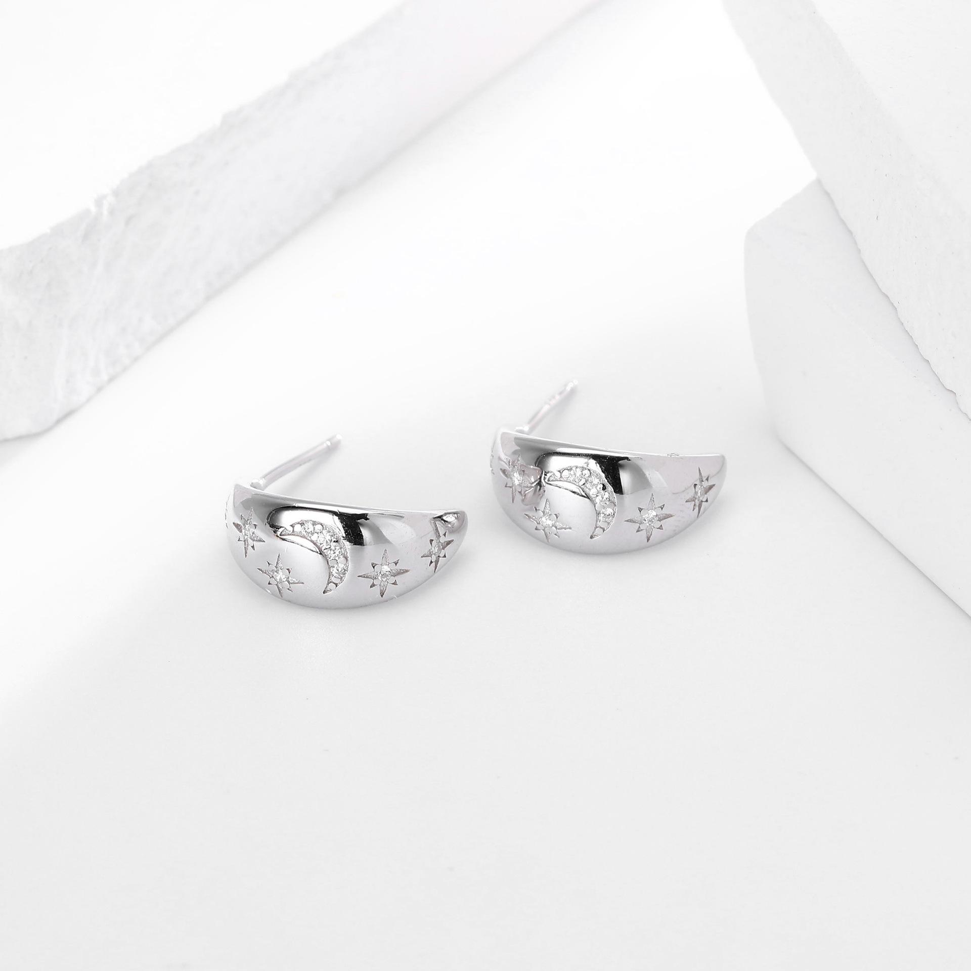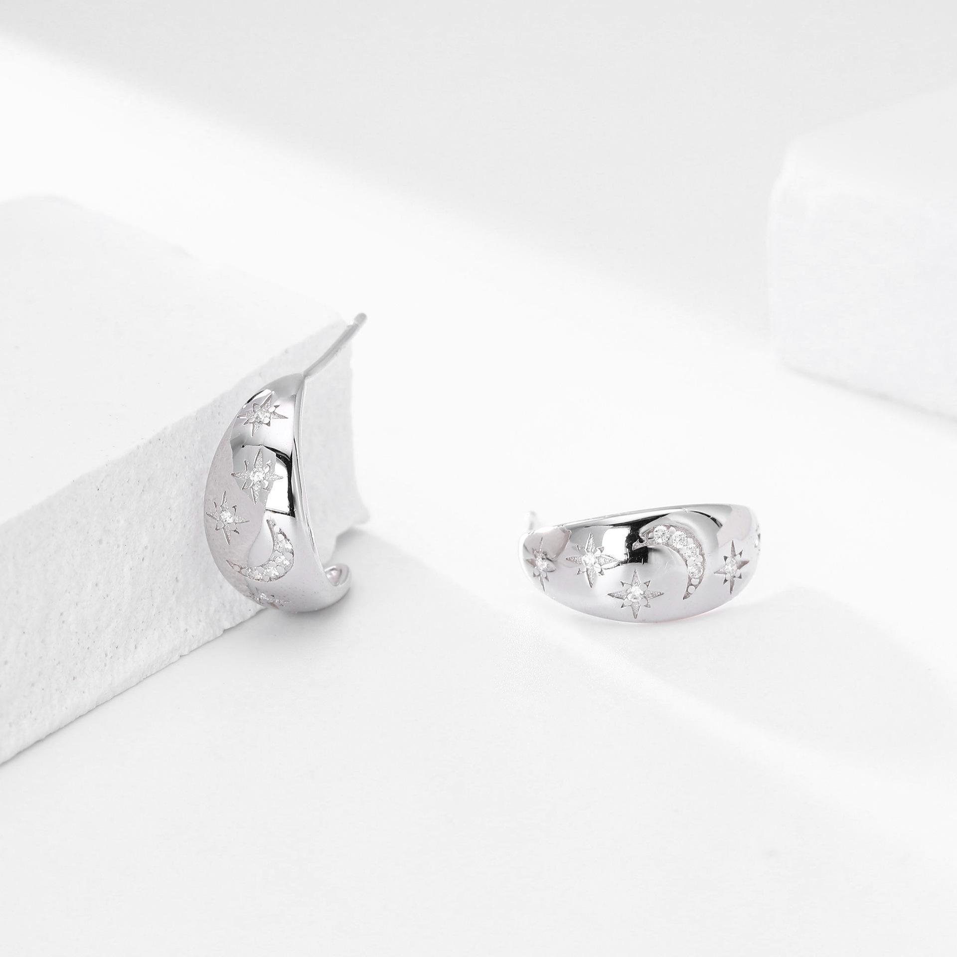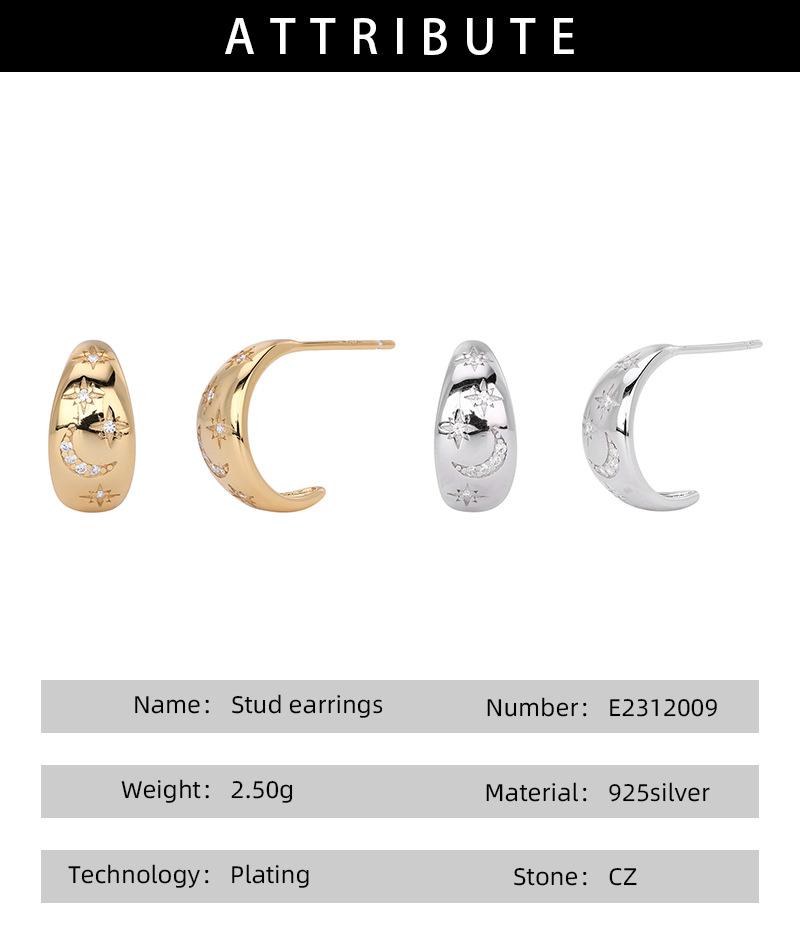 Pendientes Transfronterizos Nuevos S925 Plata Micro-incrustados Geométricos Estrella Luna Lujo Ligero Alta Moda Nicho Pendientes Combinables