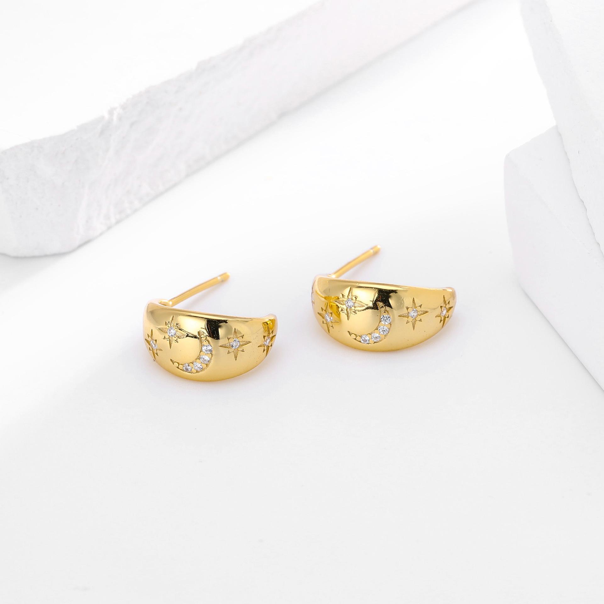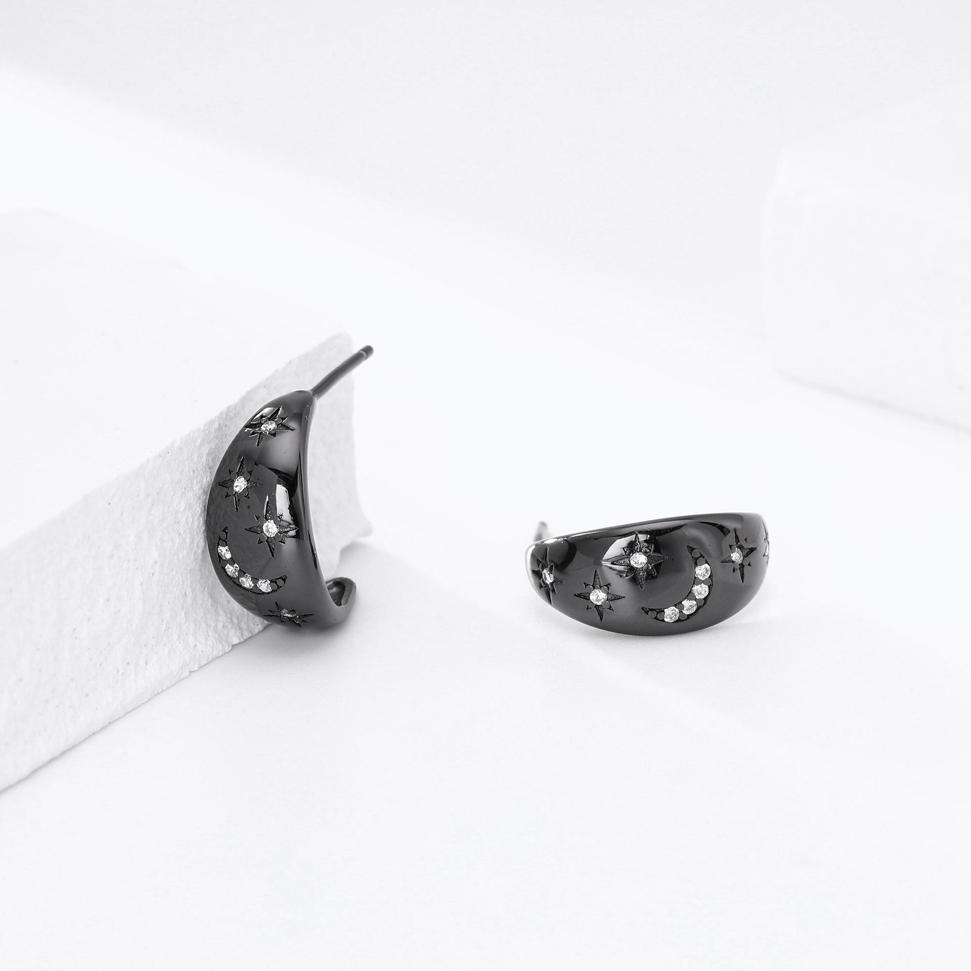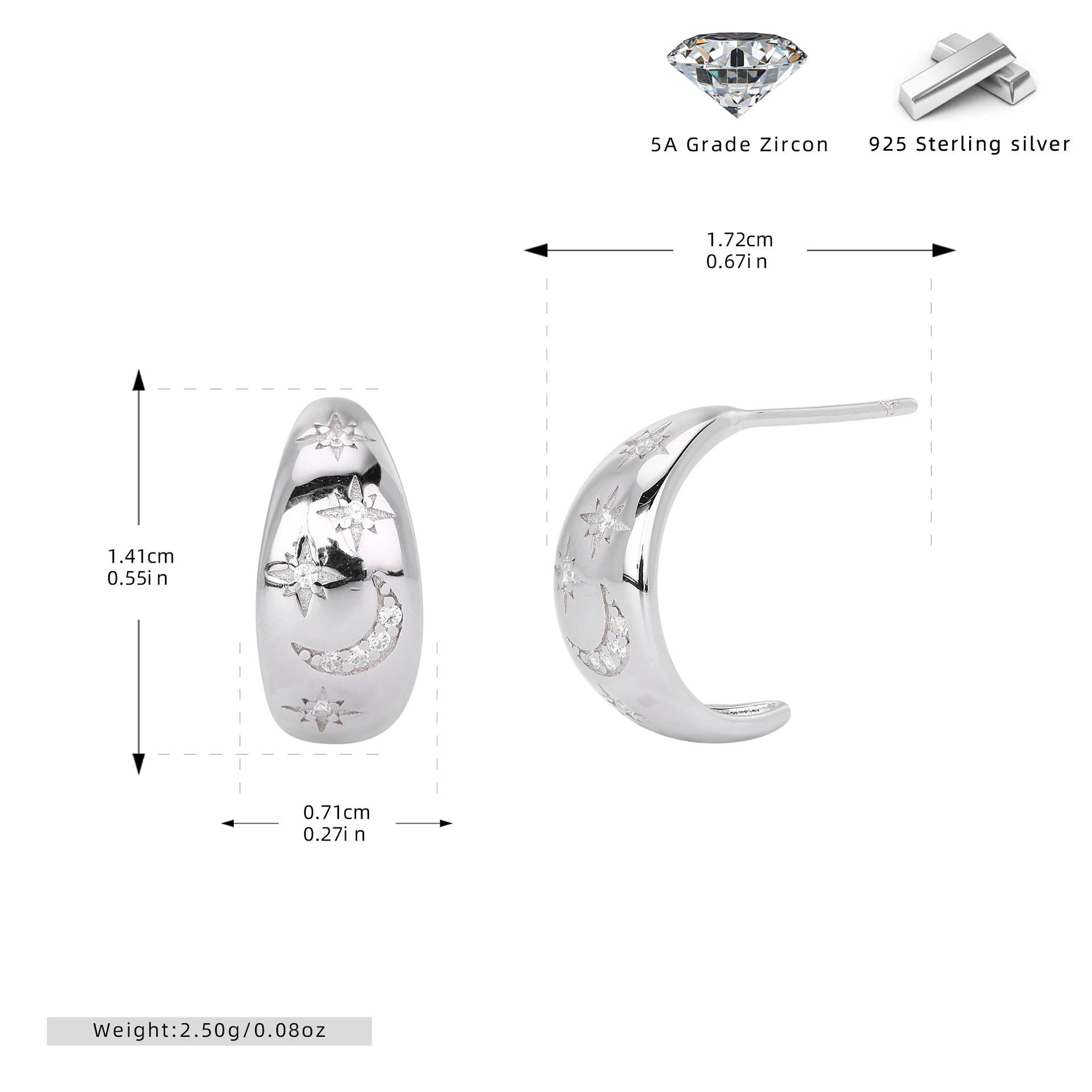 Pendientes Transfronterizos Nuevos S925 Plata Micro-incrustados Geométricos Estrella Luna Lujo Ligero Alta Moda Nicho Pendientes Combinables