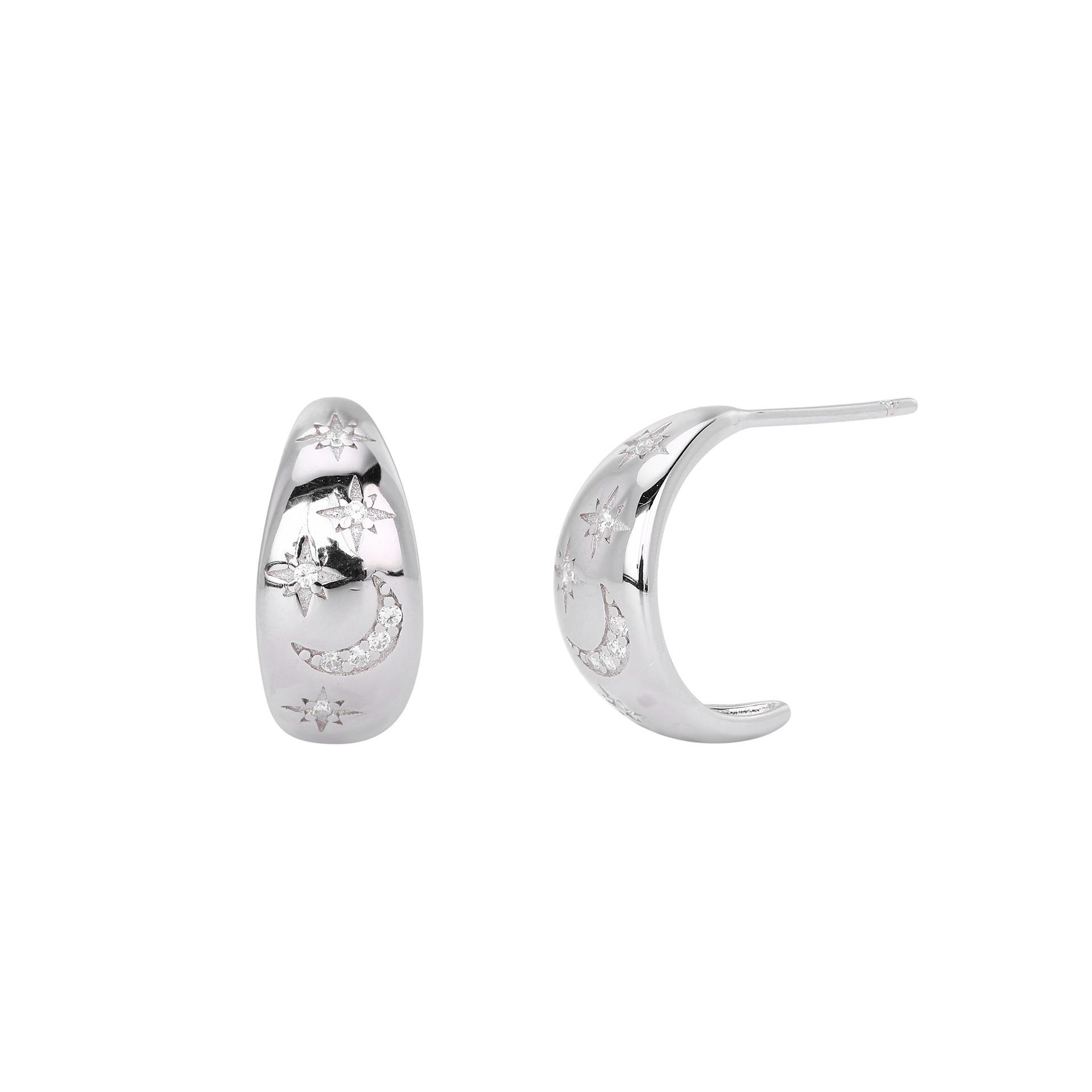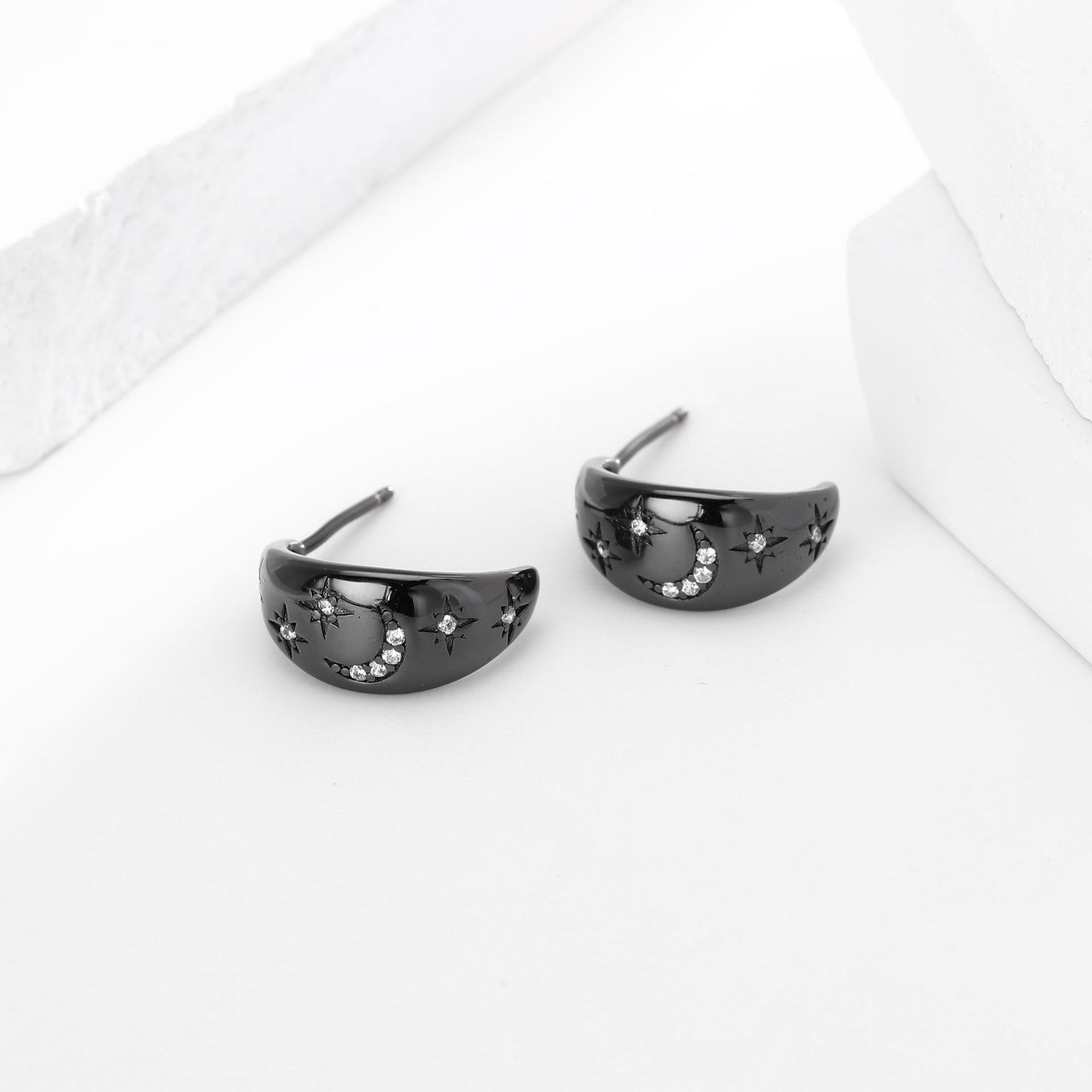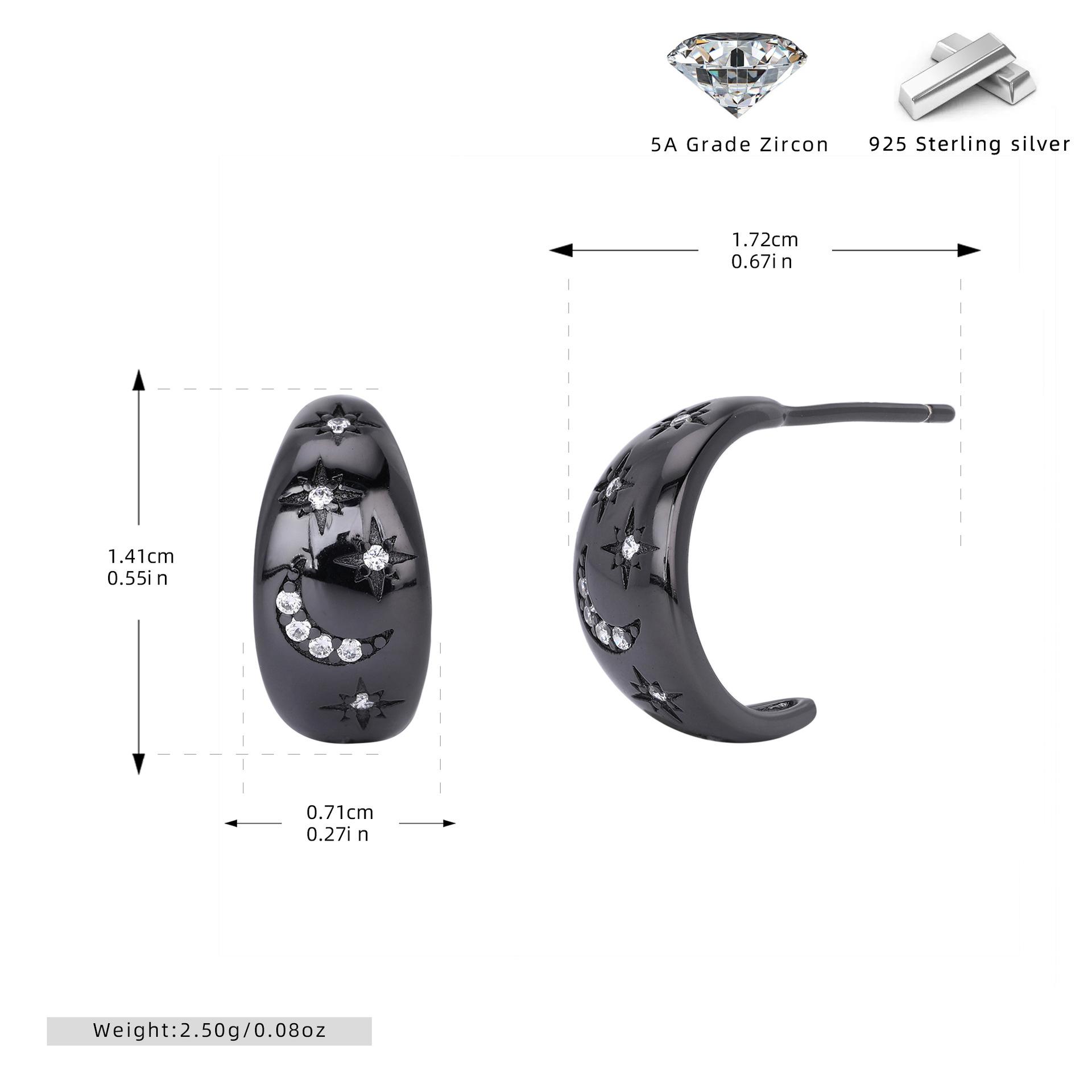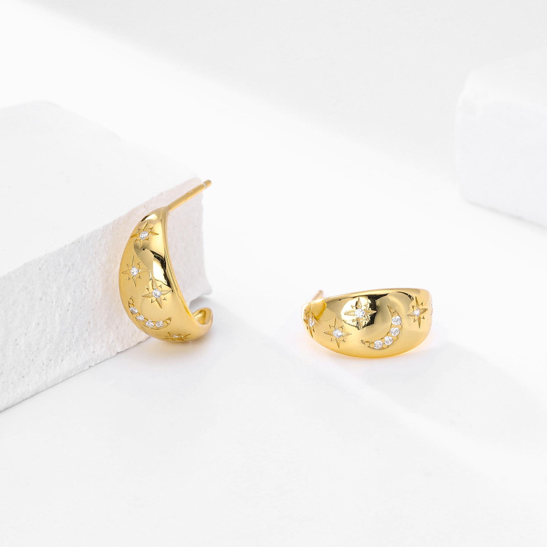 Pendientes Transfronterizos Nuevos S925 Plata Micro-incrustados Geométricos Estrella Luna Lujo Ligero Alta Moda Nicho Pendientes Combinables