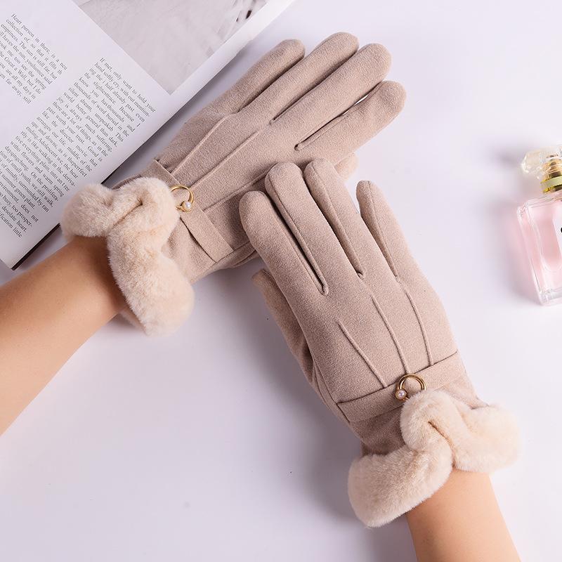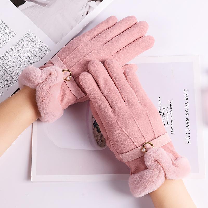 Nuevos guantes de otoño e invierno para mujer, de terciopelo grueso, cálidos, con pantalla táctil, a prueba de frío, para estudiantes, estilo coreano, bonitos, para ciclismo al aire libre y conducción.