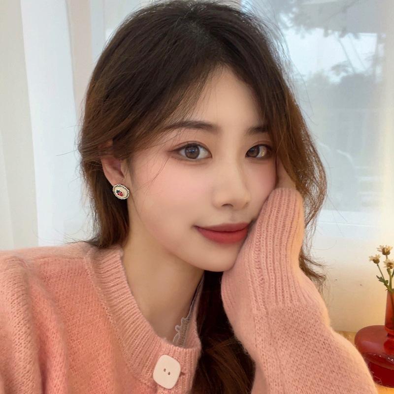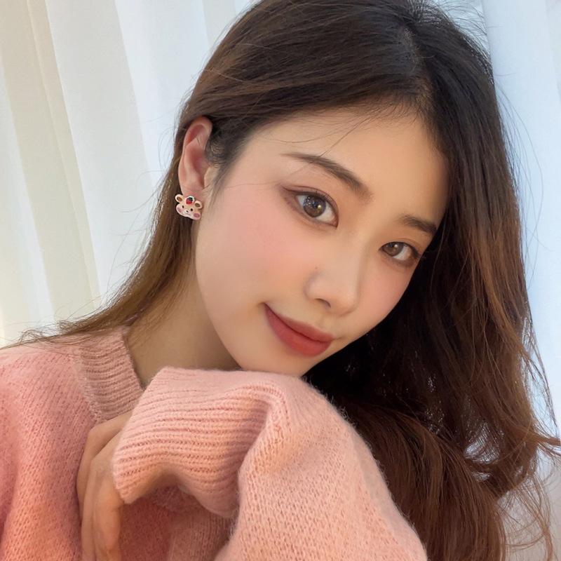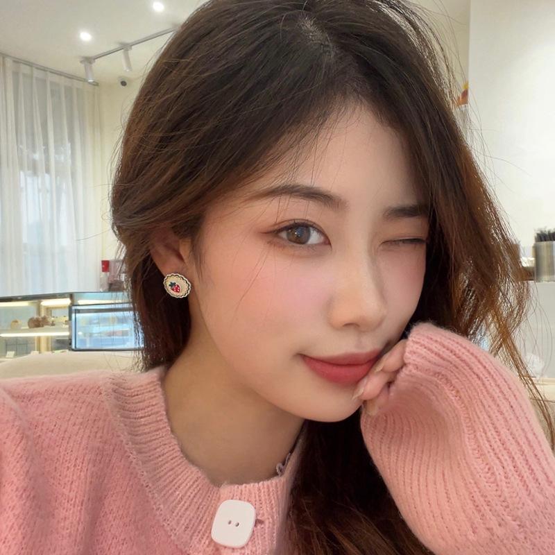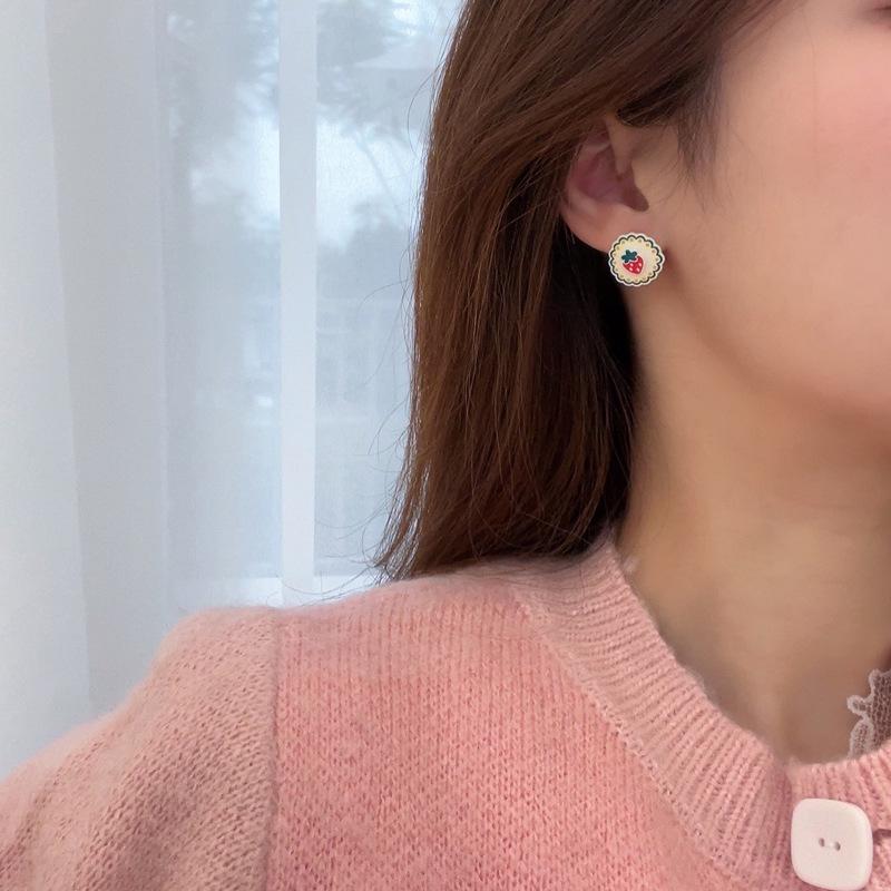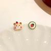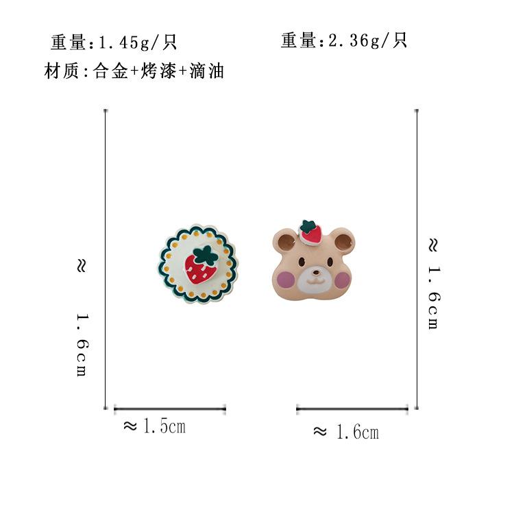 Aretes Japoneses Dulces Asimétricos de Oso Fresa Lindos Femeninos Aretes de Dibujos Animados