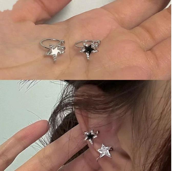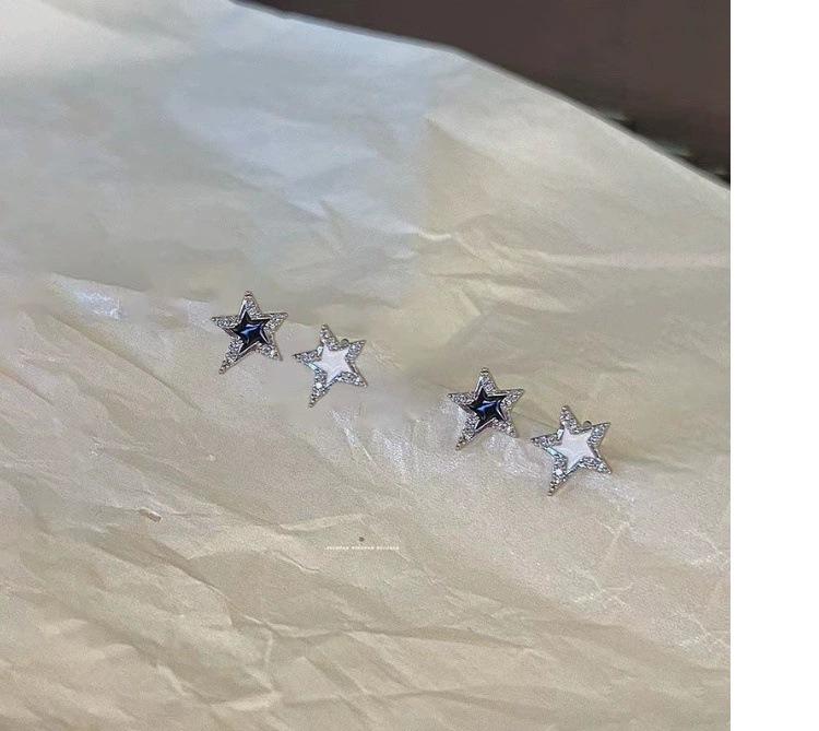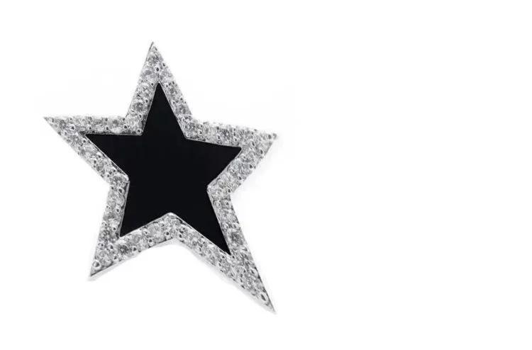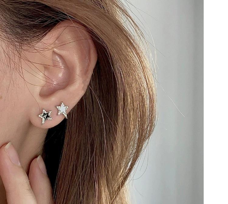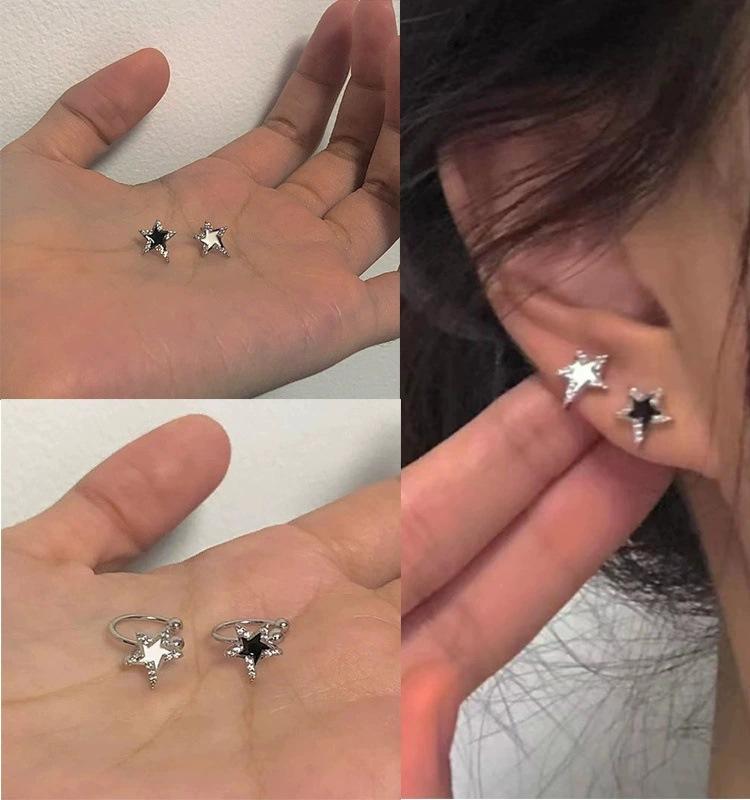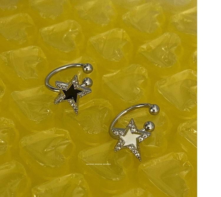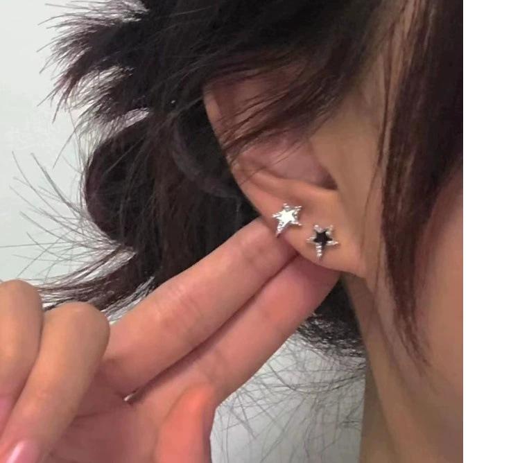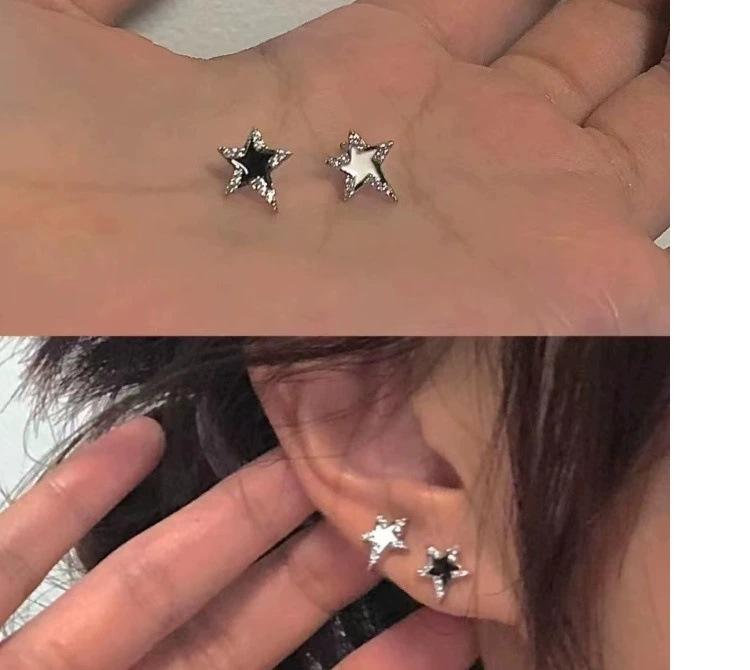 White Pair of Pentagram Stud Earrings, A pair of five-pointed star earrings mixed with black and white, Black ...