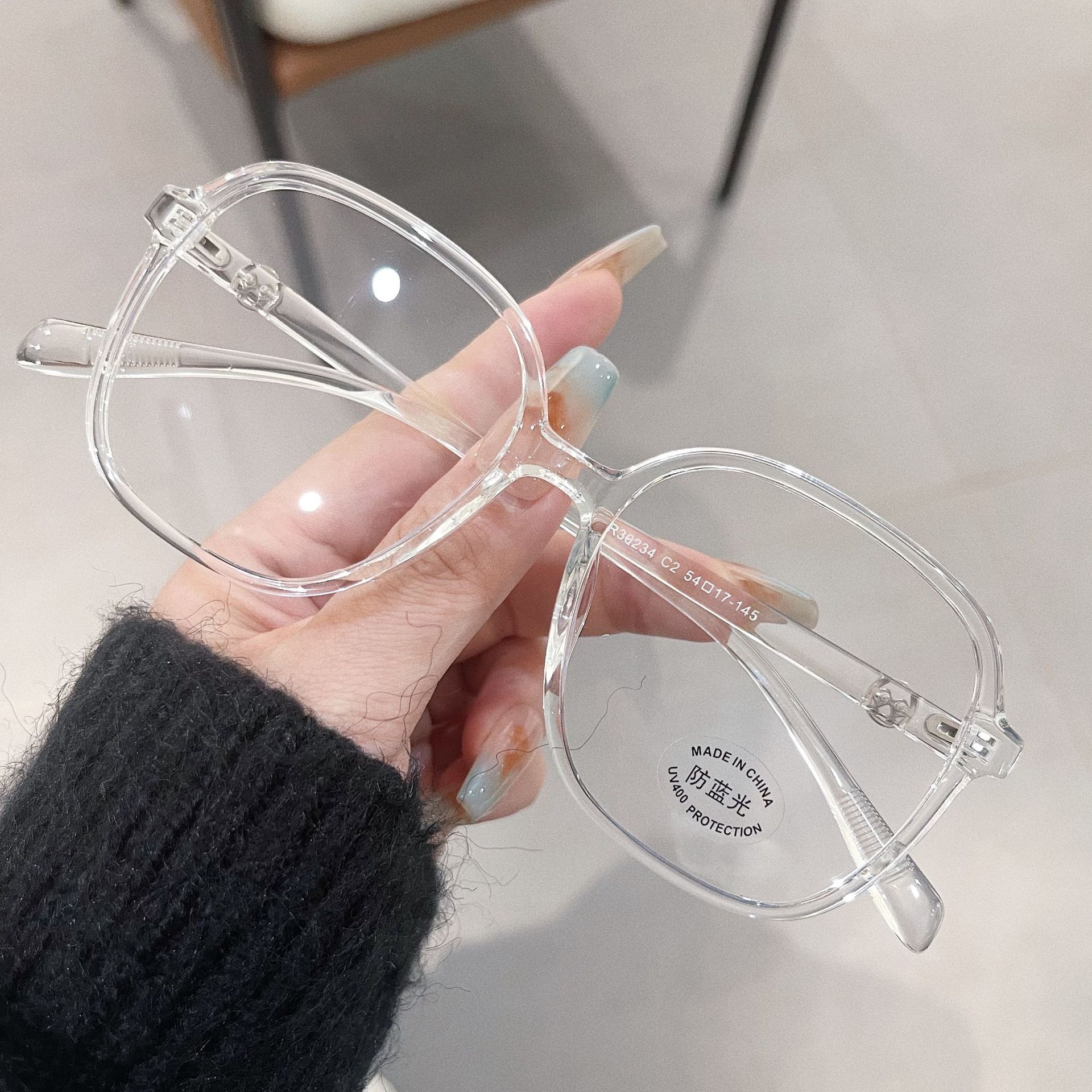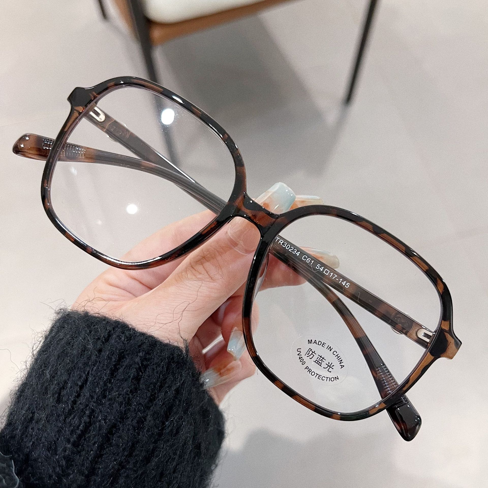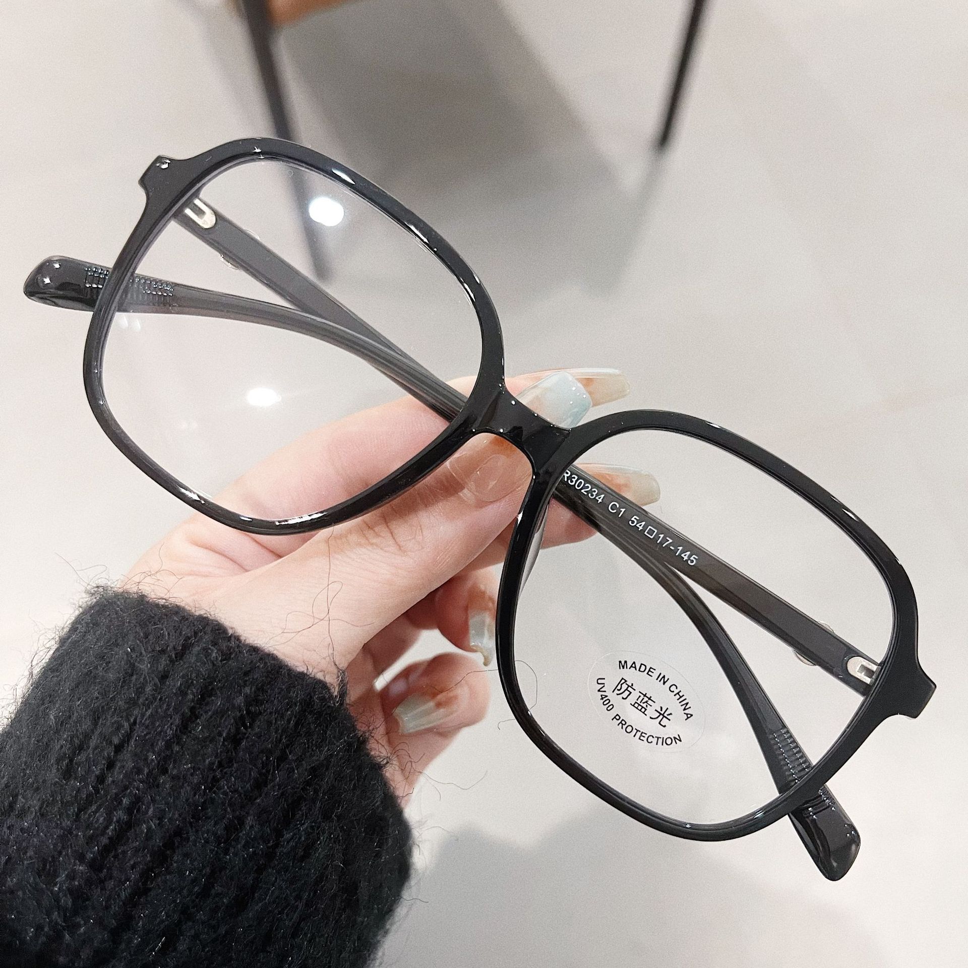 Gafas de montura negra de gran tamaño para mujer, miopía, se pueden equipar con grados anti-luz azul, adelgazamiento facial grande, artefacto de belleza simple, gafas simples, montura redonda