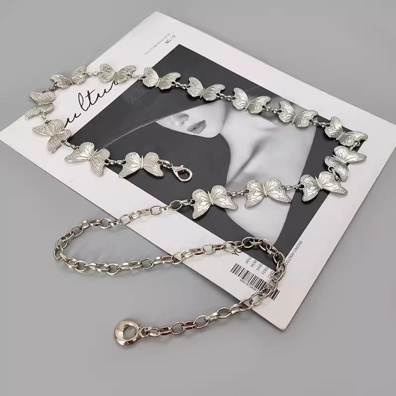 Golden butterfly waist chain (GD346), silver butterfly waist chain (GD347), silver carved waist chain (GD348)