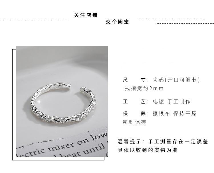 Anillo de Metal Plisado para Mujer Diseño Nicho Ins Estilo Frío Plata S925 Anillo Abierto Anillo de Dedo Personalizado de Moda