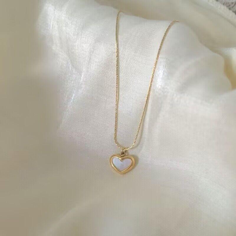 Collar de amor con concha dorada de acero de titanio para mujer, nuevo estilo de moda para mujer, cadena de clavícula con colgante en forma de corazón frío de estilo francés simple para mujer