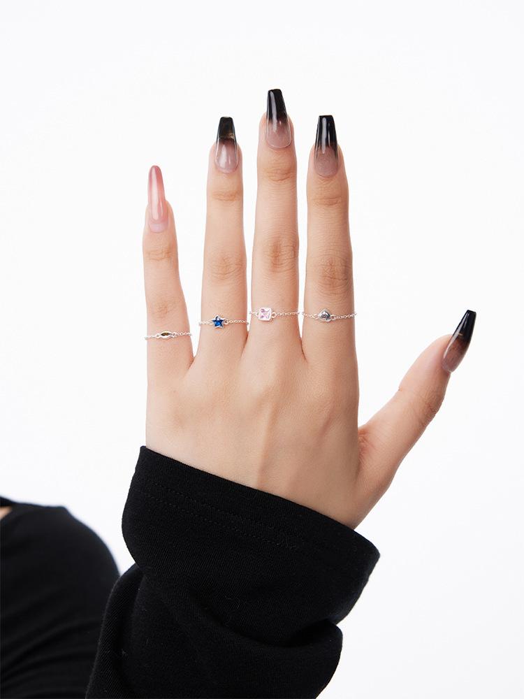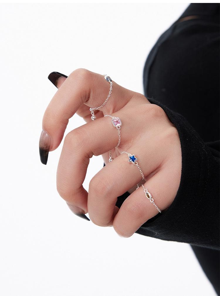 Anillo de plata de ley 925 con circonitas cúbicas y diseño de estrella de amor para mujer, sencillo, a la moda, combinable, exquisito, apilado.
