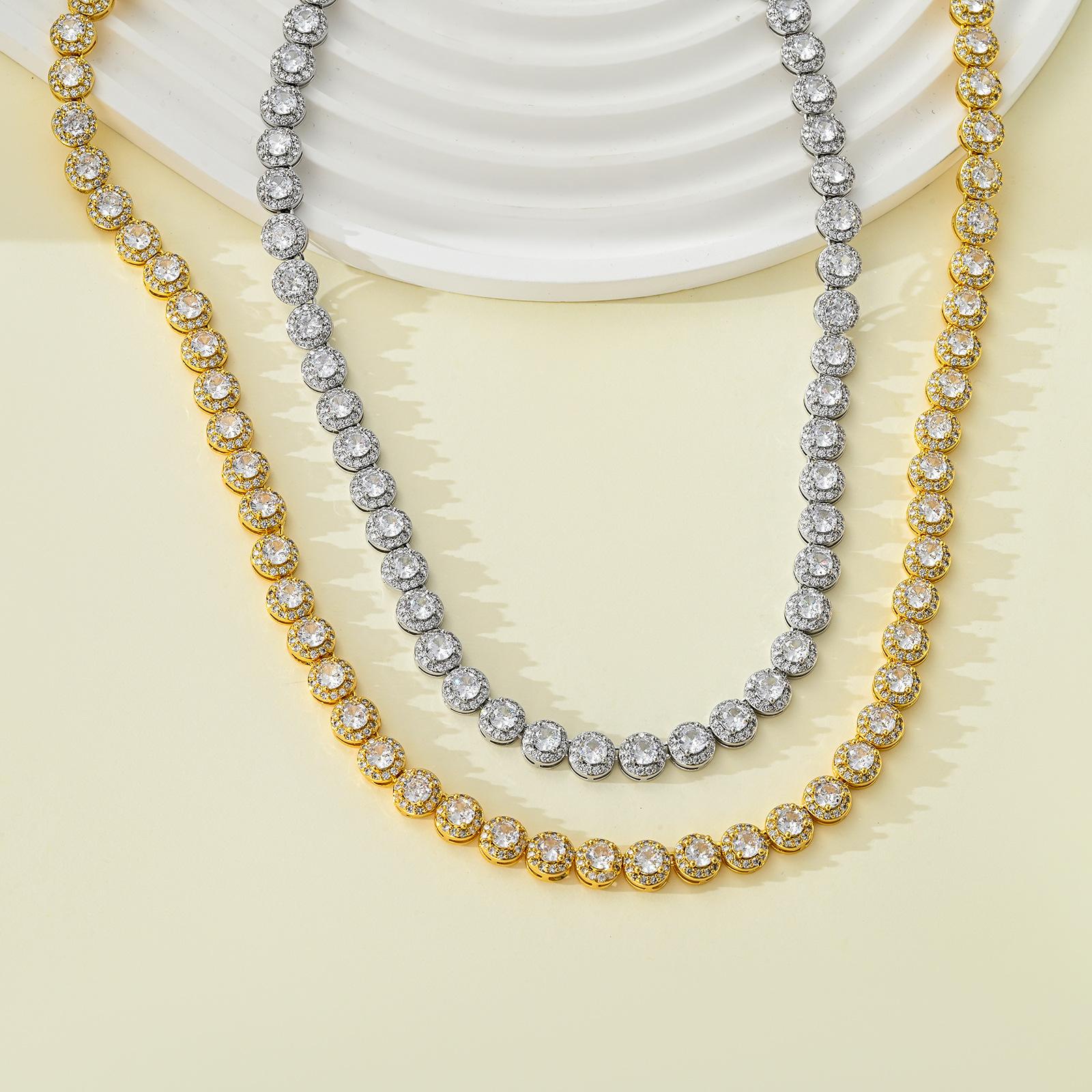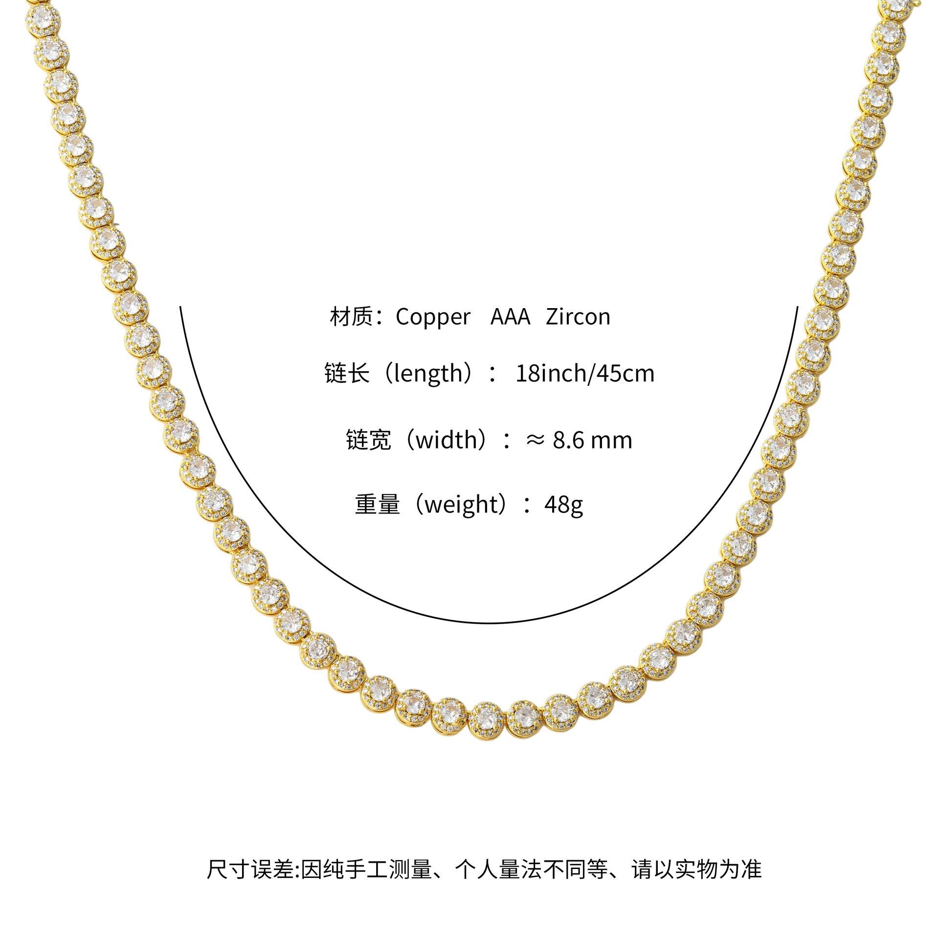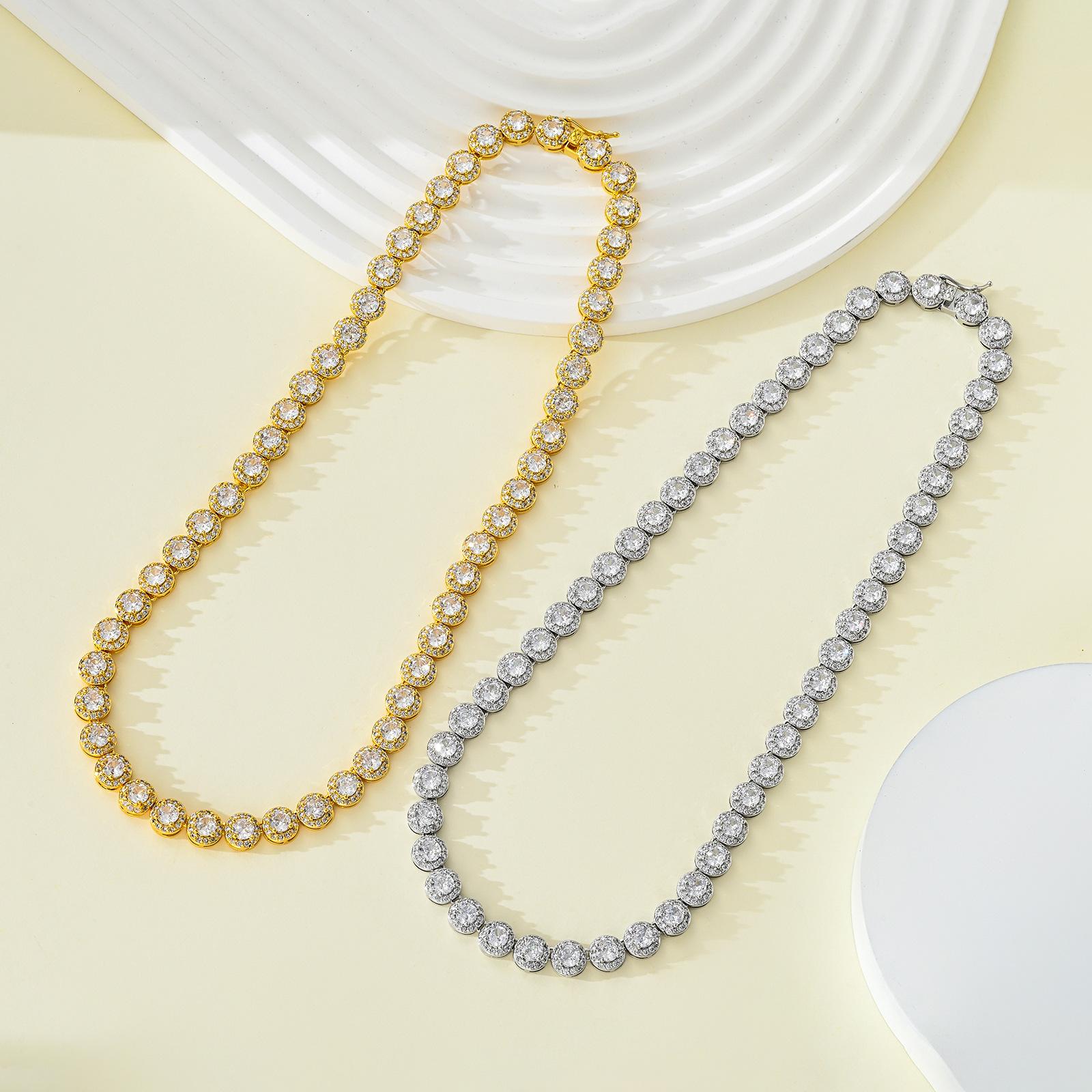 Collar personalizado transfronterizo europeo y americano de hip hop para hombres y mujeres, collar de circonita con incrustaciones, cadena cubana redonda, collar de rap de moda callejera