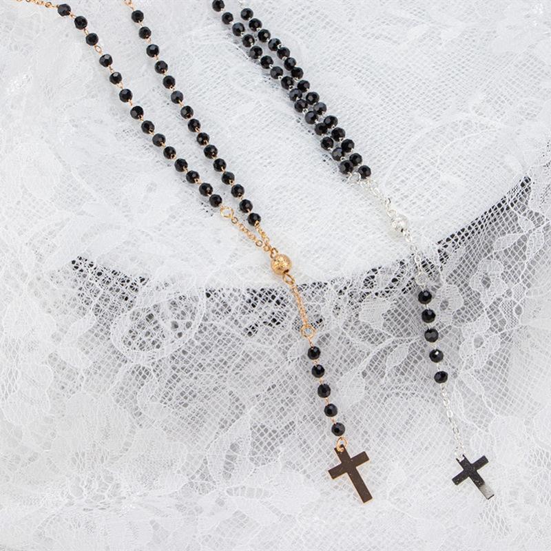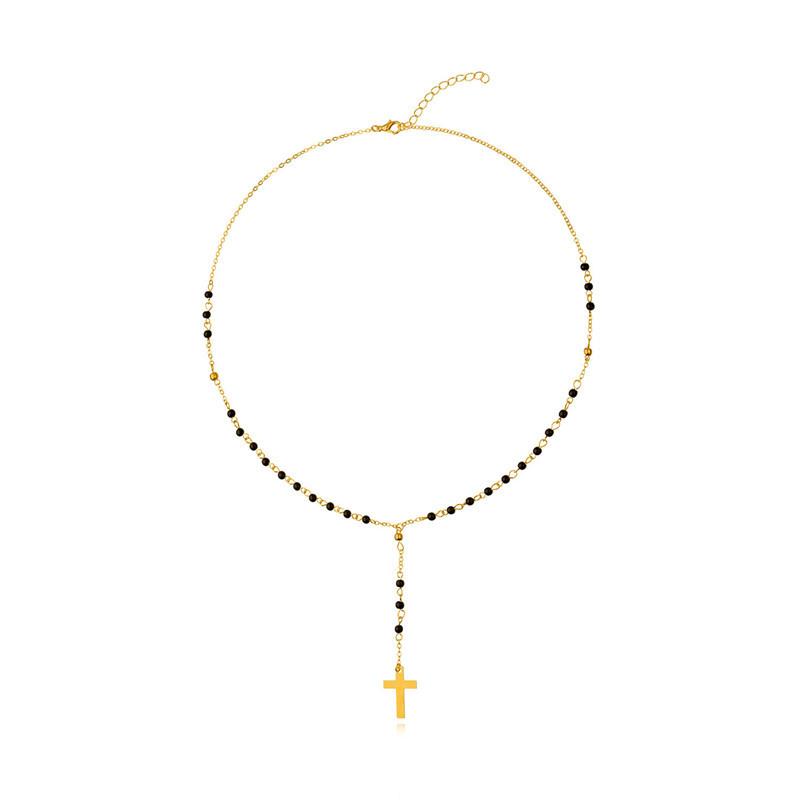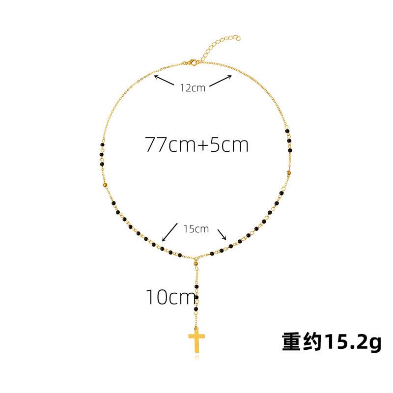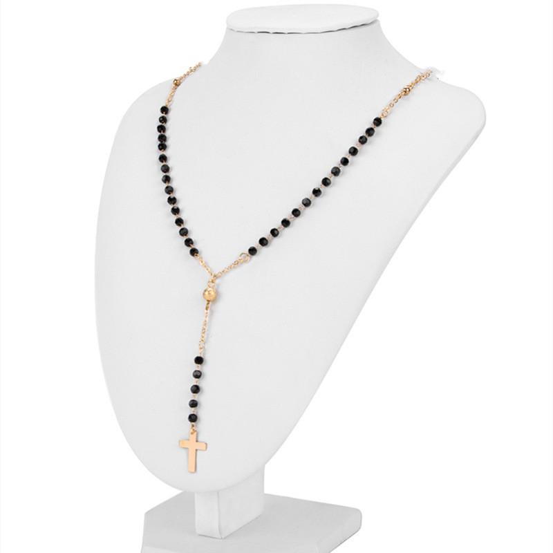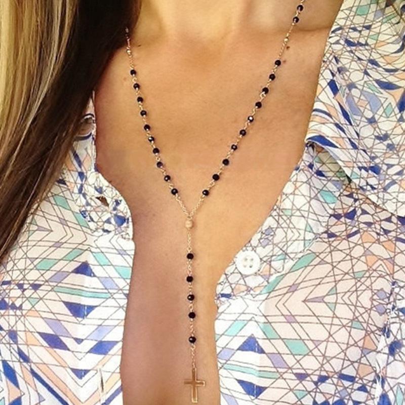 Collar con colgante de cruz de cristal en forma de Y con borla larga sencilla y hecha a mano para mujer, estilo europeo y americano.