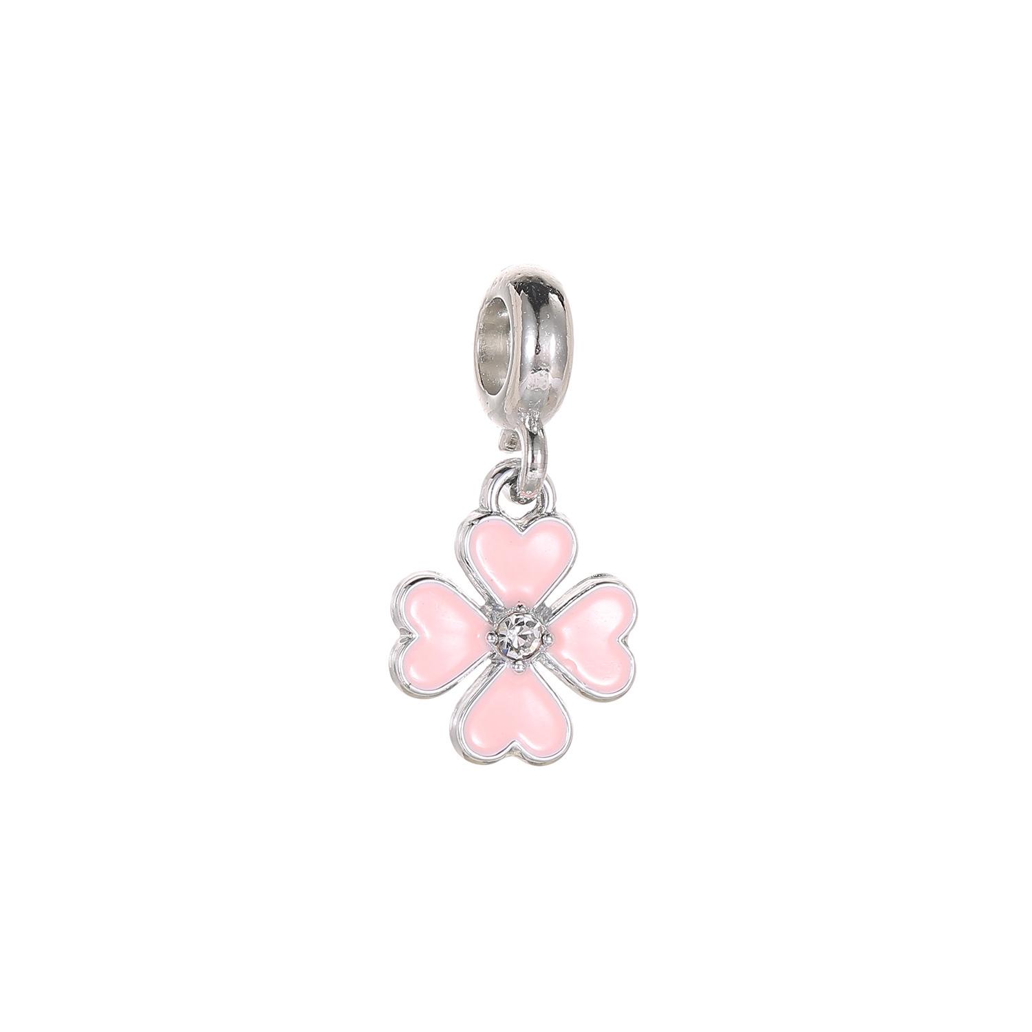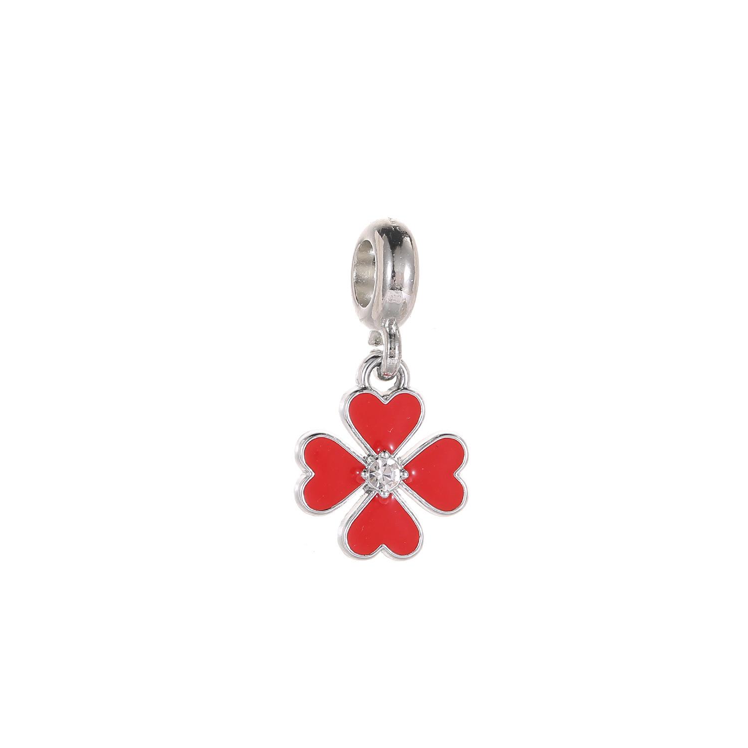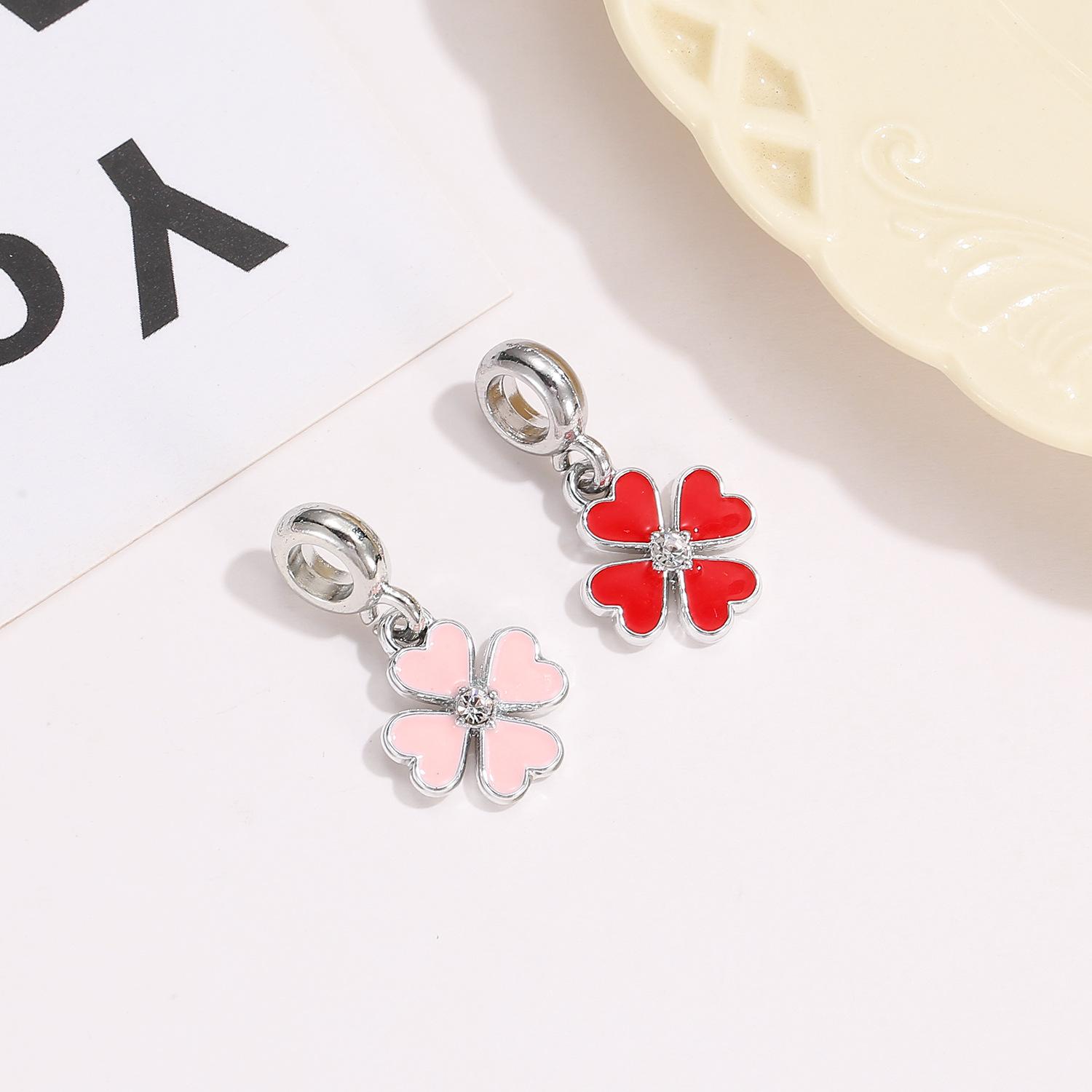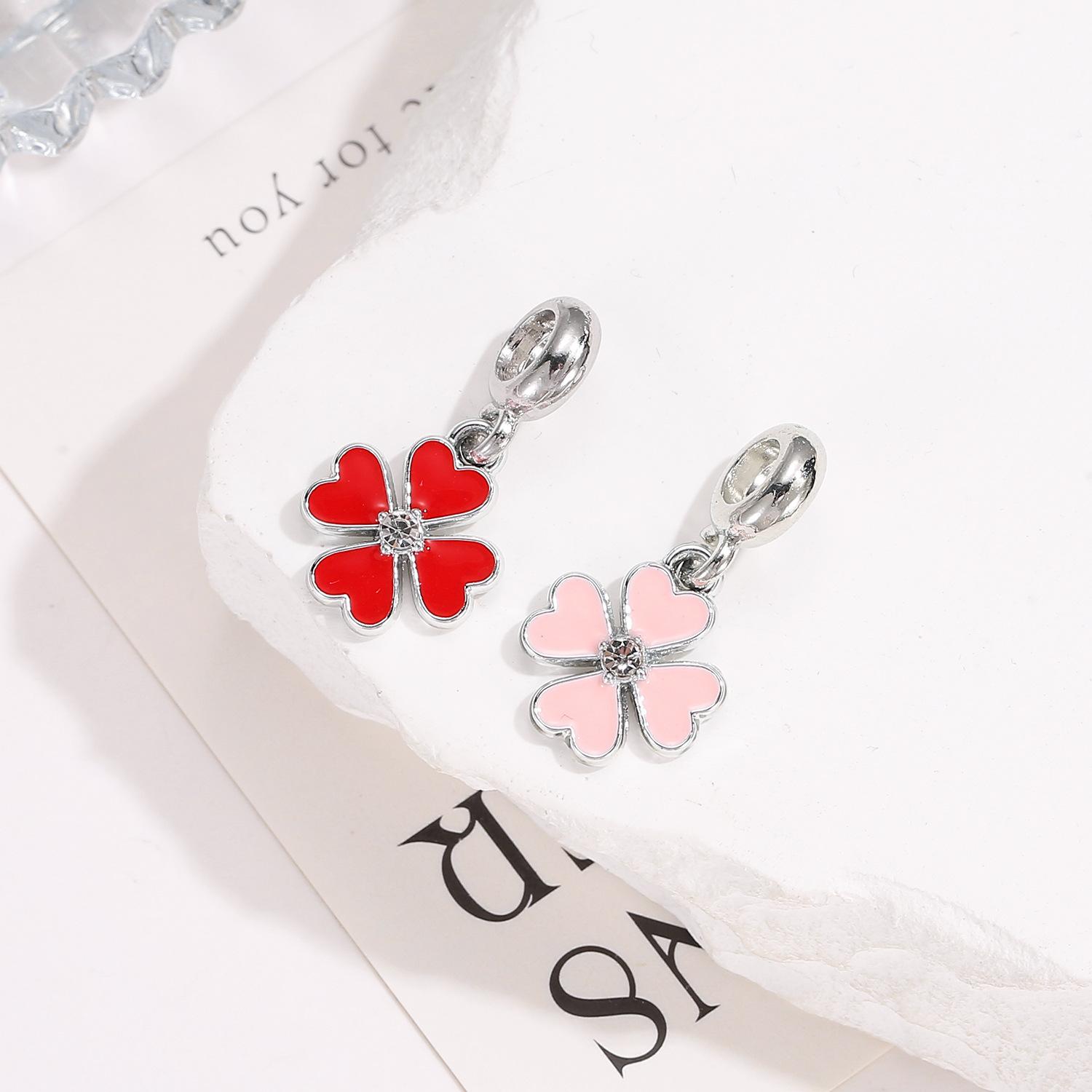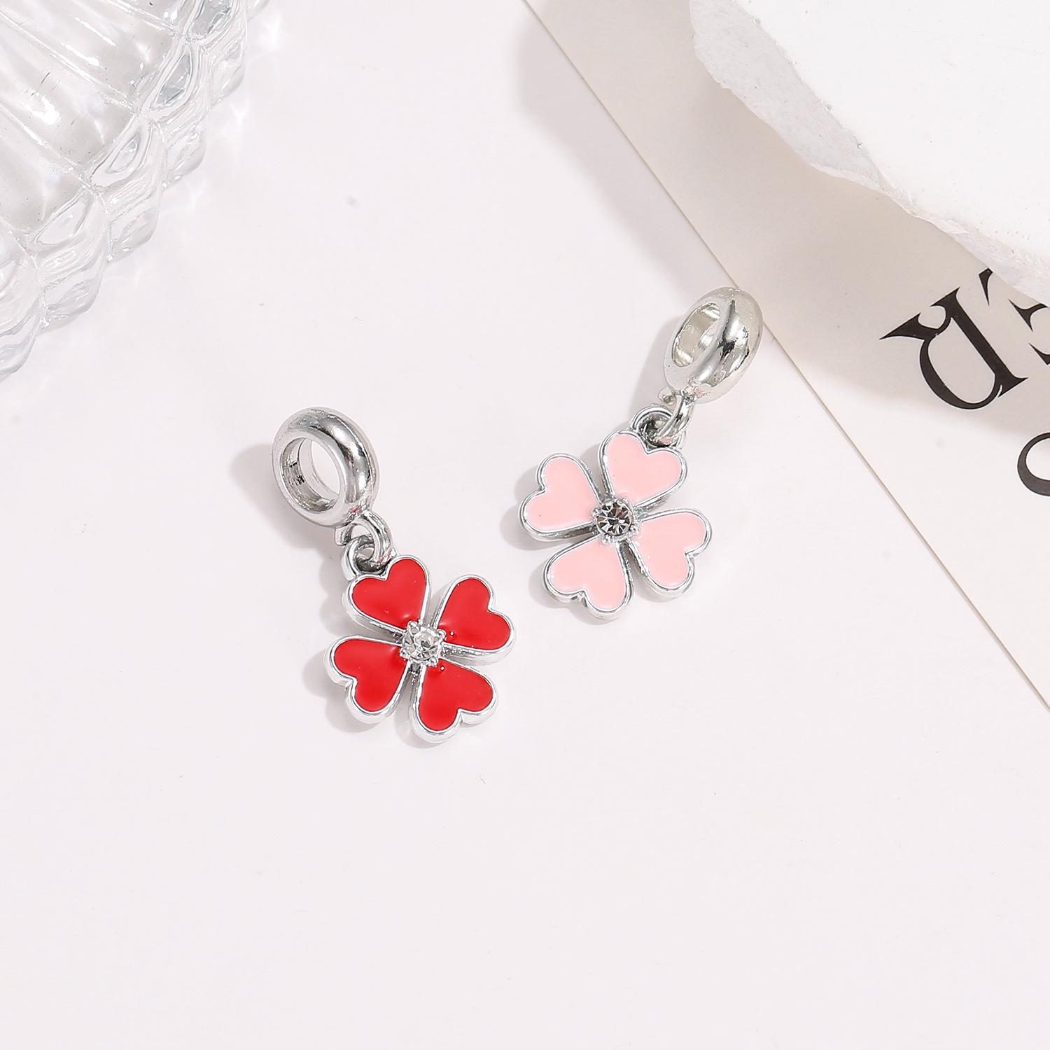 Nuevo Colgante de Joyería Colgante de Corazón Rosa y Rojo Dije de Pulsera Trébol de Cuatro Hojas DIY Hecho a Mano Colgante de Cuentas