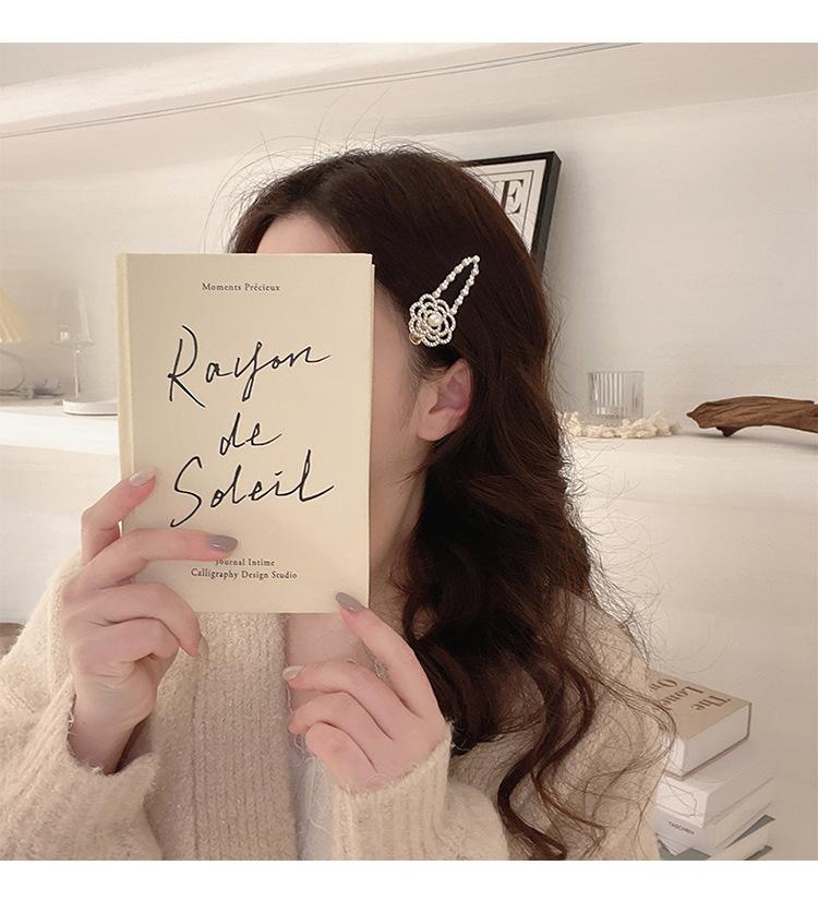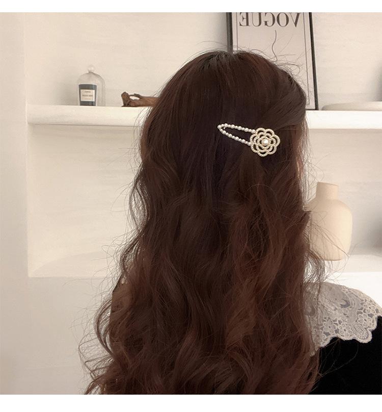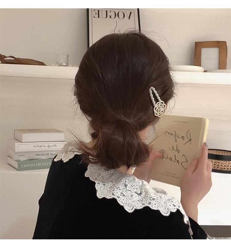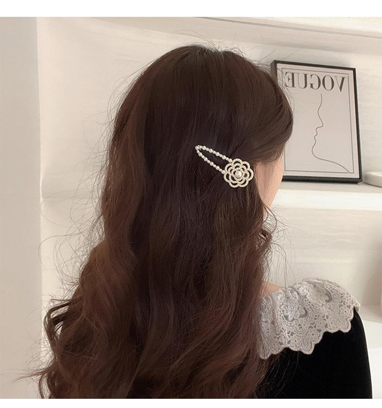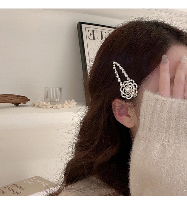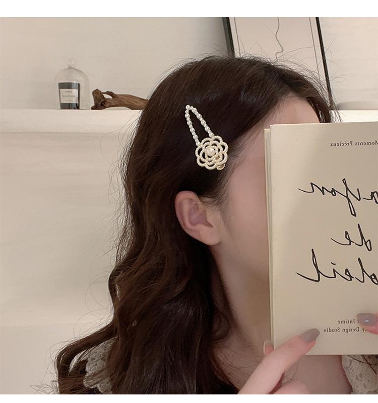 Horquilla pequeña con forma de camelia perlada para el pelo, para mujer, tamaño pequeño, para tocado, con clip lateral, para flequillo, accesorios para el cabello, horquilla rota para mujer.