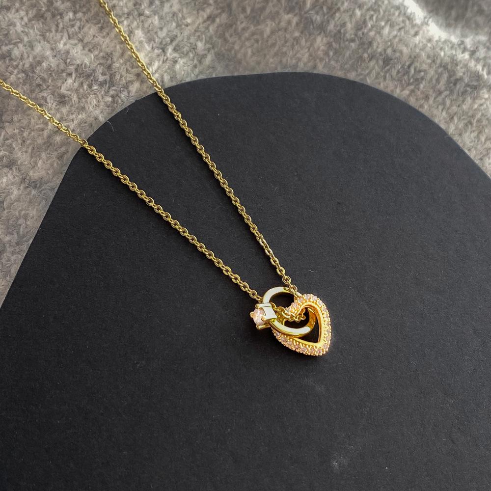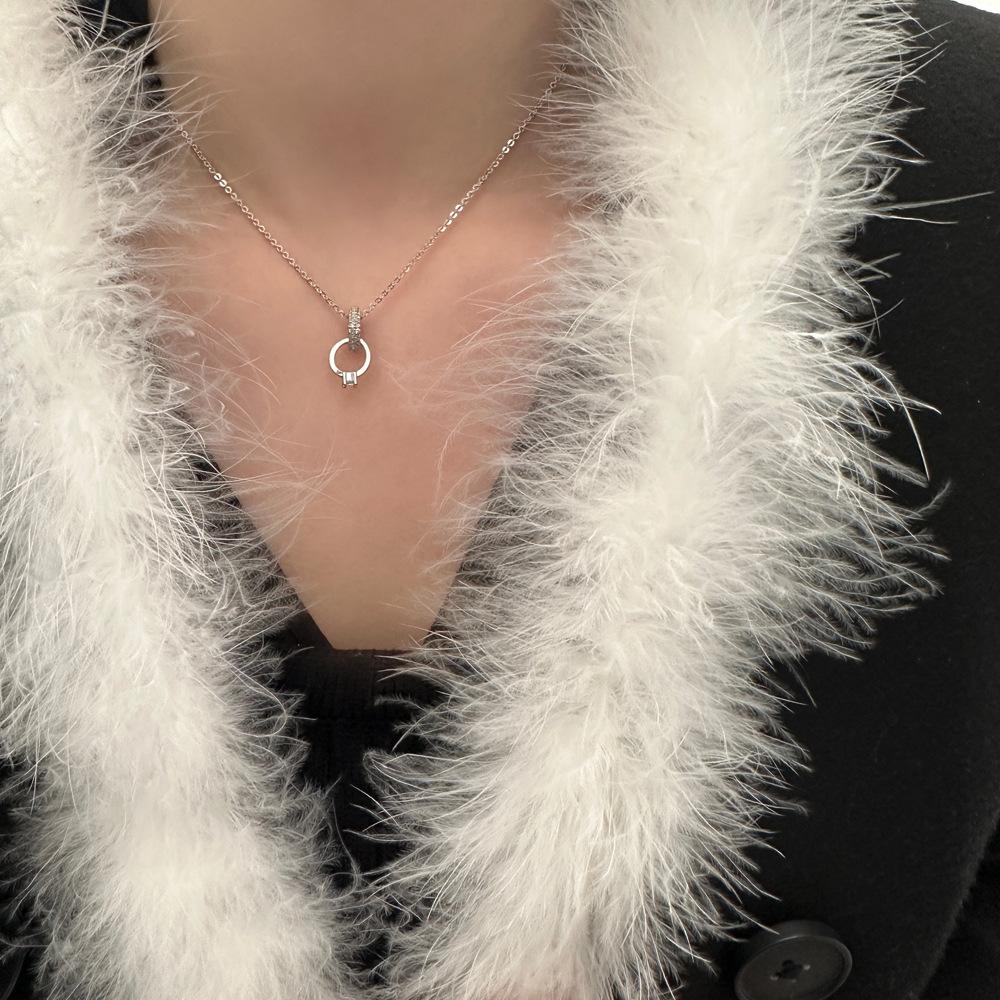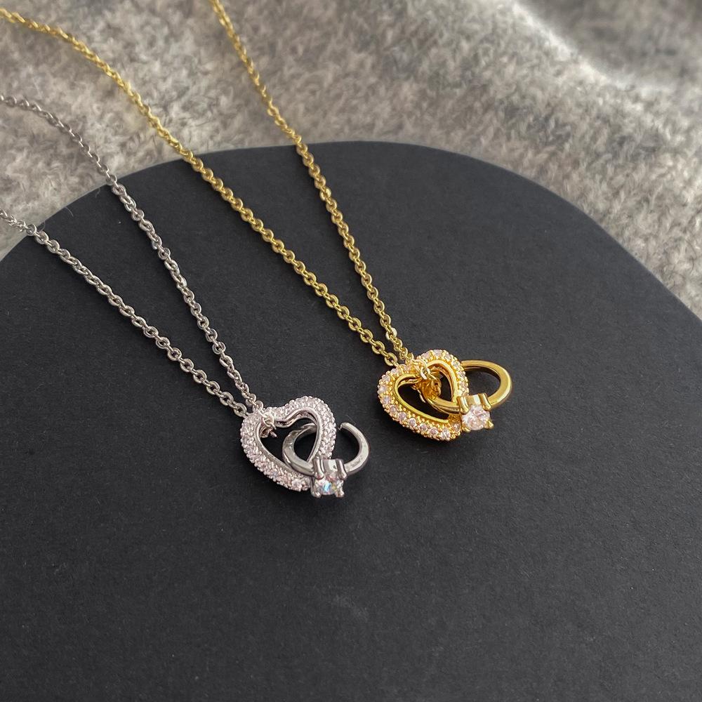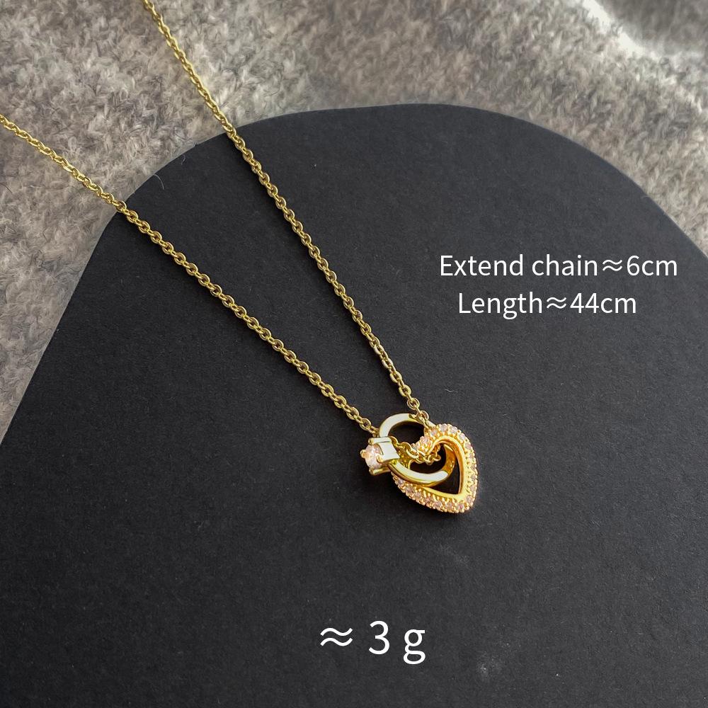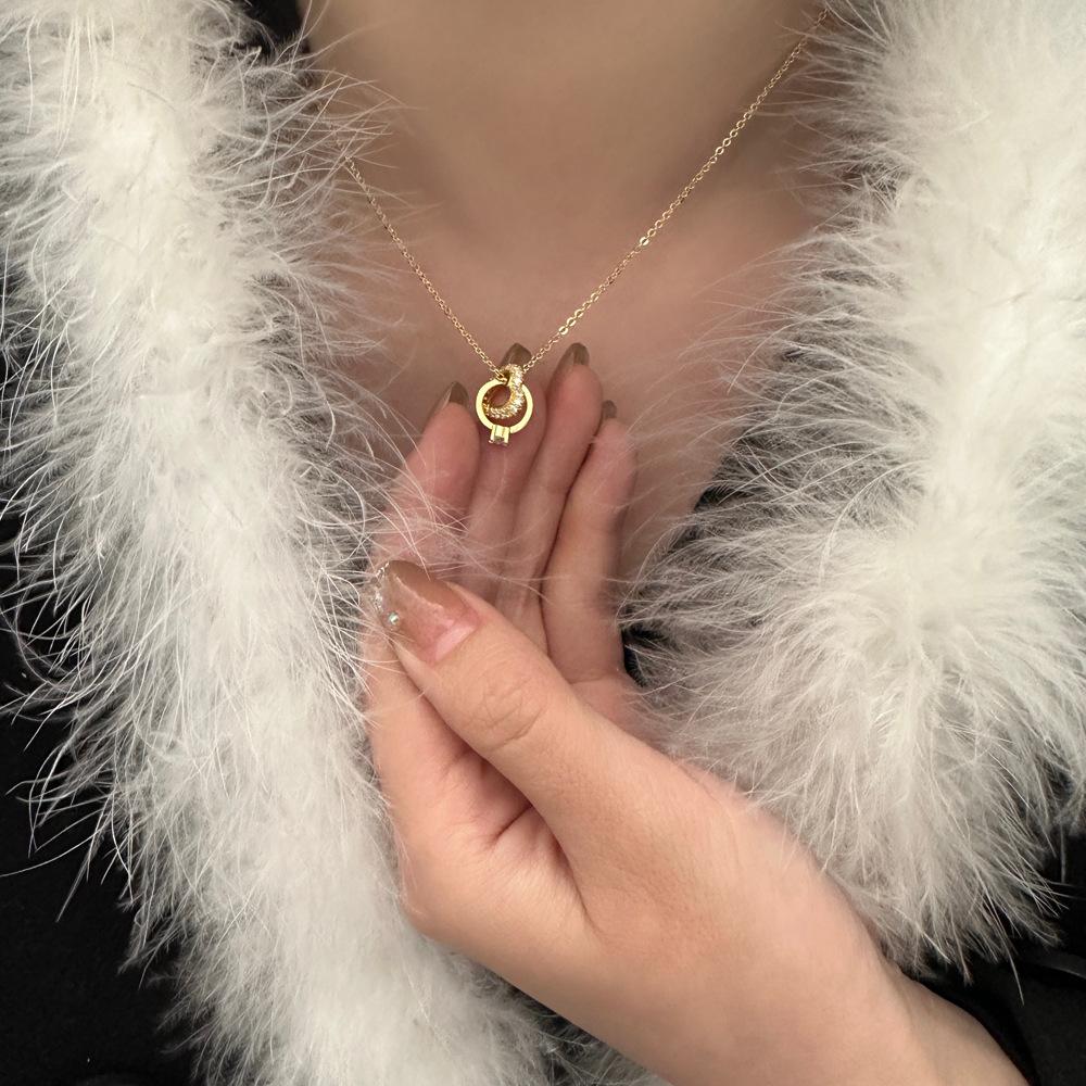 Collar de anillo de amor con microincrustaciones para mujer, estilo coreano ins, sentido de alta gama, nicho de temperamento, cadena para clavícula, anillo para mujer chapado en oro real de cobre