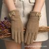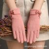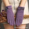 Guantes de terciopelo para mujer para montar al aire libre, con bonito lazo, cálidos, para otoño e invierno, nuevos, resistentes al viento y al frío, con pantalla táctil.