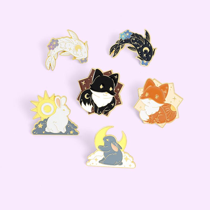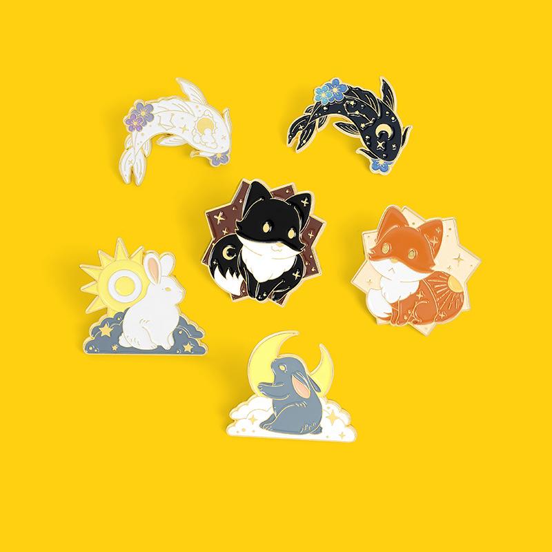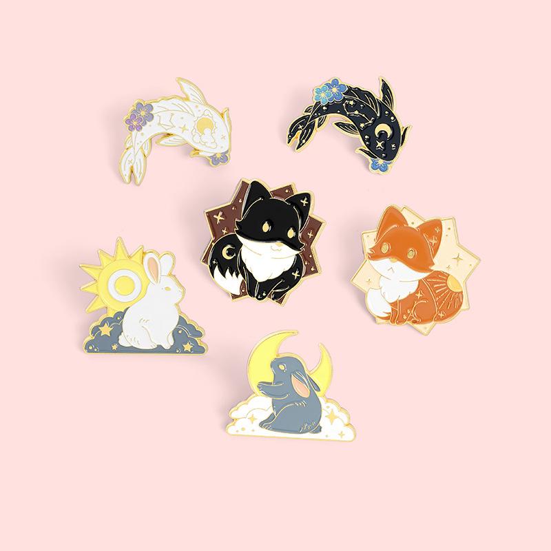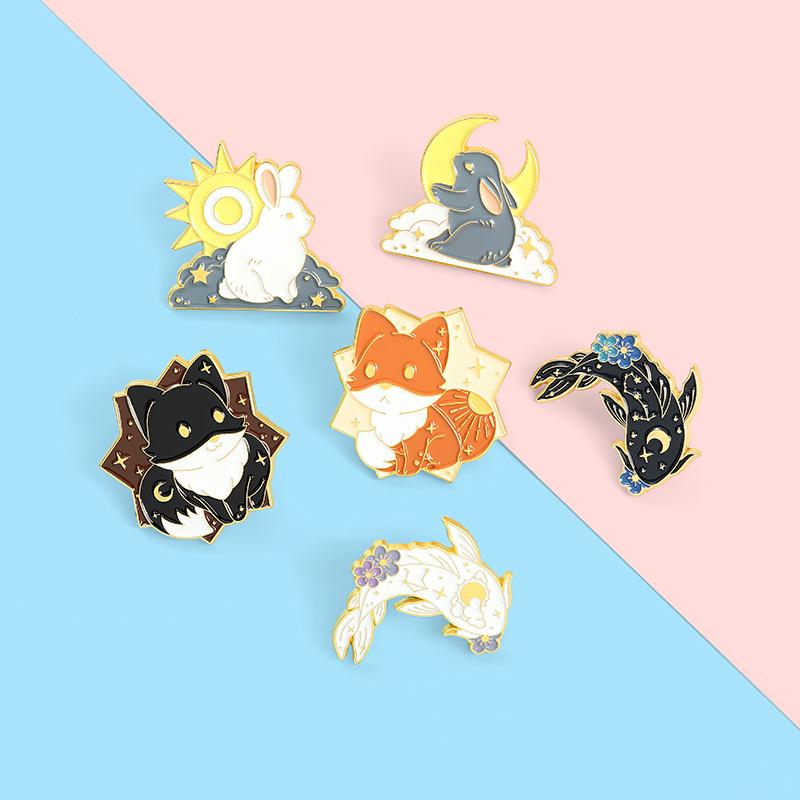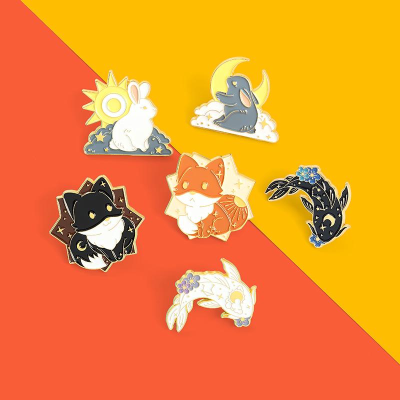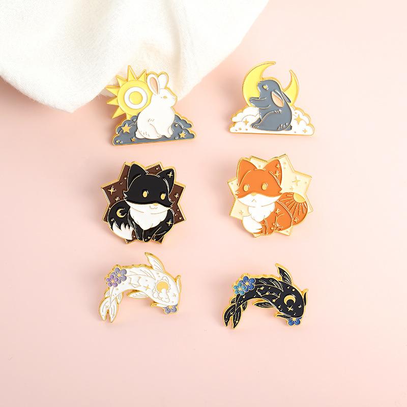 Broche de animal lindo con forma de cachorro, conejo y pez dorado, joyería de comercio exterior, insignia de pintura
