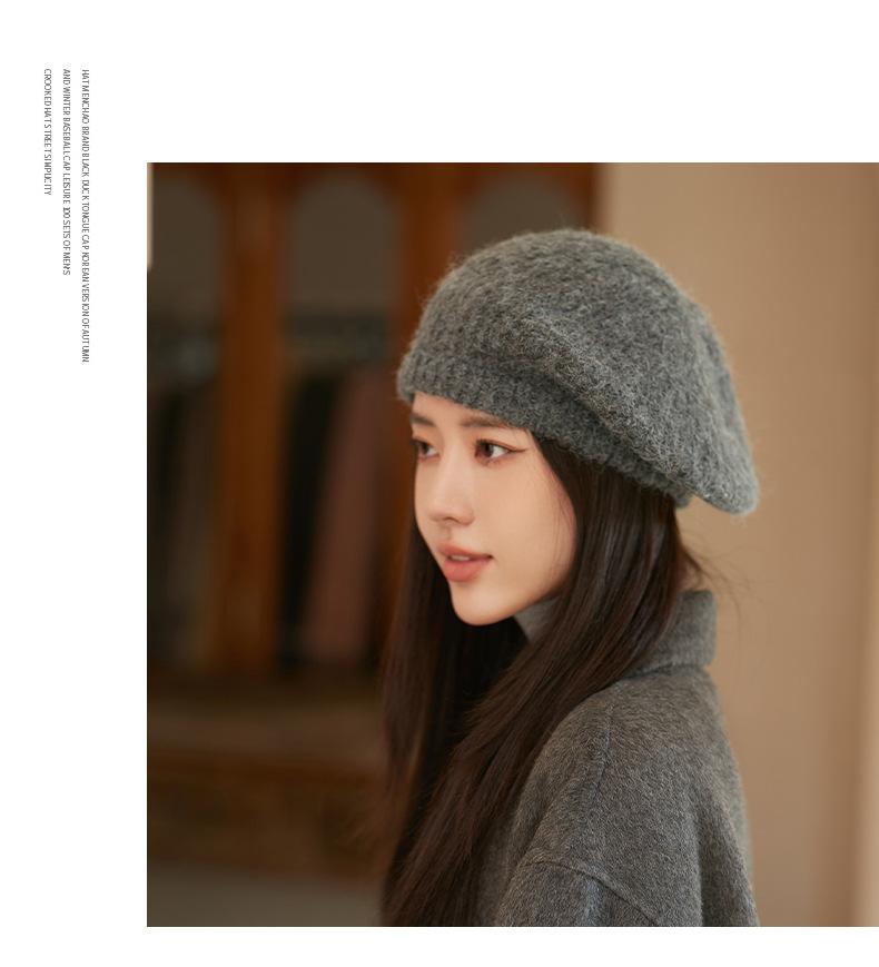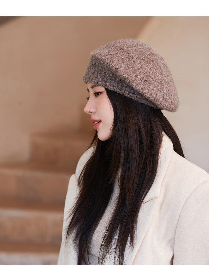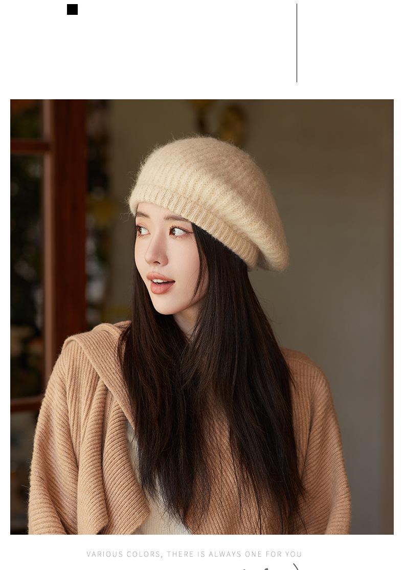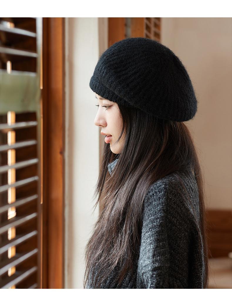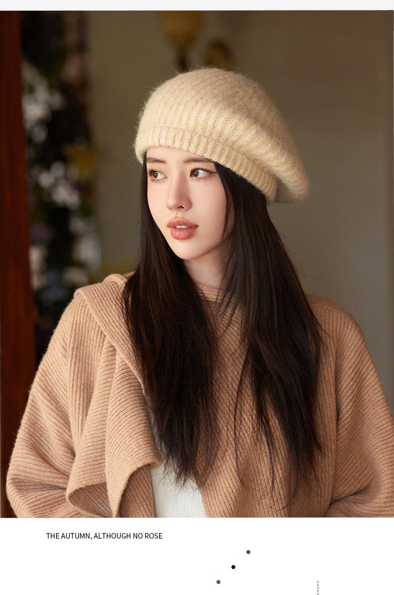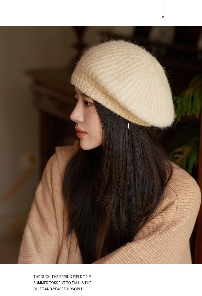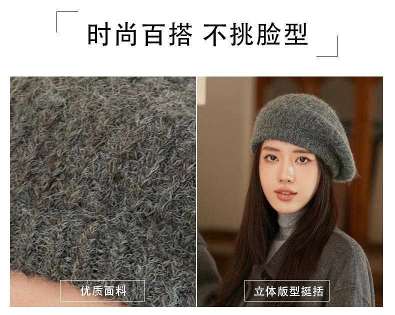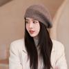 Sombrero de Otoño e Invierno 2024 Sombrero de Lana Tejido Cálido de Piel de Conejo para Mujer Color Sólido Más Fácil de Combinar Boina Sombrero de Pintor Retro Literario