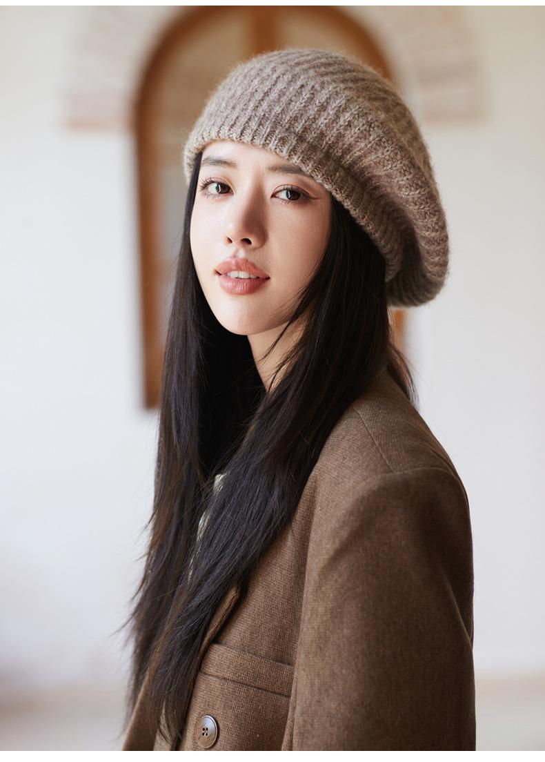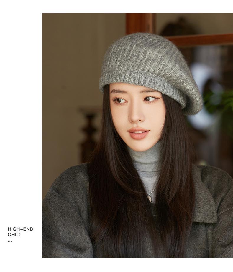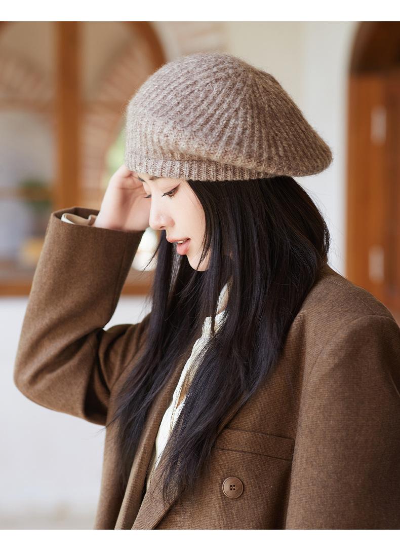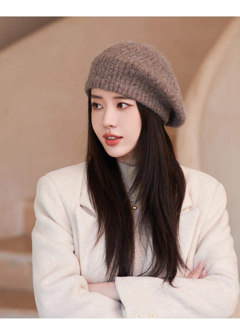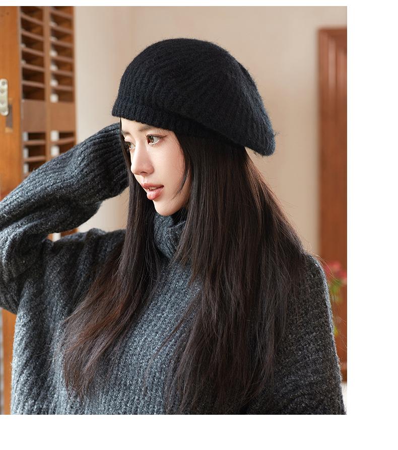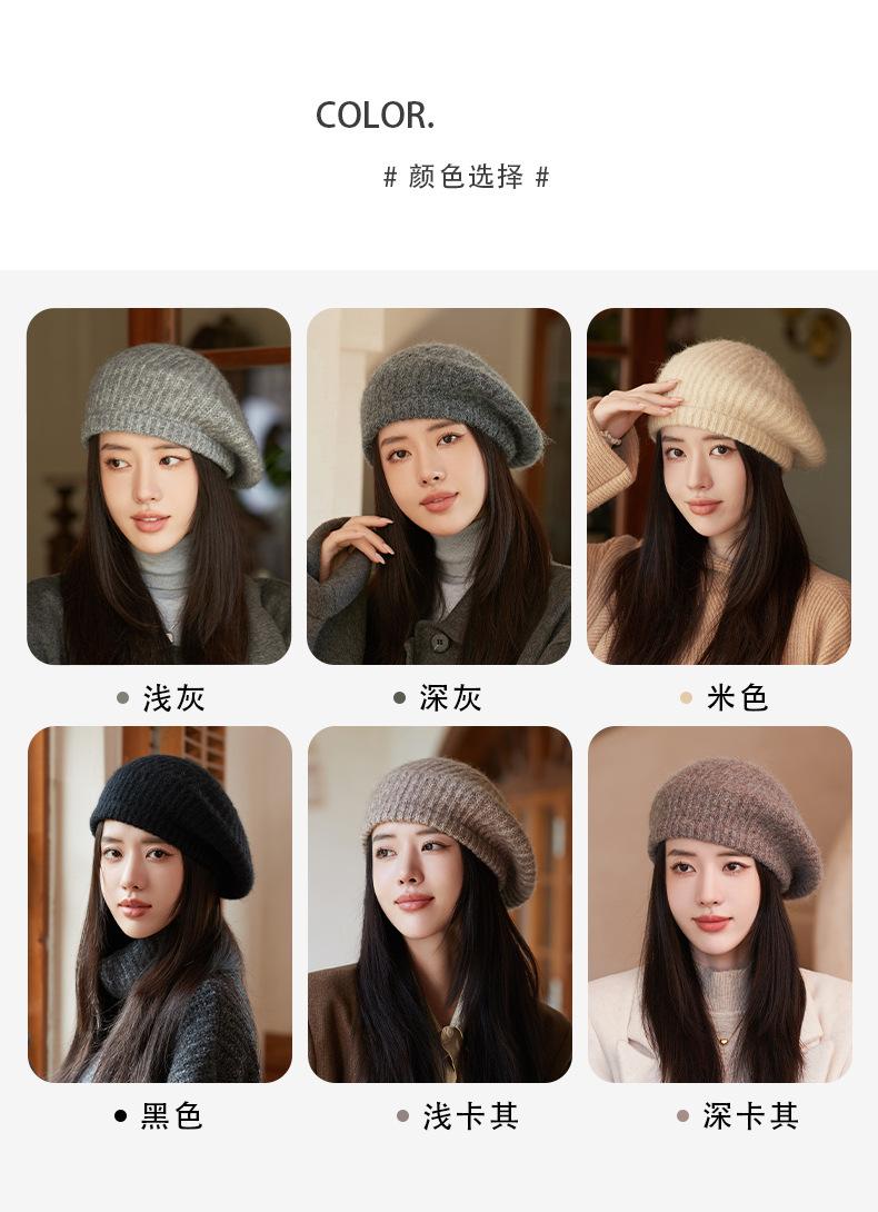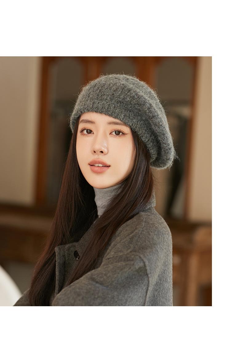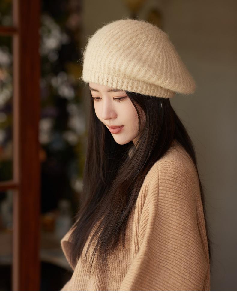 Sombrero de Otoño e Invierno 2024 Sombrero de Lana Tejido Cálido de Piel de Conejo para Mujer Color Sólido Más Fácil de Combinar Boina Sombrero de Pintor Retro Literario