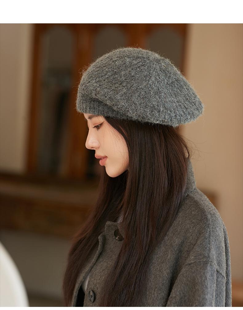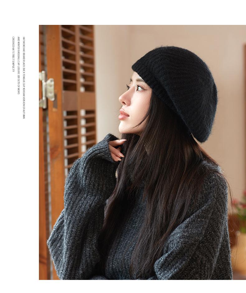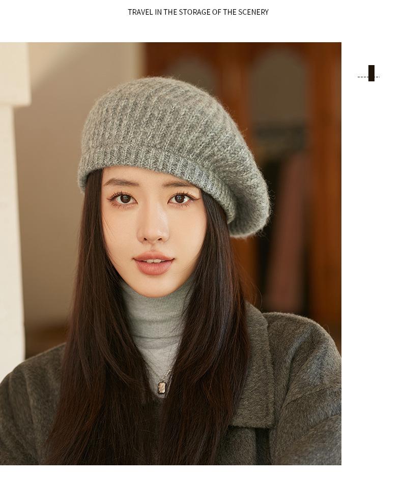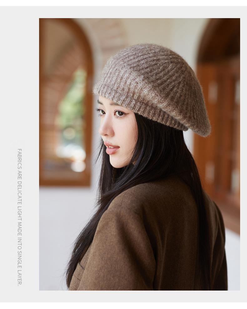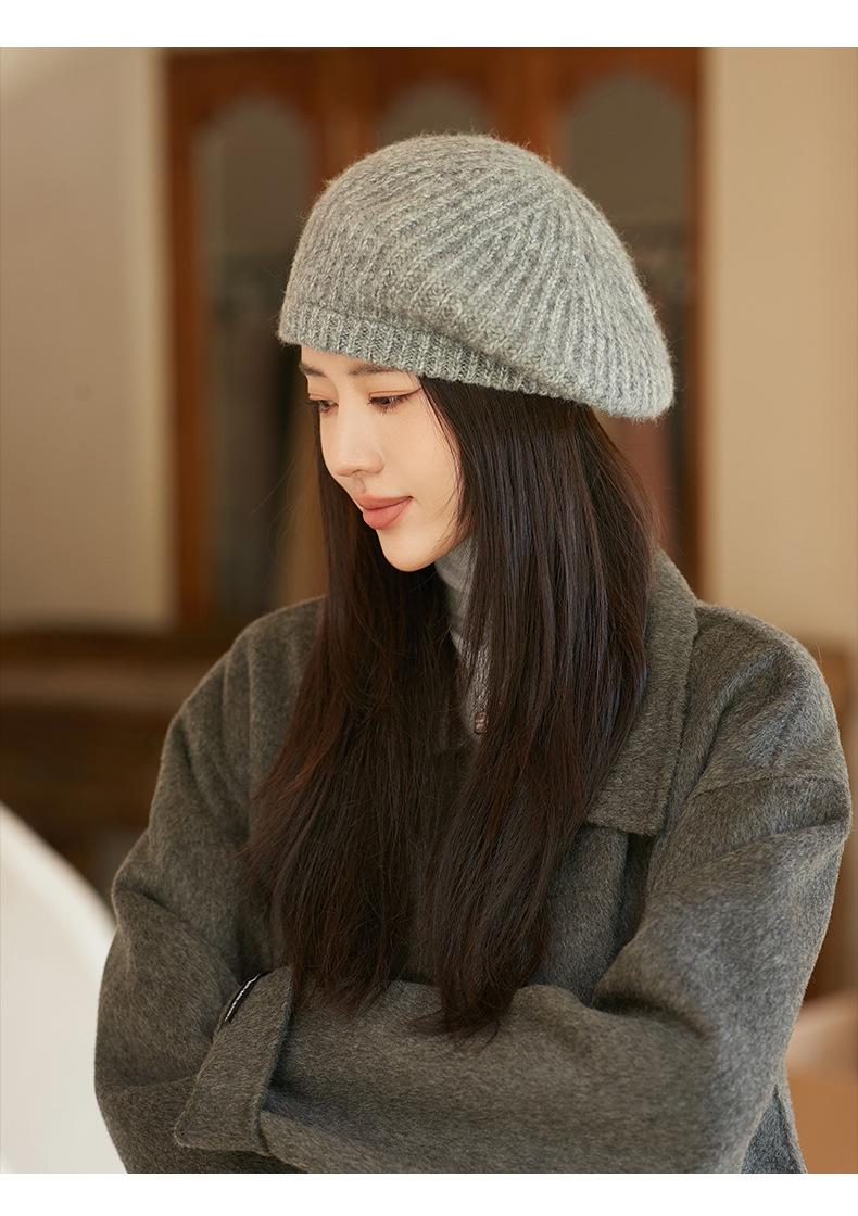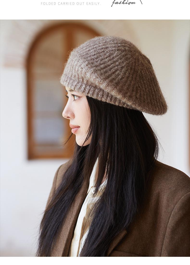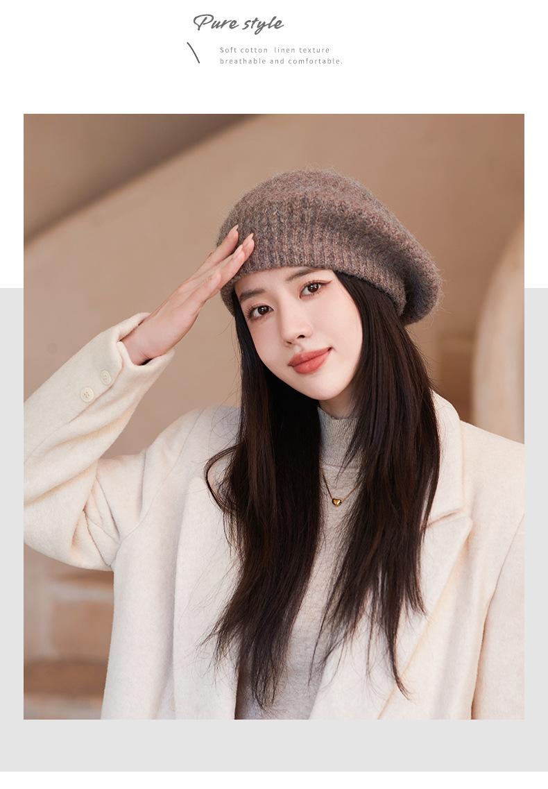 Sombrero de Otoño e Invierno 2024 Sombrero de Lana Tejido Cálido de Piel de Conejo para Mujer Color Sólido Más Fácil de Combinar Boina Sombrero de Pintor Retro Literario