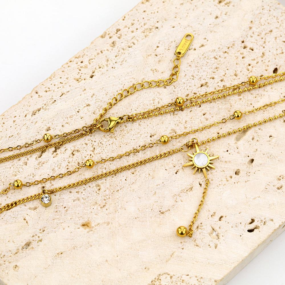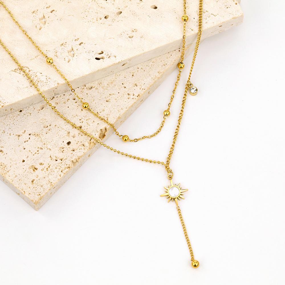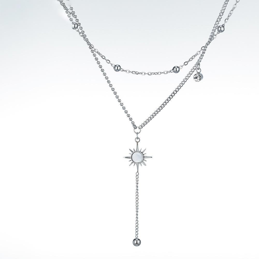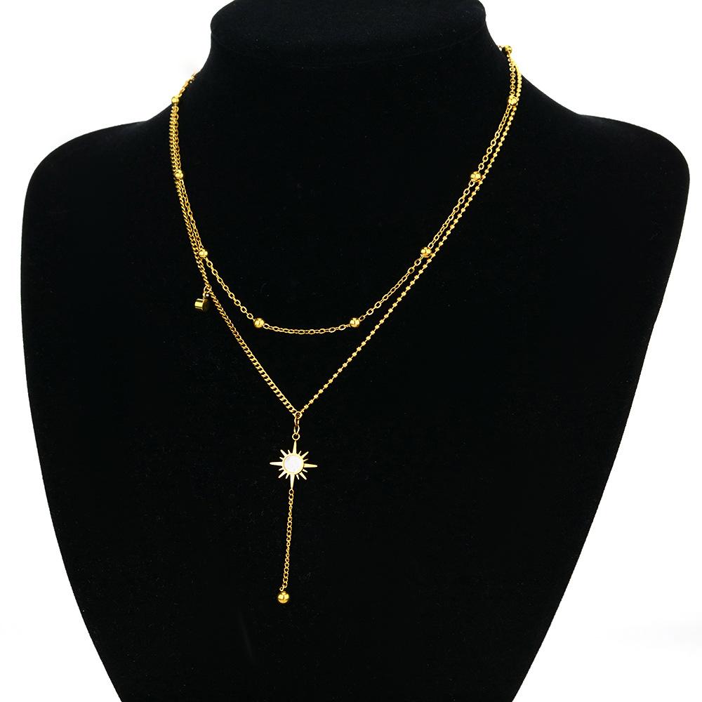Collar de acero de titanio con cuentas redondas de estrella, joyería transfronteriza europea y americana, collar simple de moda multicapa, luz fría de lujo