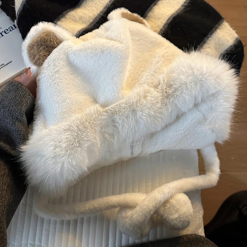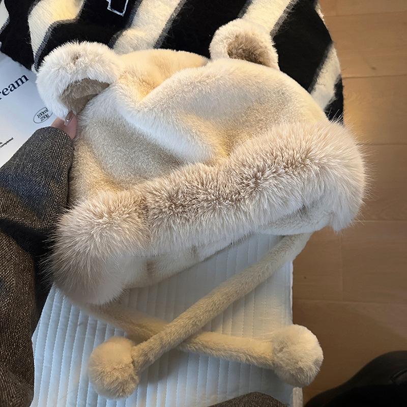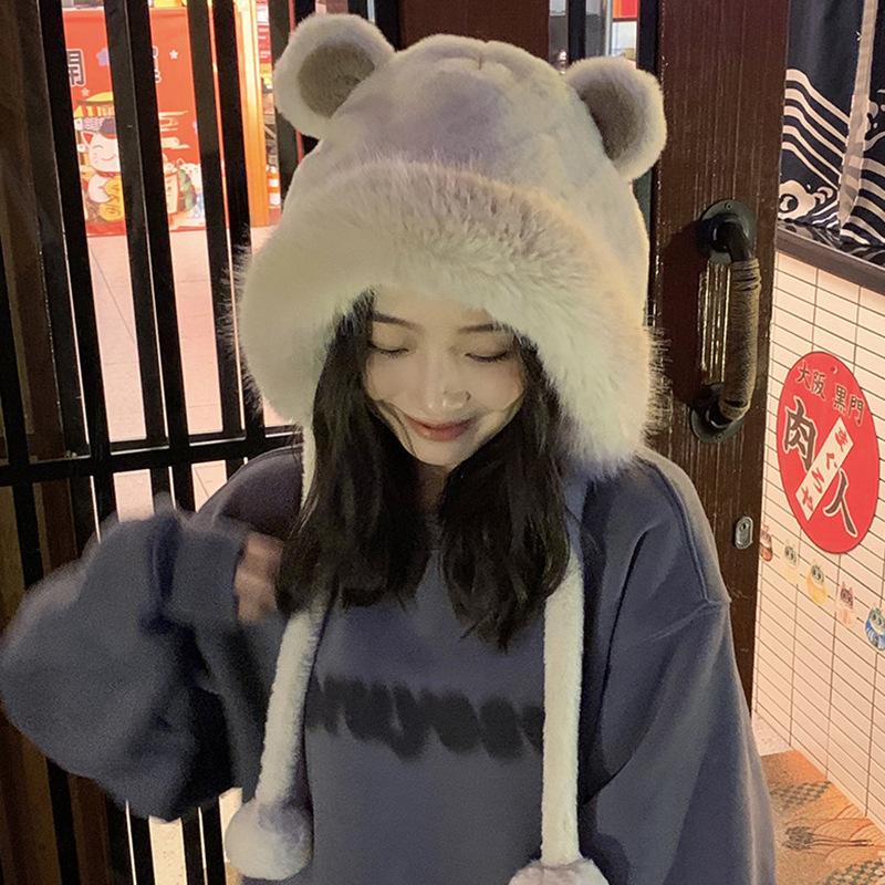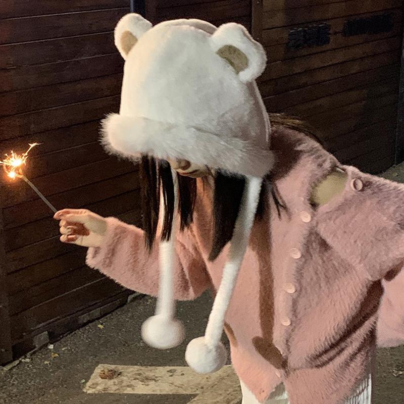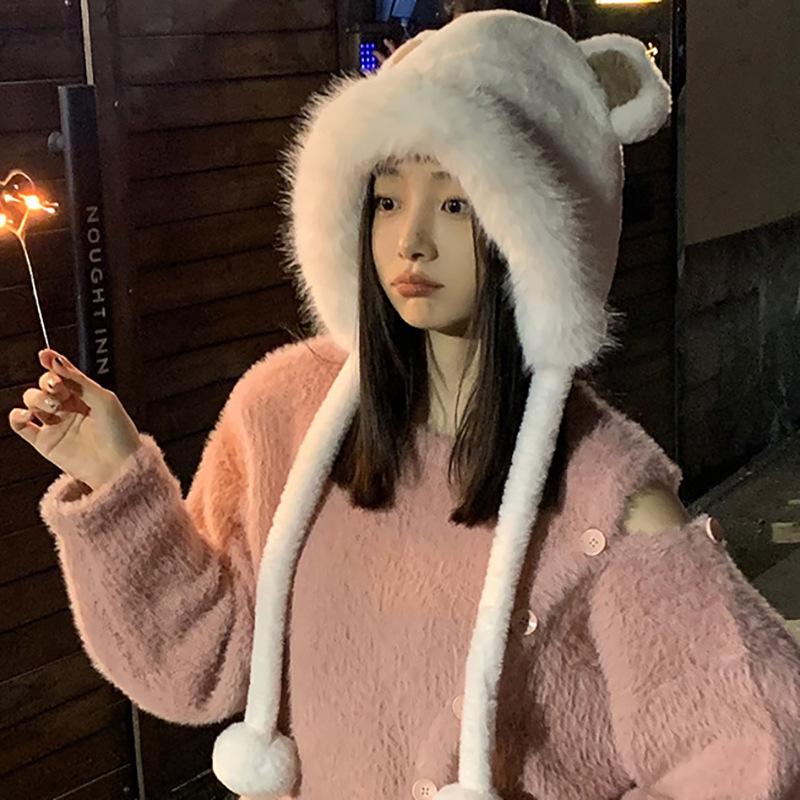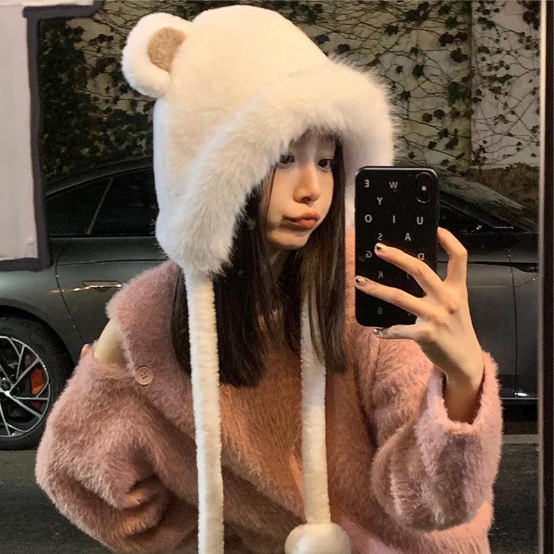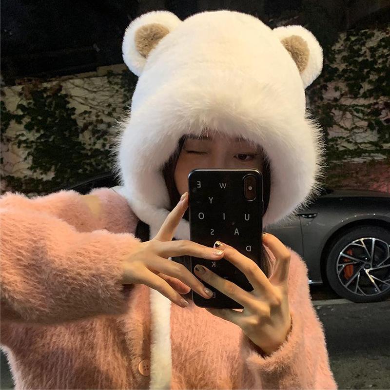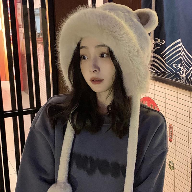 Corea del Sur lindo oso orejas felpa cálido sombrero Lei Feng femenino invierno engrosado a prueba de frío protección para las orejas dulce gorro femenino