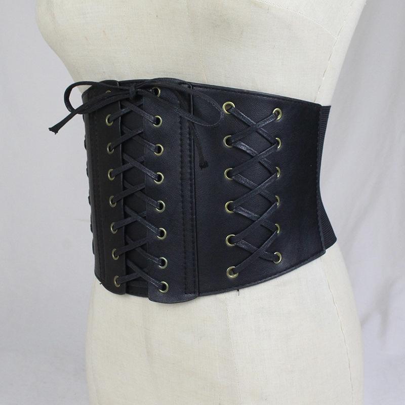 Personalidad Punk Transfronteriza Comercio Exterior Exagerado Cuerda Decorativa PU Elástico Cinturón Ancho Elástico para Mujer Cubre Cintura Negro