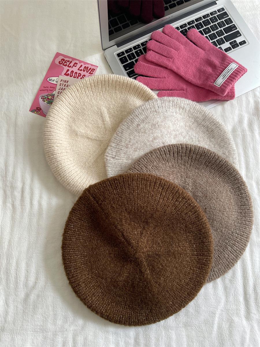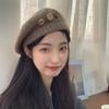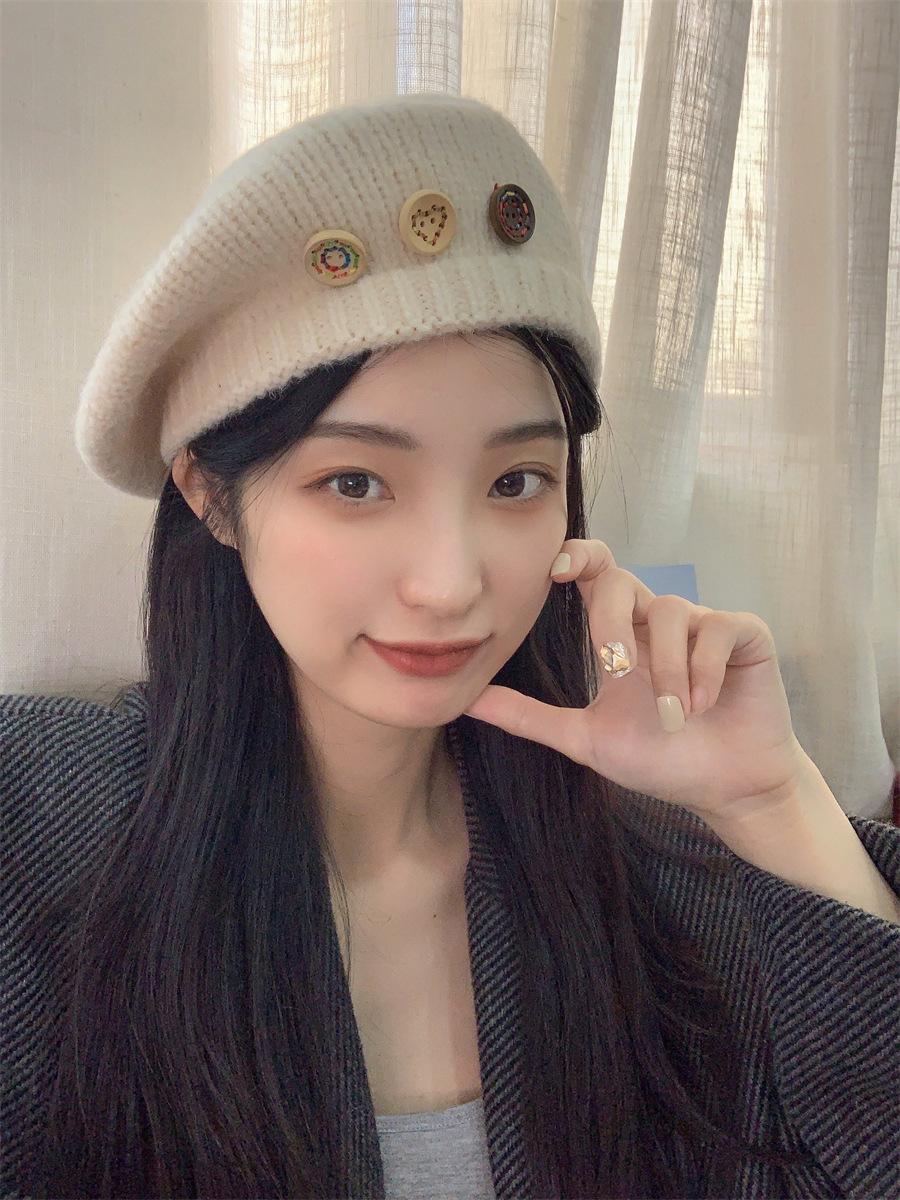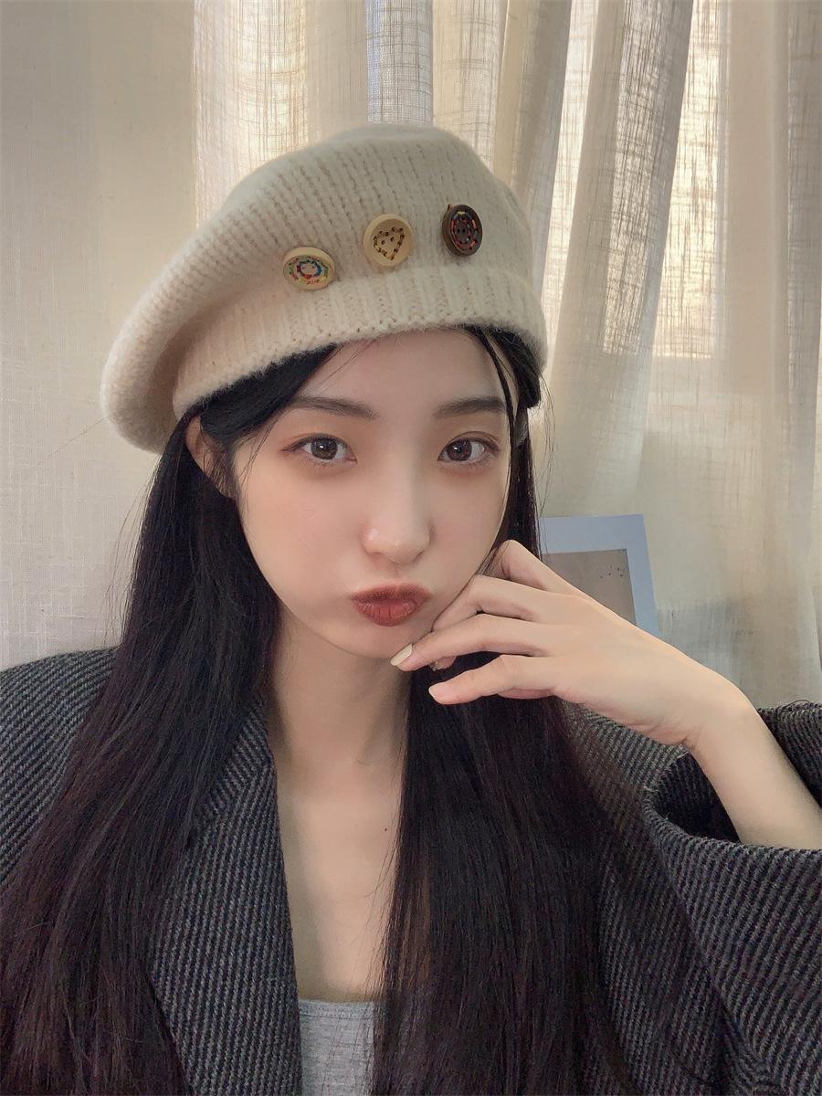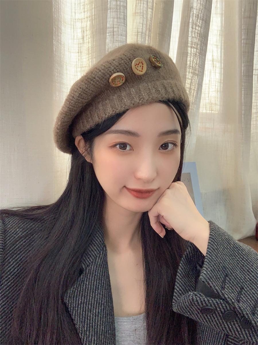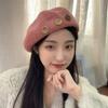 Boina de punto con botones de estilo perezoso para mujer, estilo japonés, otoño e invierno, retro, dulce, versátil, de moda, pintor, sombrero de calabaza