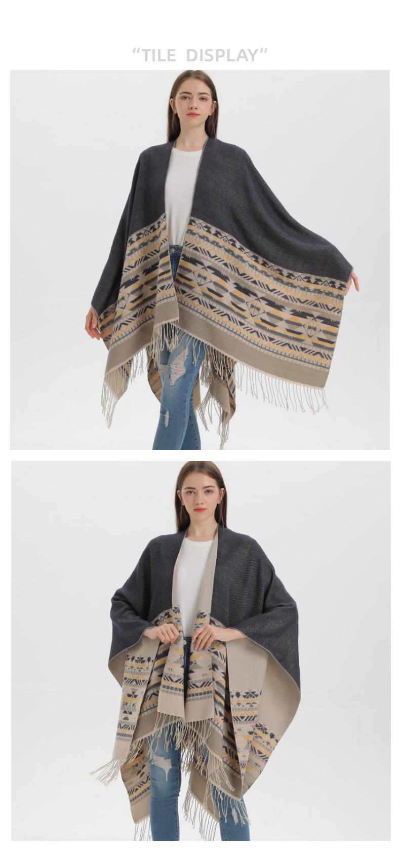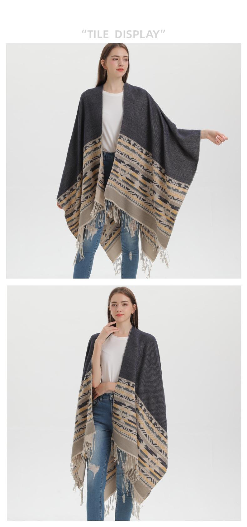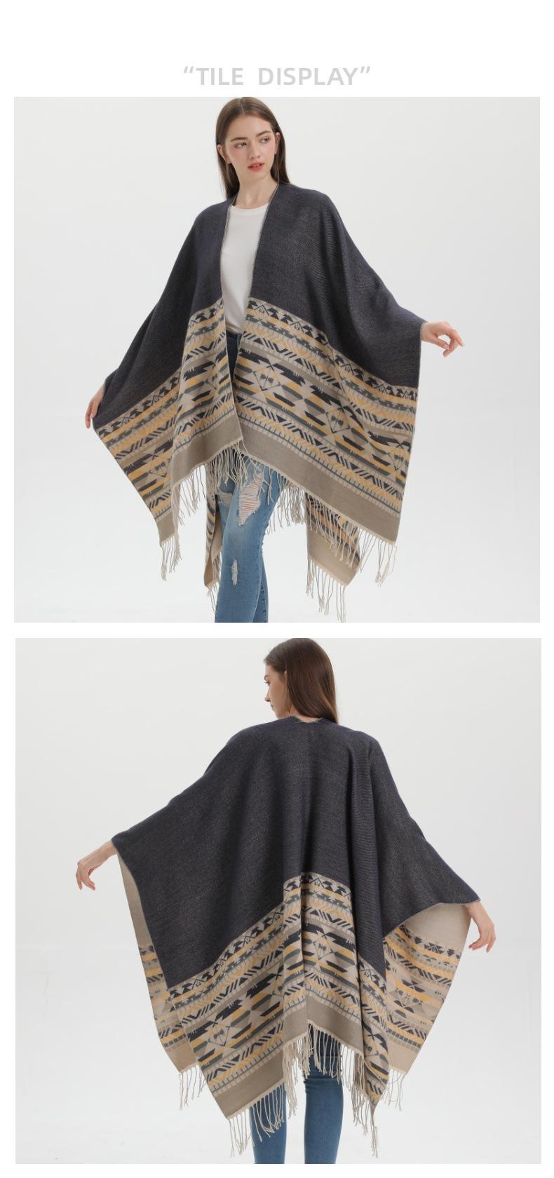 Otoño e invierno tejido dividido chal grande estilo étnico bohemio borla capa cálida venta al por mayor explosiones transfronterizas