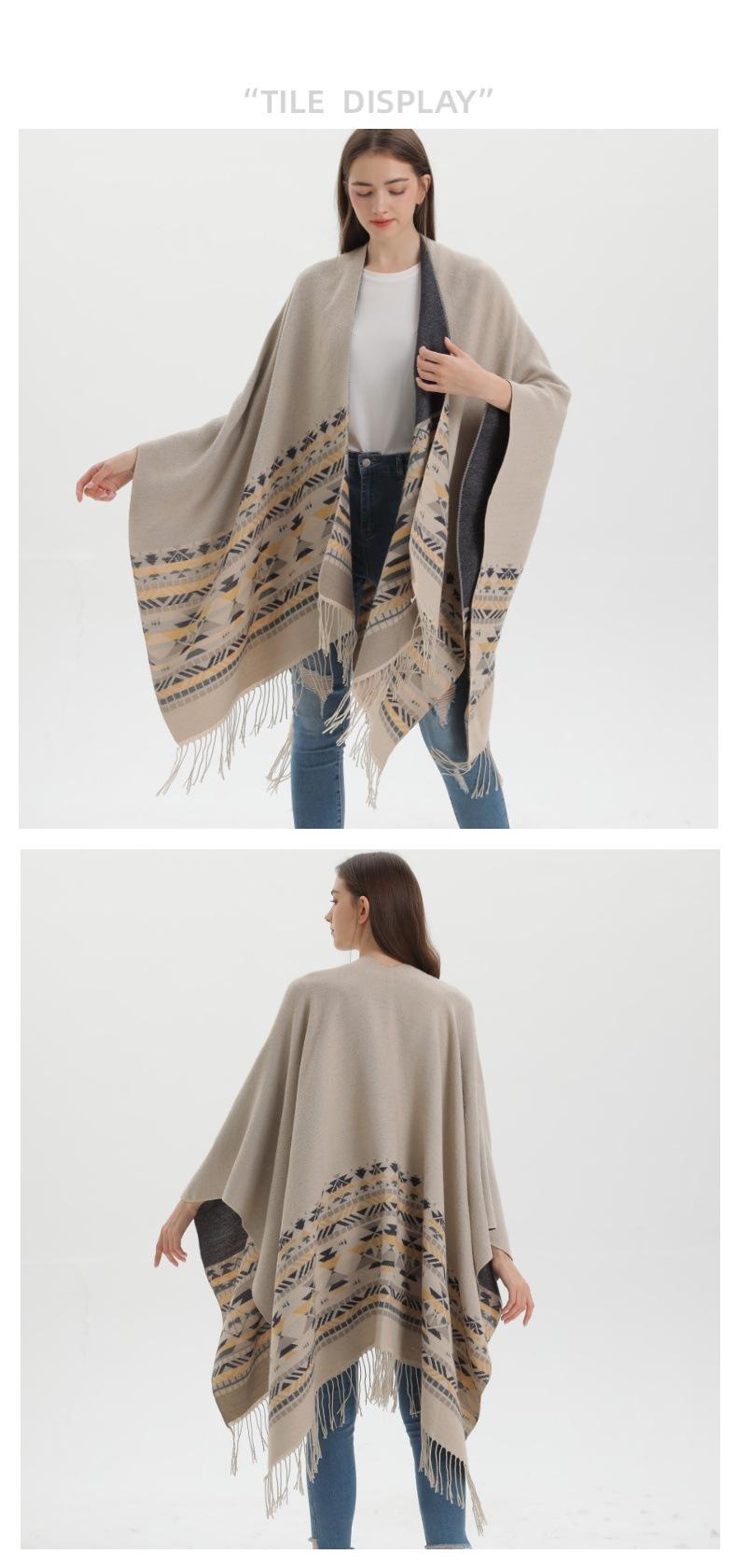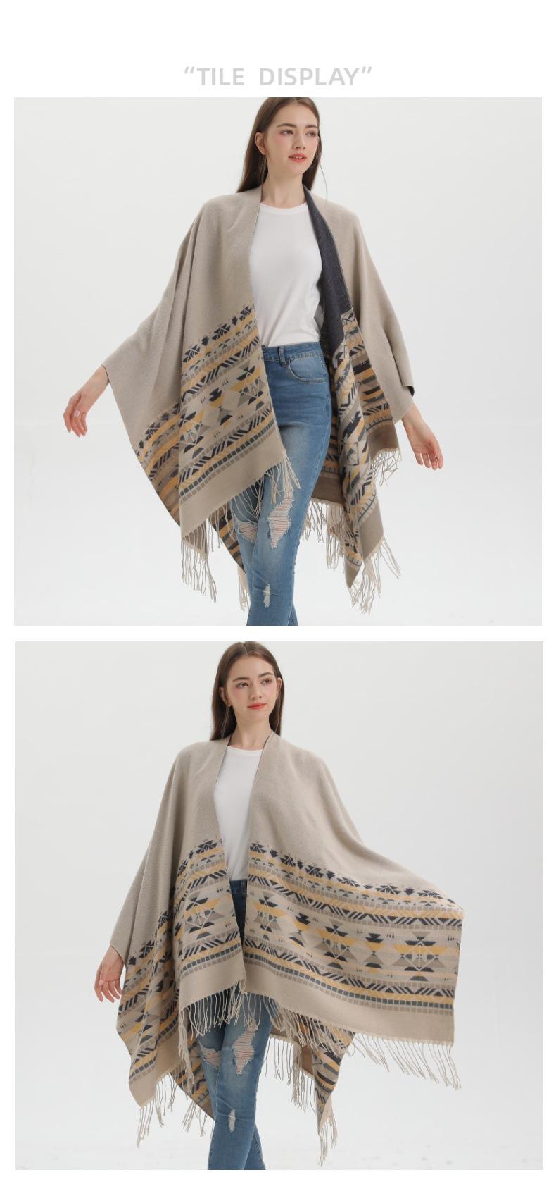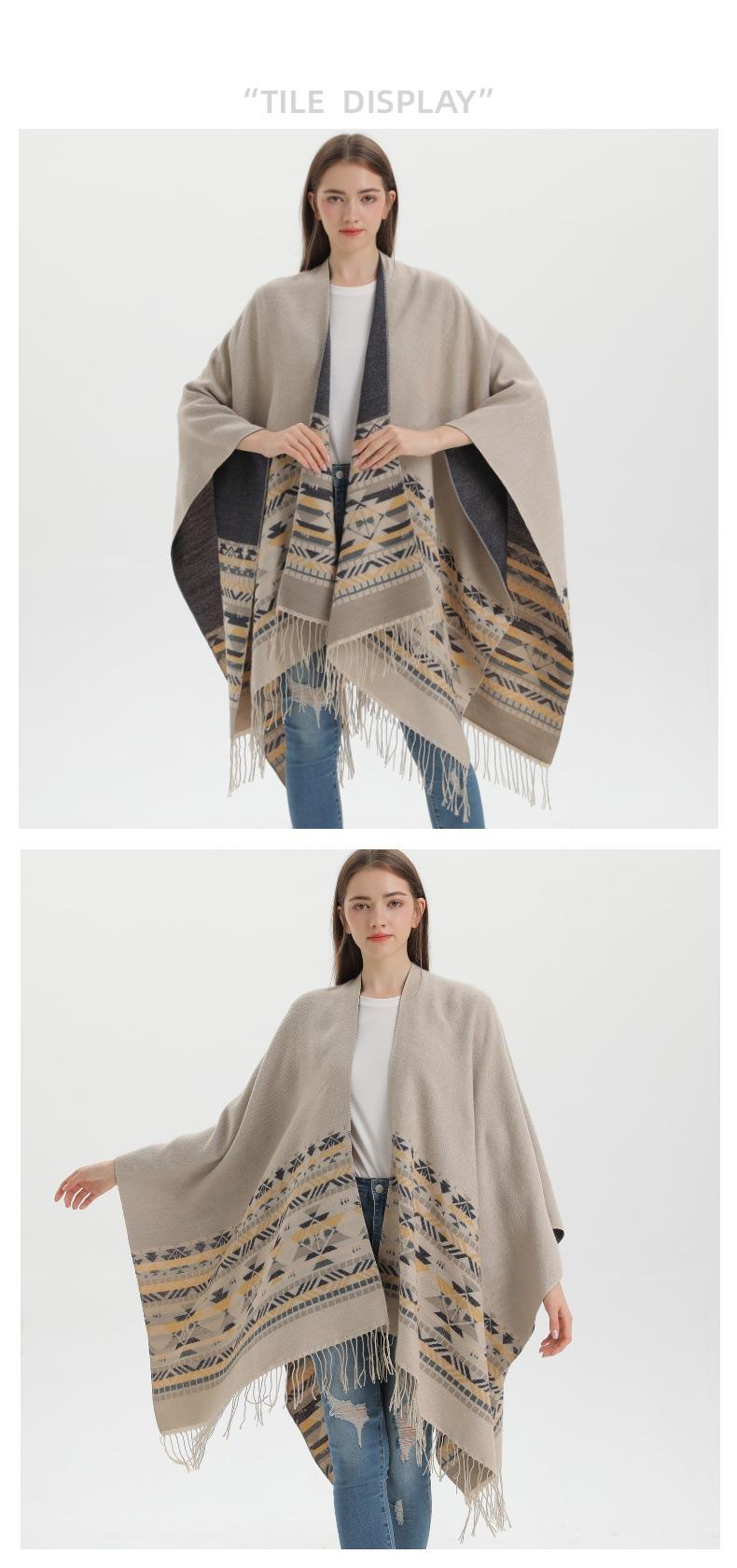 Otoño e invierno tejido dividido chal grande estilo étnico bohemio borla capa cálida venta al por mayor explosiones transfronterizas