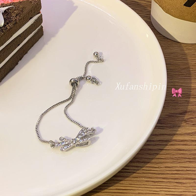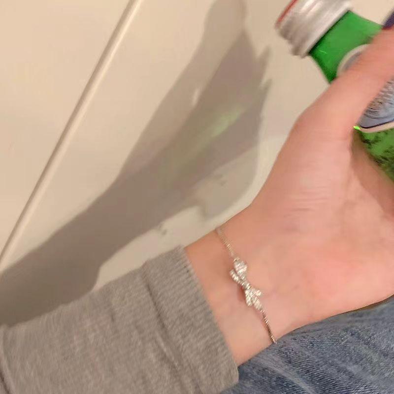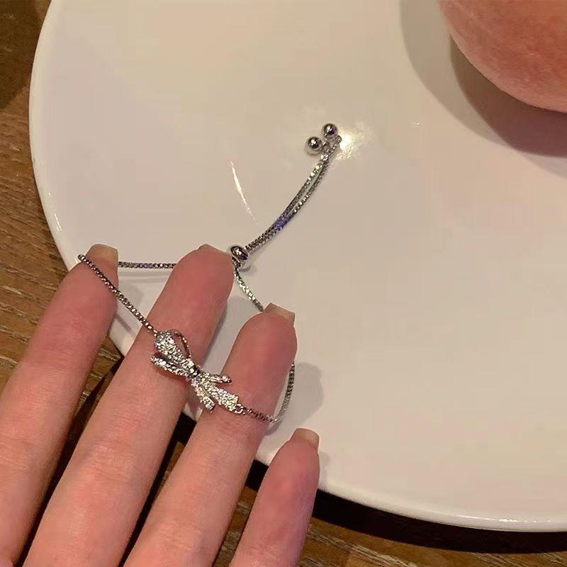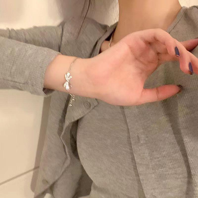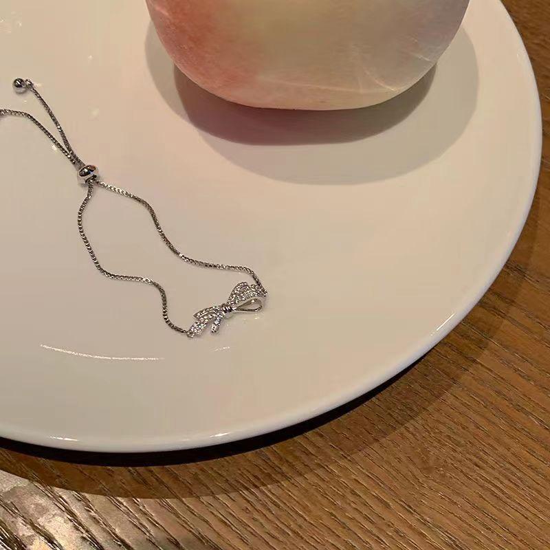 Pulsera de Lazo con Incrustaciones de Diamantes Fresca y Dulce para Mujer Pulsera Ajustable Extraíble Pulsera de Diseño Nicho para Niñas