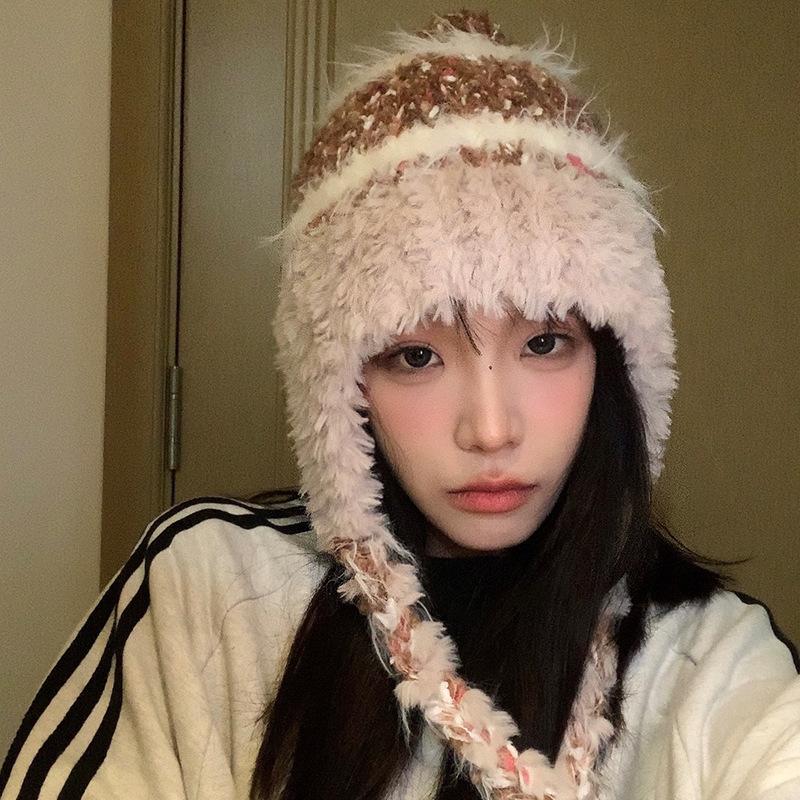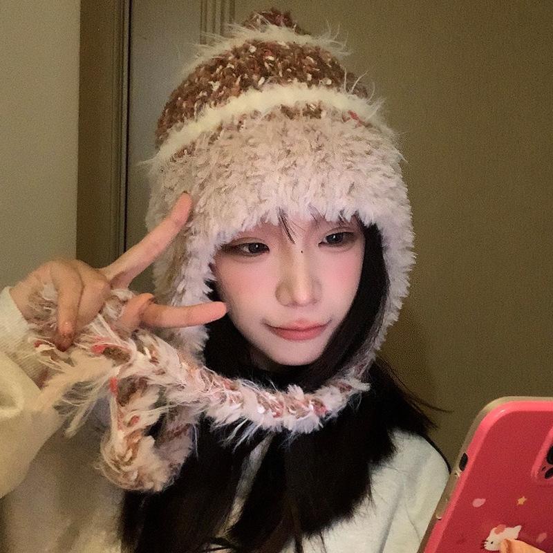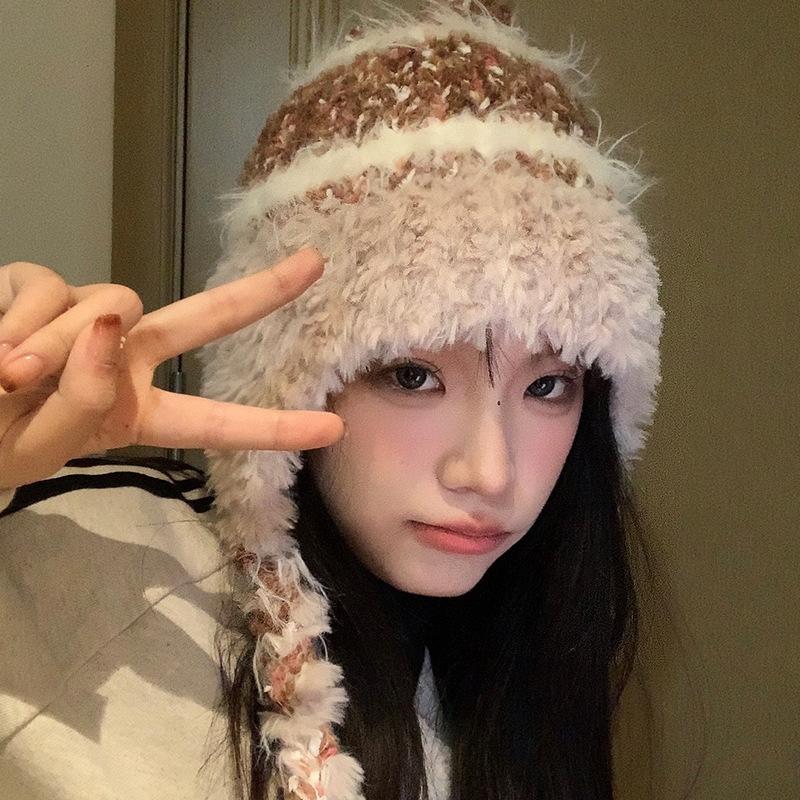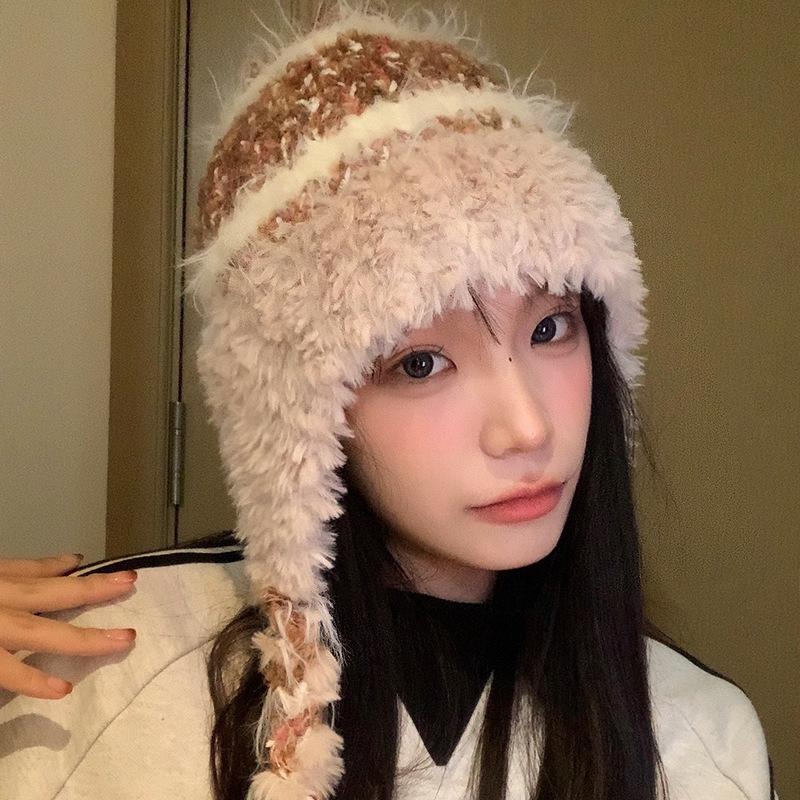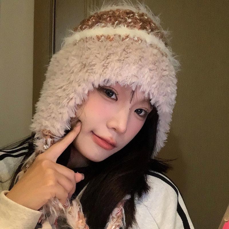Sombrero de punto cálido y transpirable de otoño e invierno, con felpa, protección para las orejas, versátil, combinación de colores personalizada, sombrero de lana nuevo a prueba de frío, protección para las orejas con punta cerrada