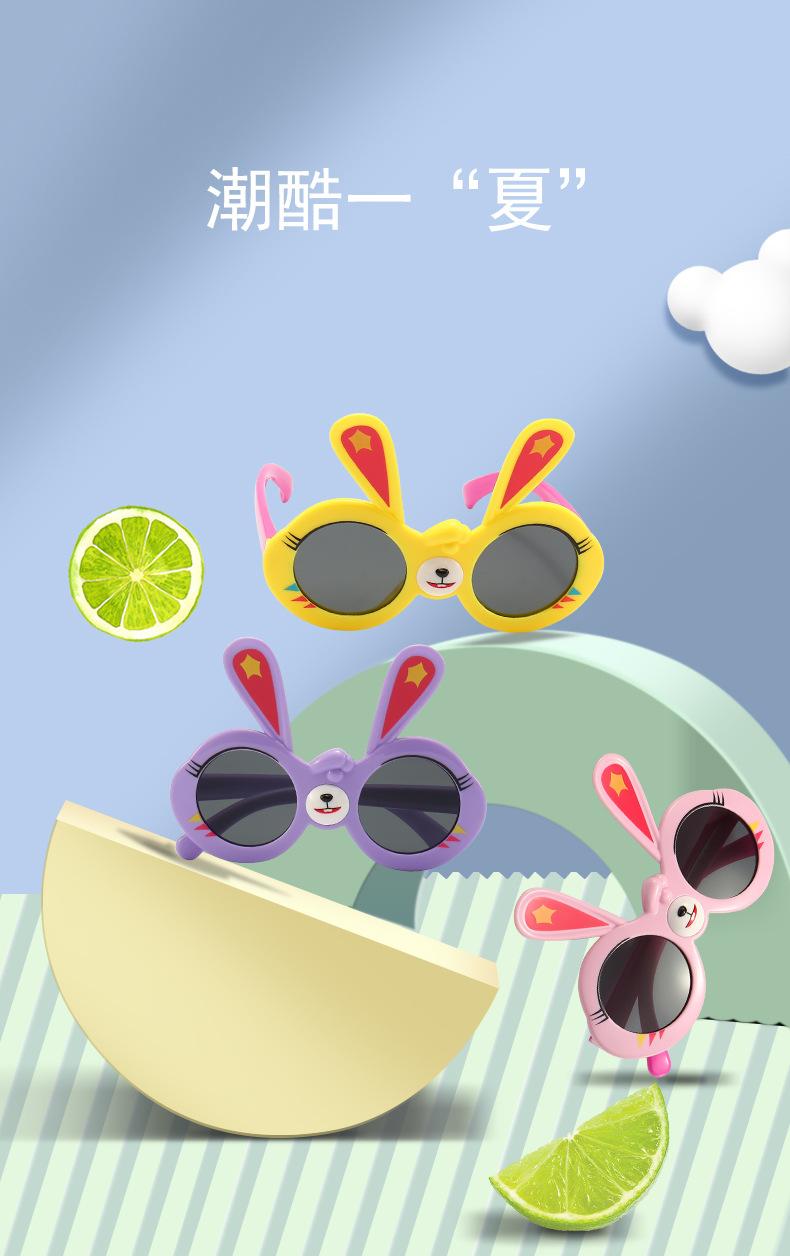 Nuevas Gafas de Sol para Niños Gafas de Sol Polarizadas con Forma de Conejo de Dibujos Animados Lindas para Estudiantes de Primaria Gafas de Sol 8-099