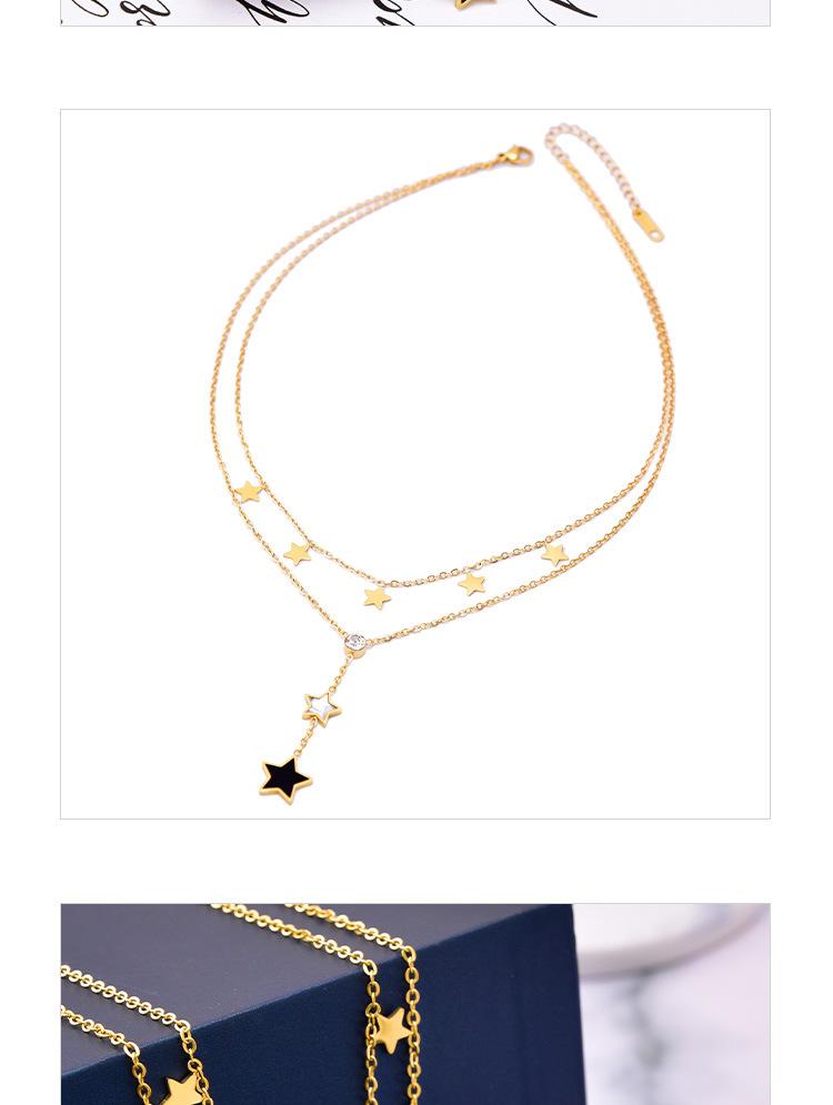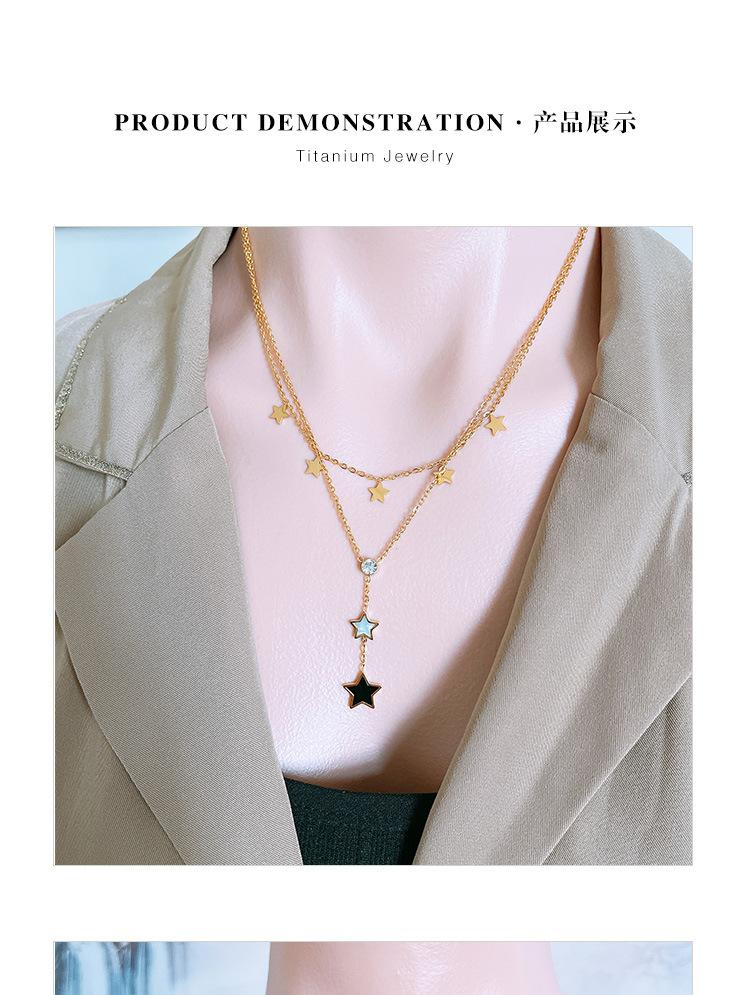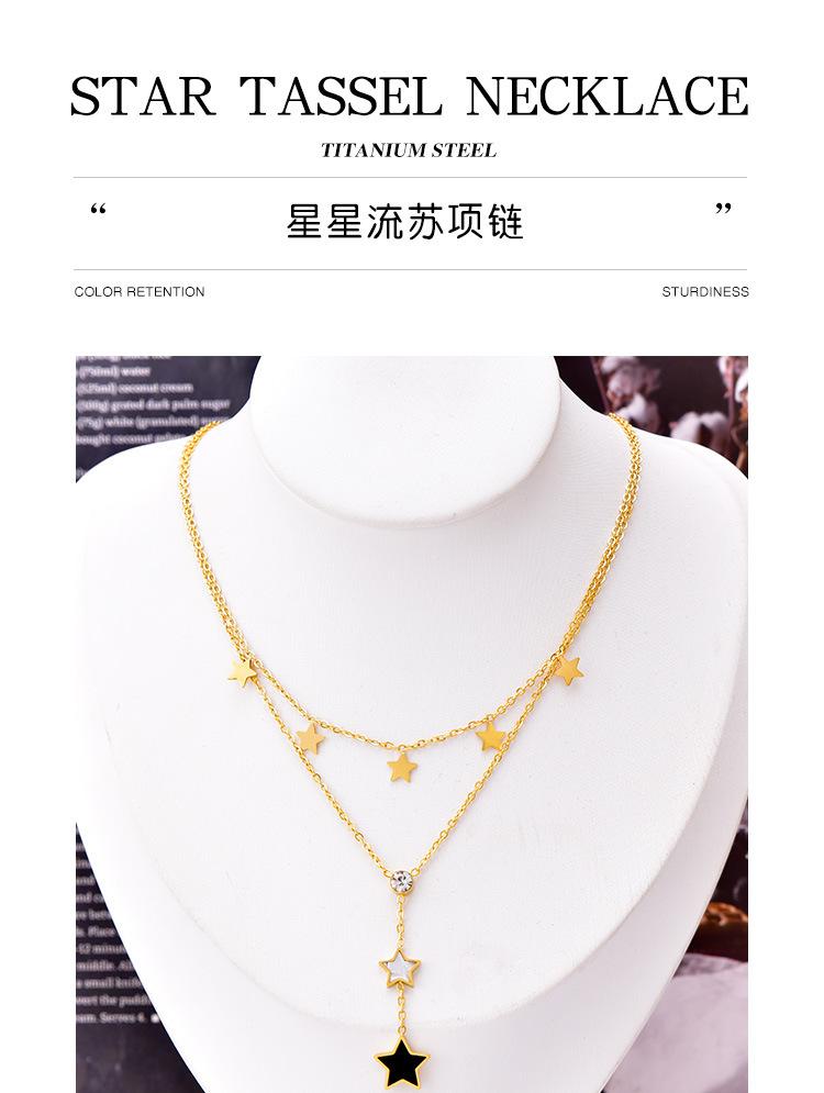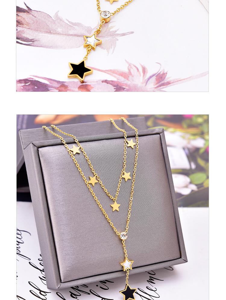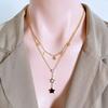Versión coreana de cadena de doble capa de gypsophila, colgante de borla de diamante de estrella de cinco puntas con concha blanca y negra, cadena de clavícula para niñas, lote de fábrica