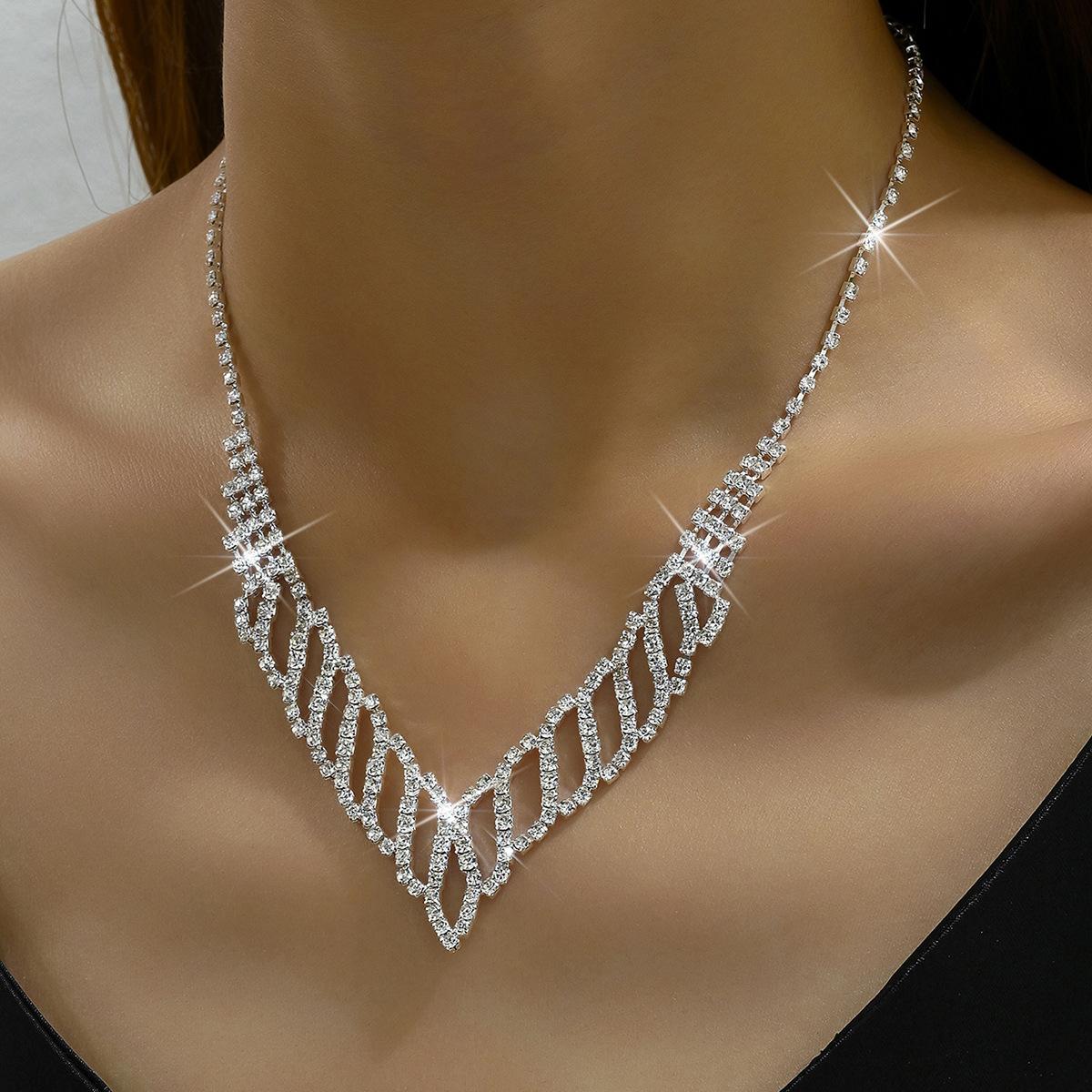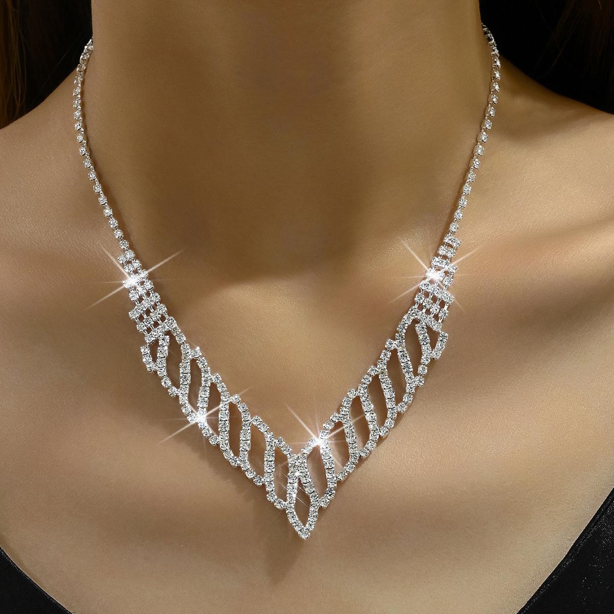 Venta al por mayor de joyas transfronterizas, joyas europeas y americanas, accesorios para celebraciones de bodas para mujeres, collar de diamantes de plata, pendientes, traje